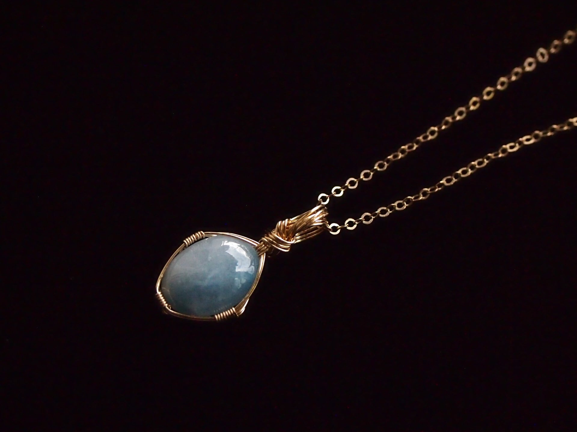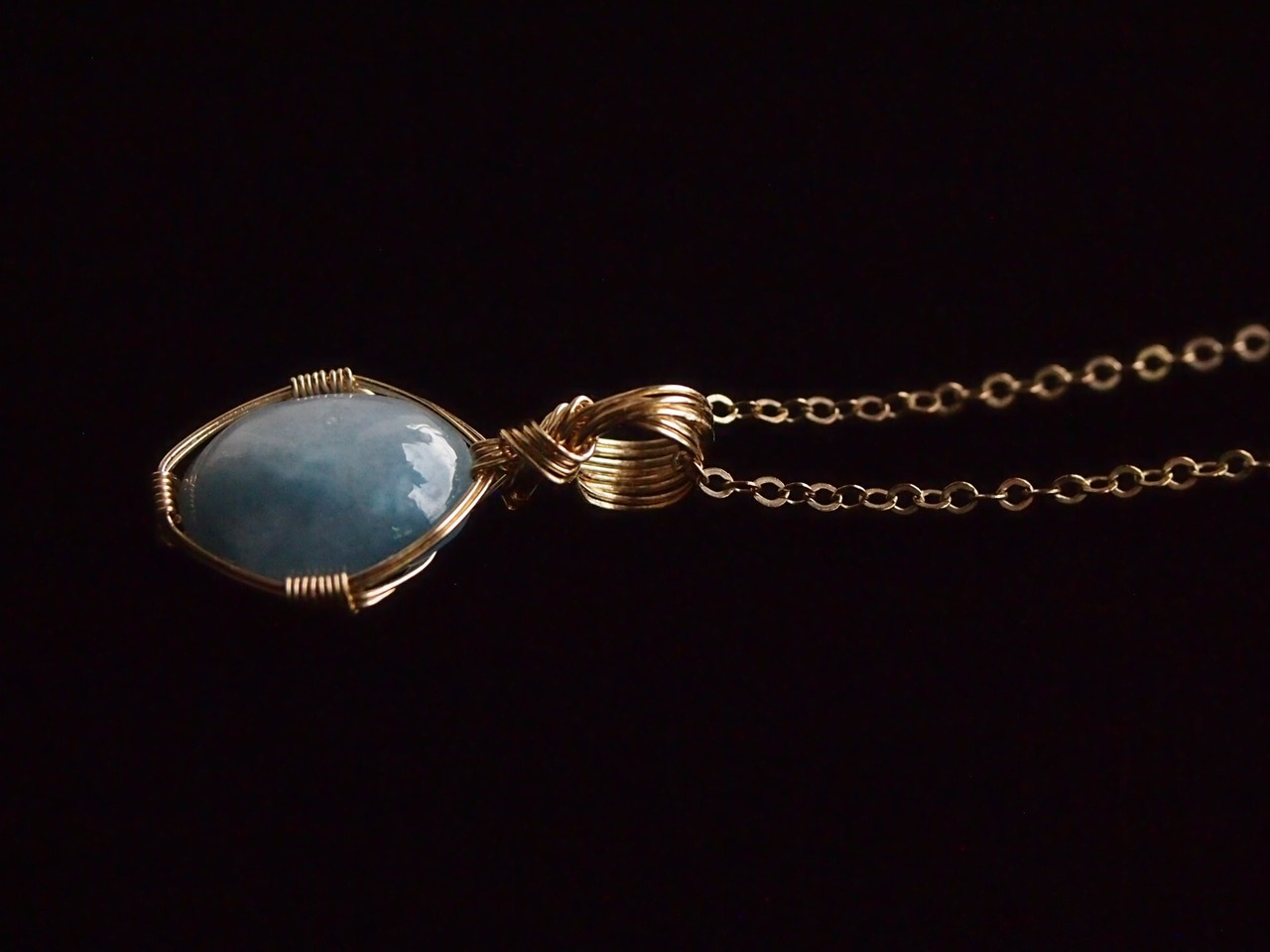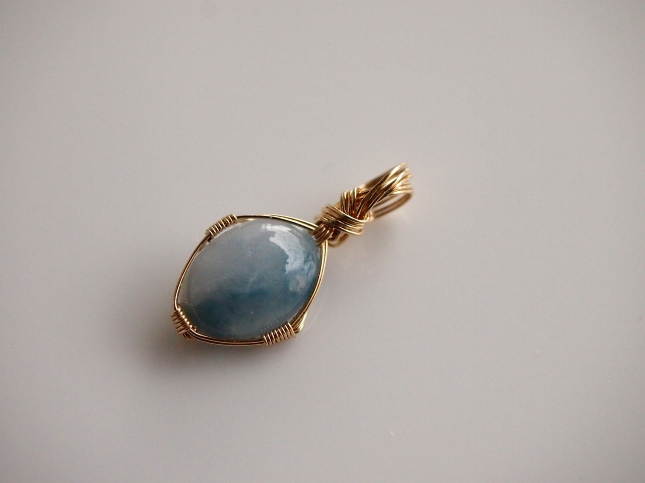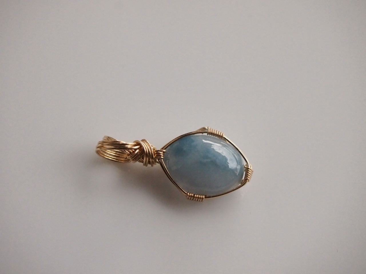 糸魚川産のうるうるの青翡翠を14kgfワイヤーで繊細に女神巻き®ペンダントトップに仕上げました♡