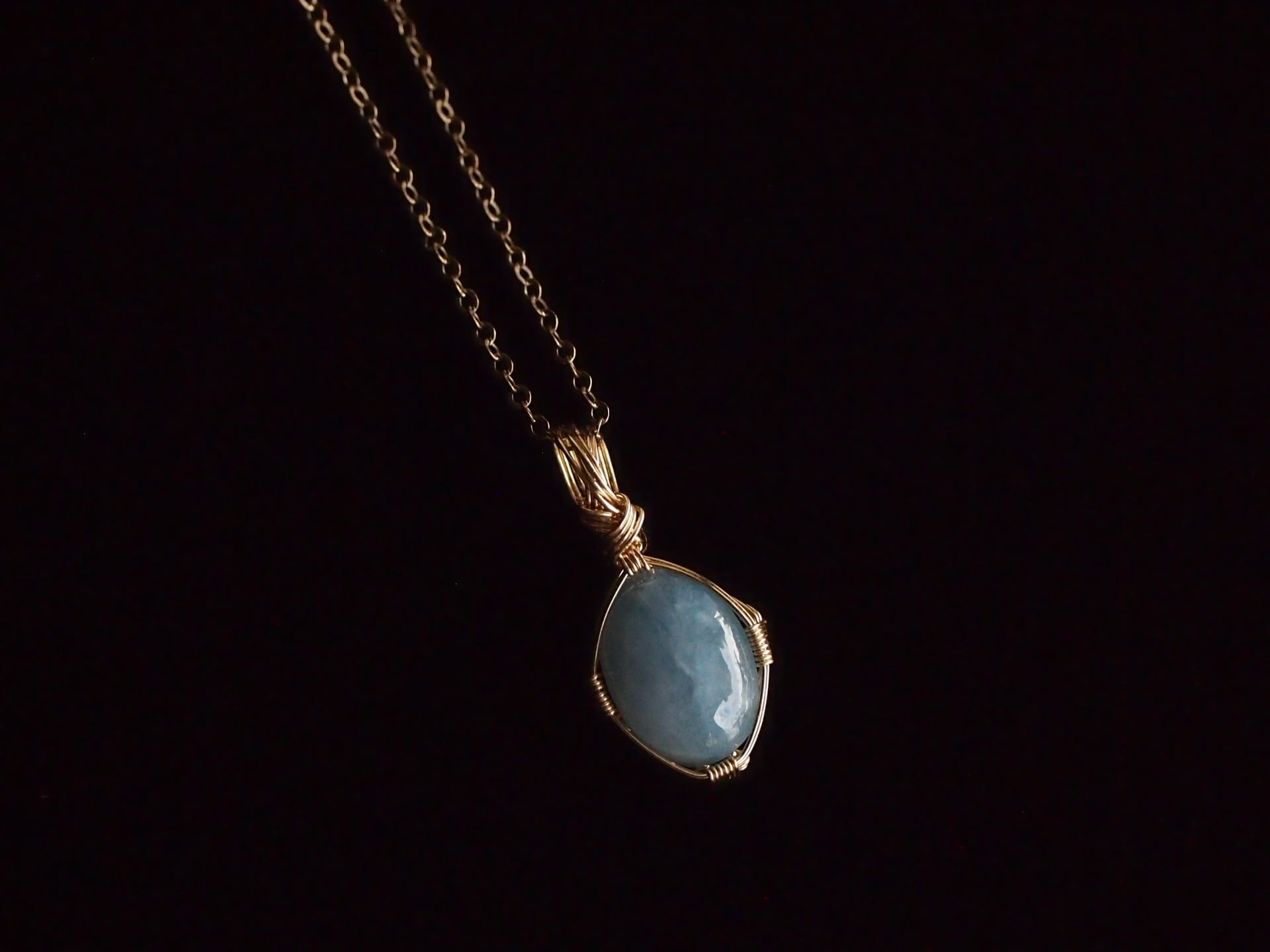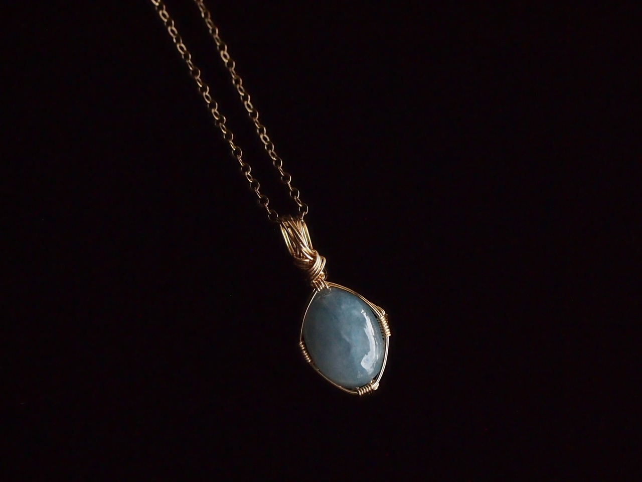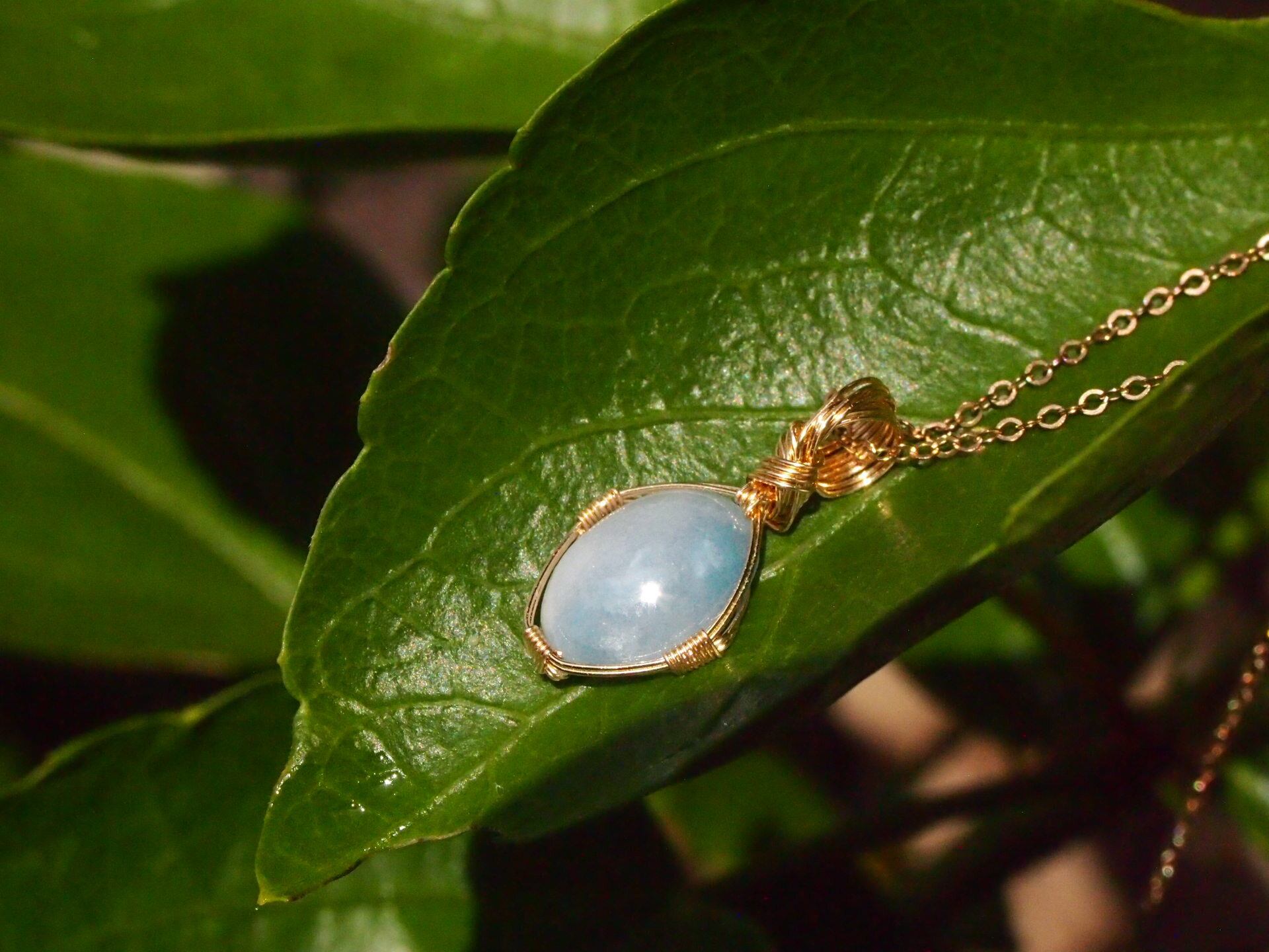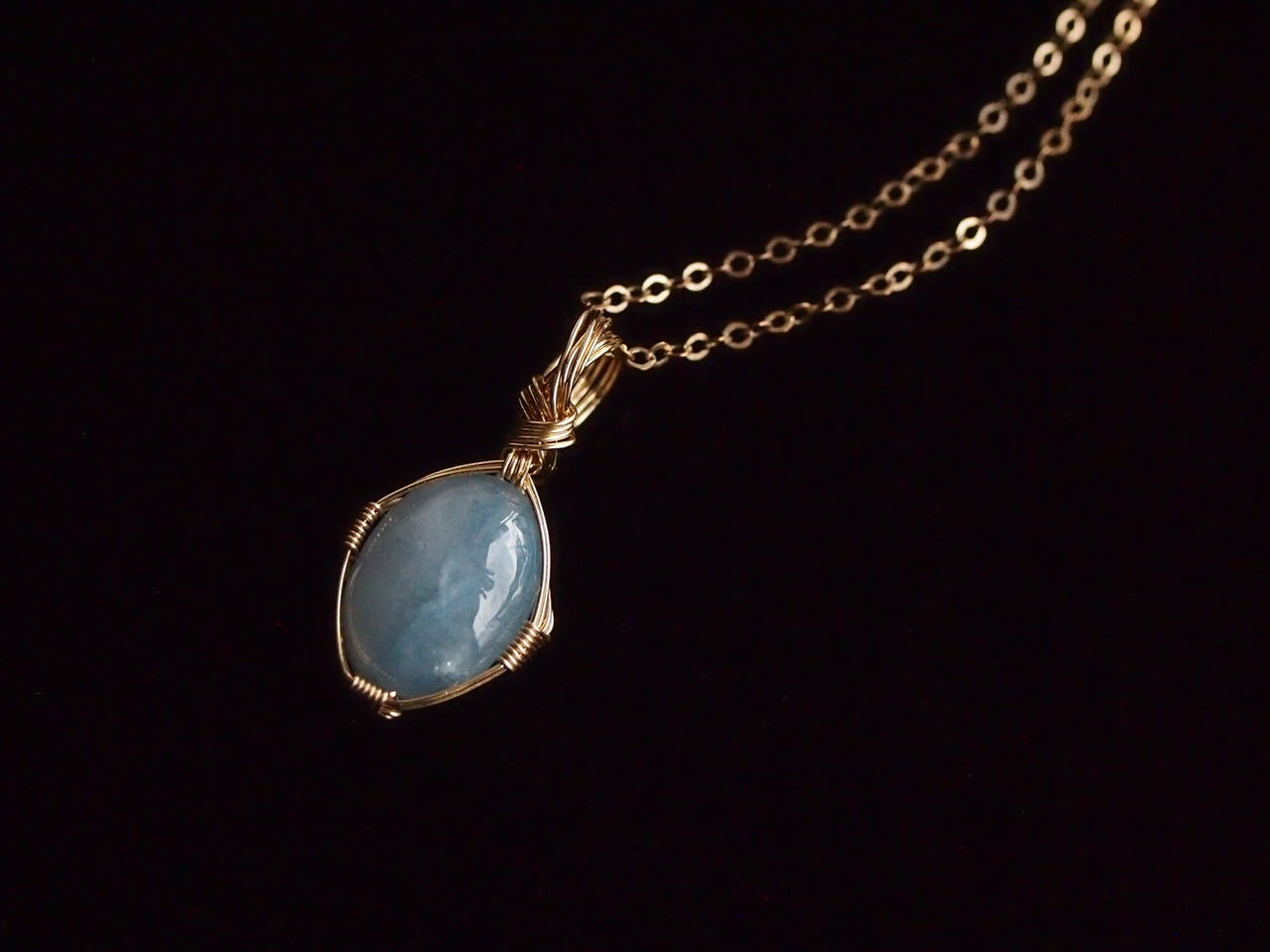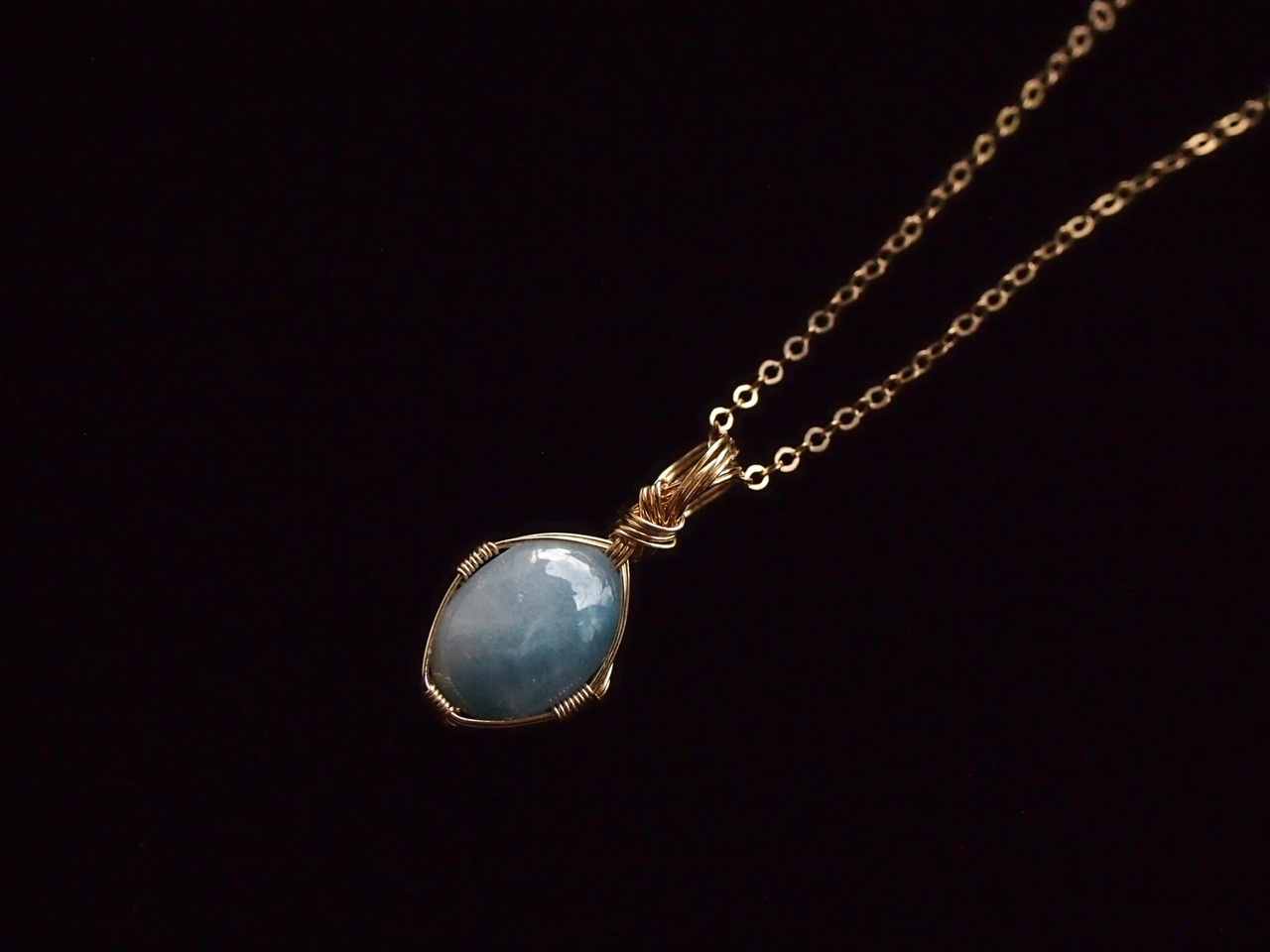 糸魚川産のうるうるの青翡翠を14kgfワイヤーで繊細に女神巻き®ペンダントトップに仕上げました♡