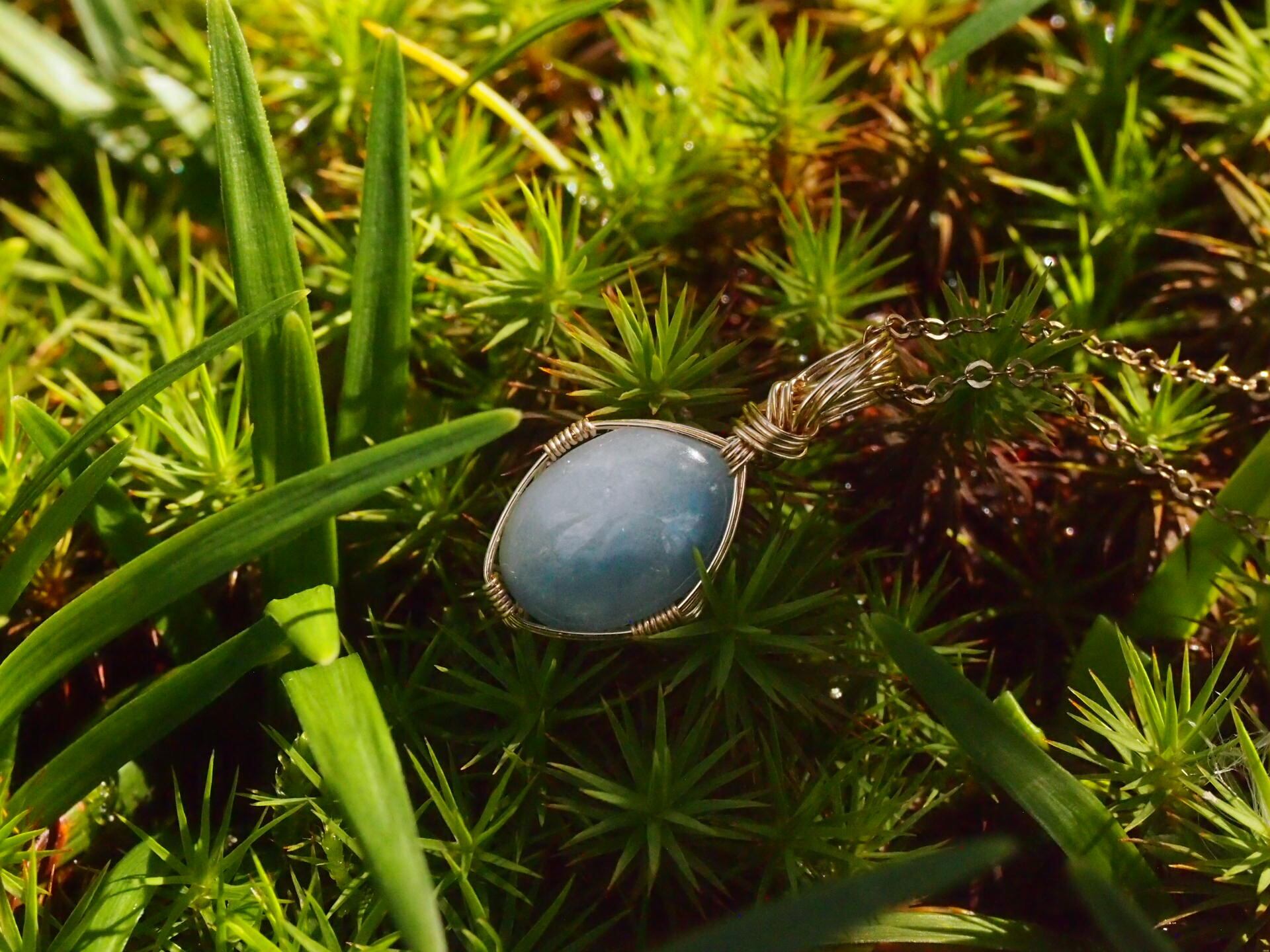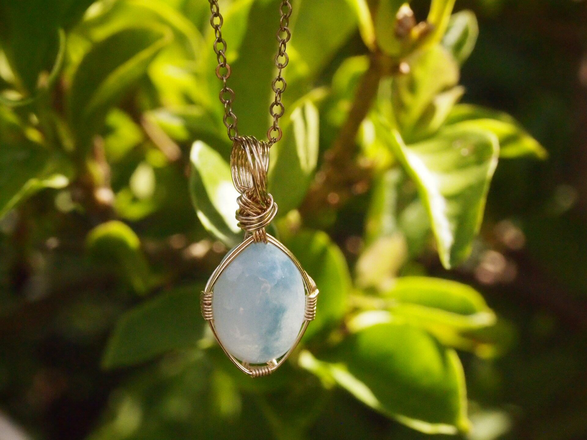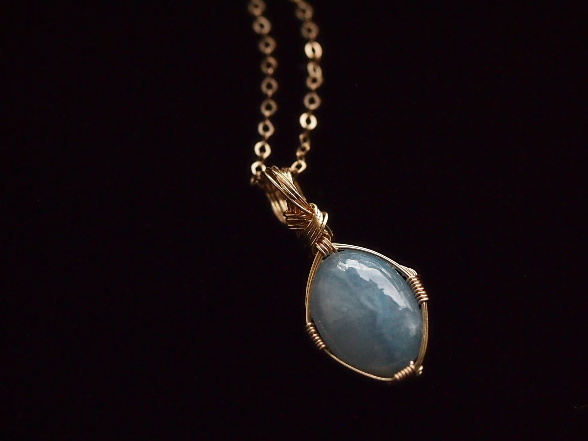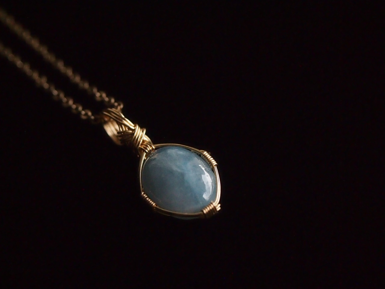 糸魚川産のうるうるの青翡翠を14kgfワイヤーで繊細に女神巻き®ペンダントトップに仕上げました♡