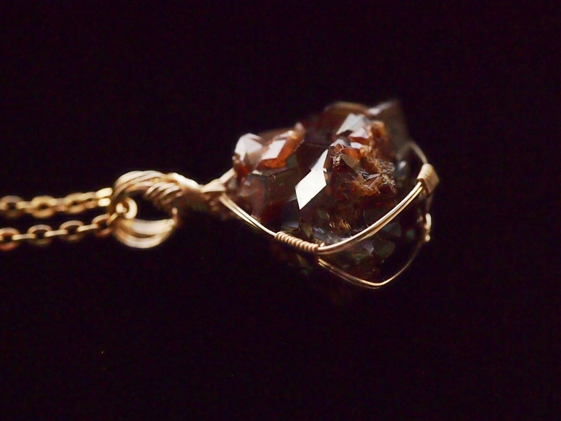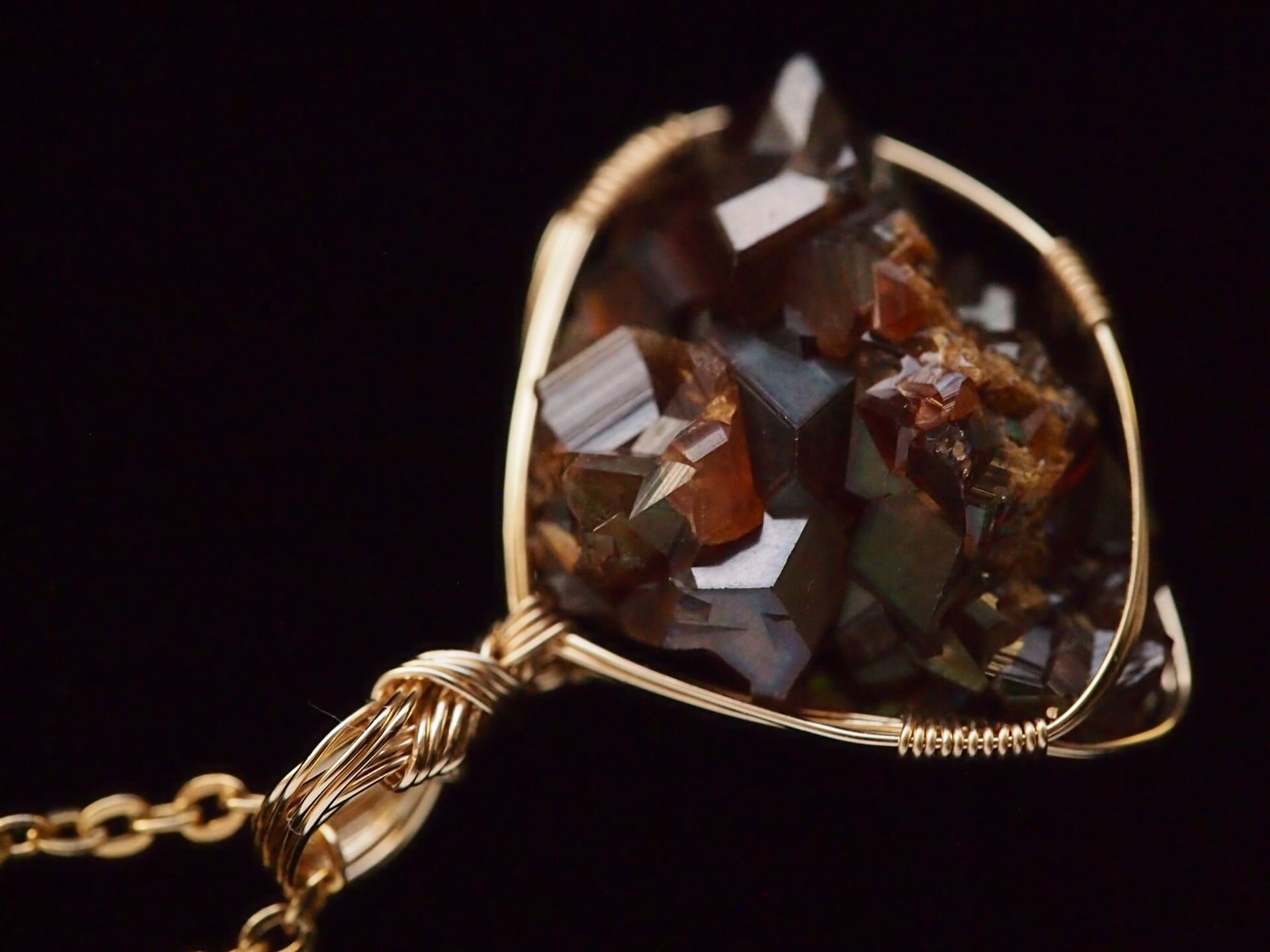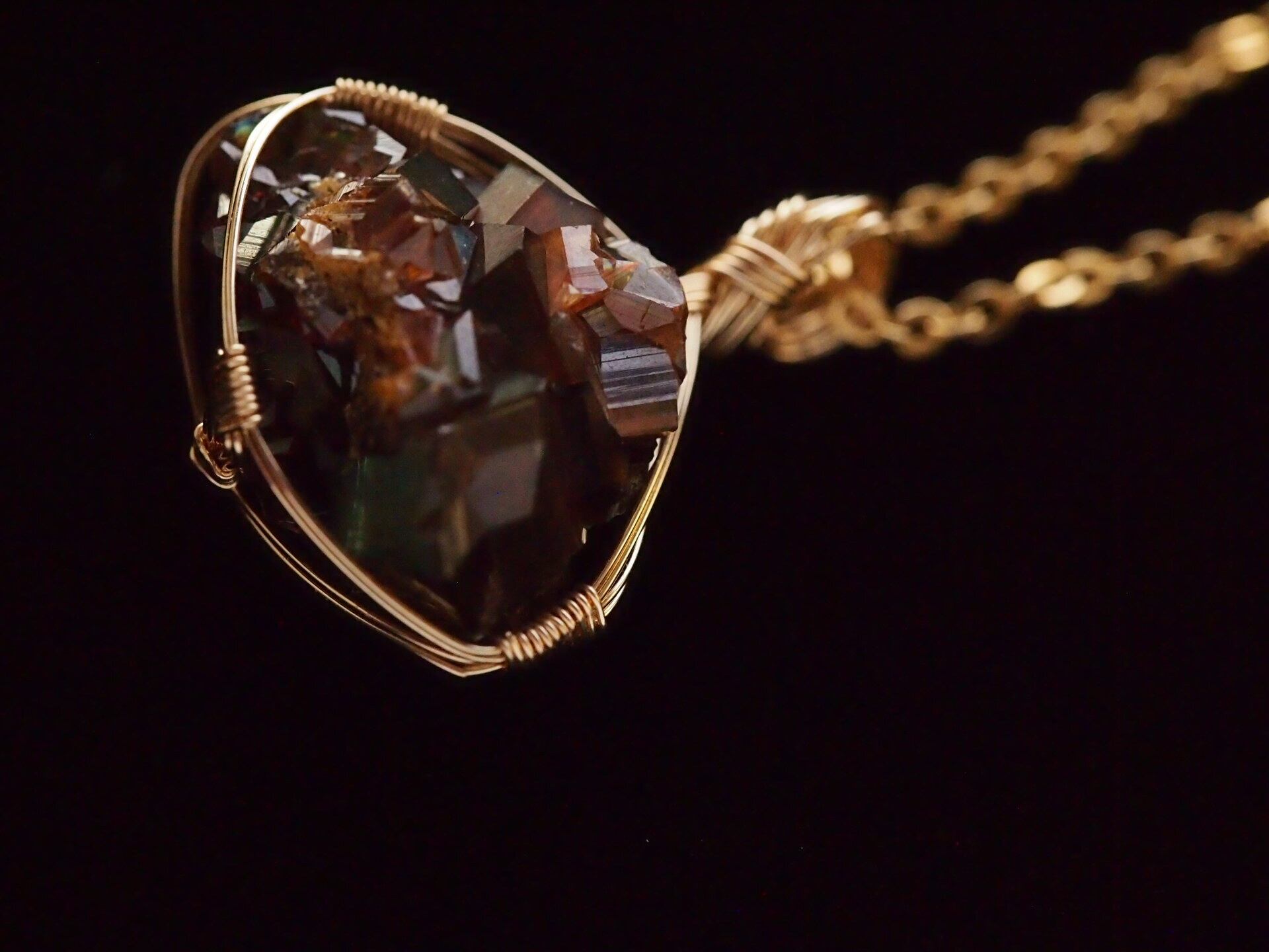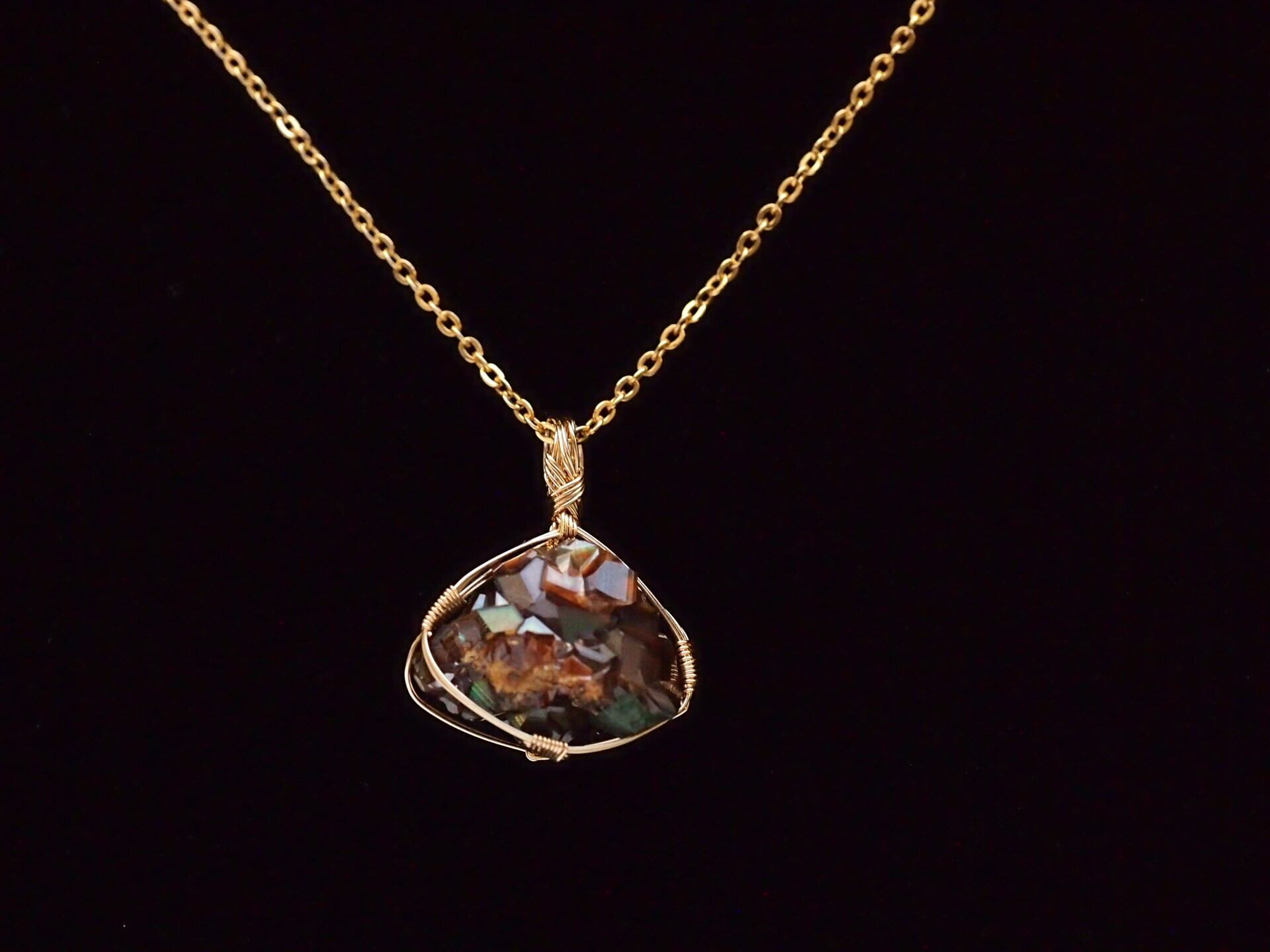 小さなレインボーガーネットのクラスターを14kgfワイヤーで繊細に女神巻き®ペンダントトップに仕上げました♡