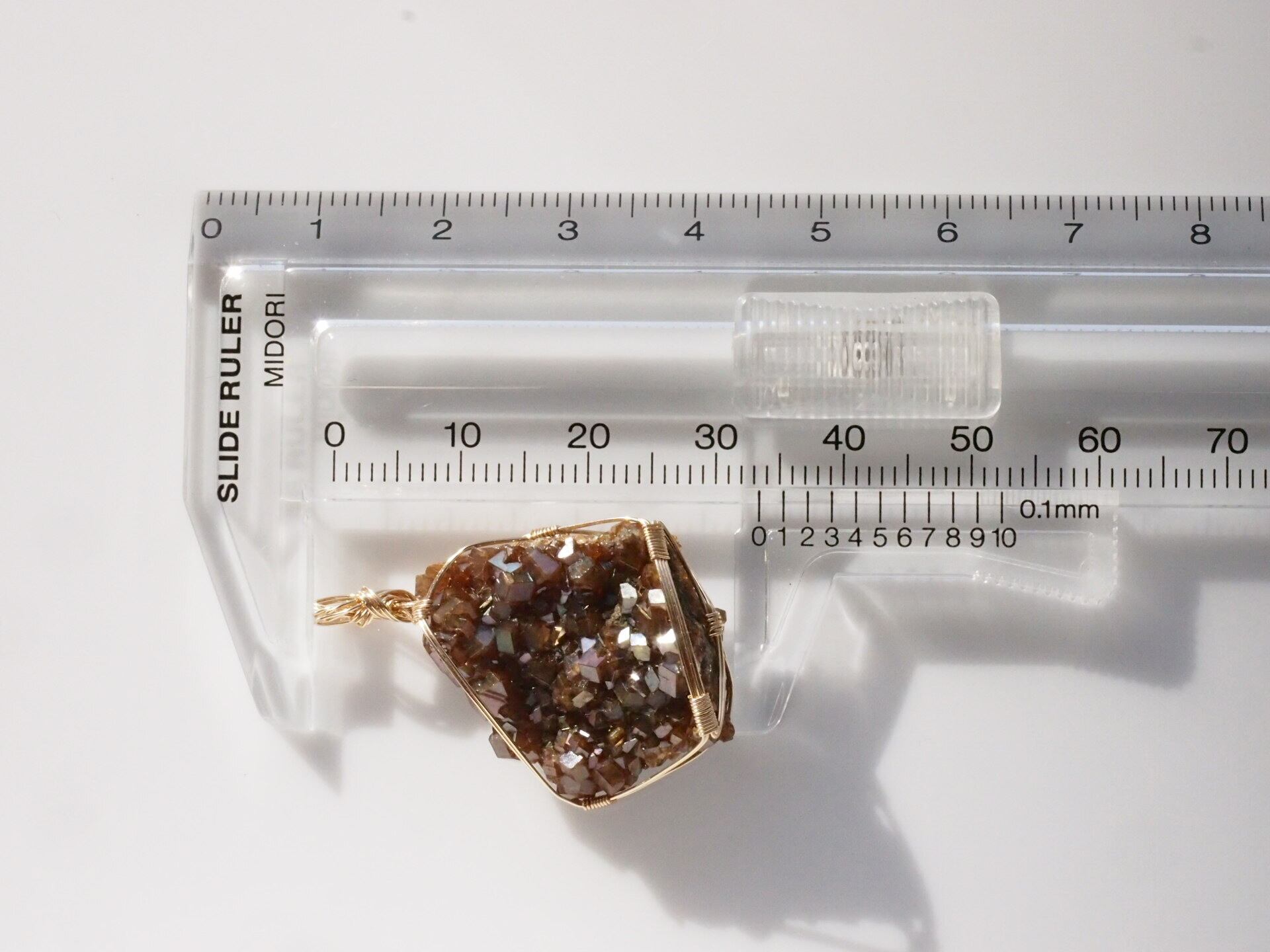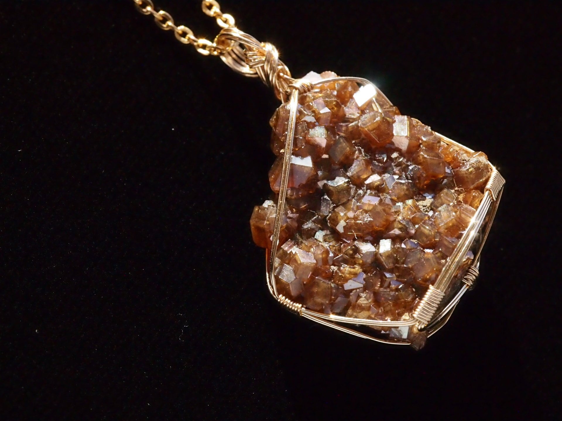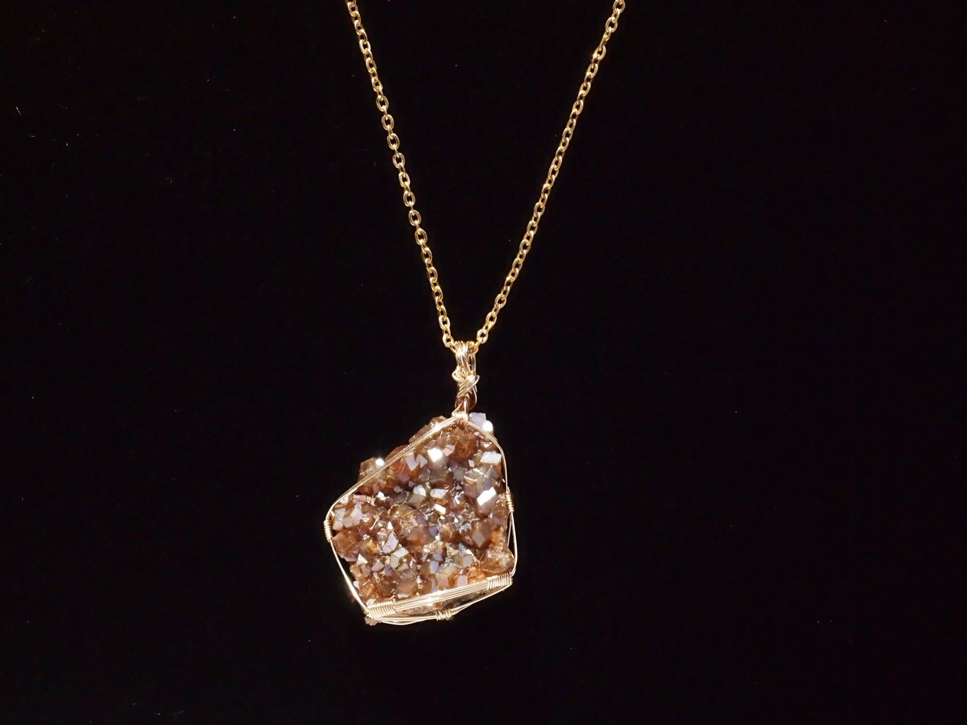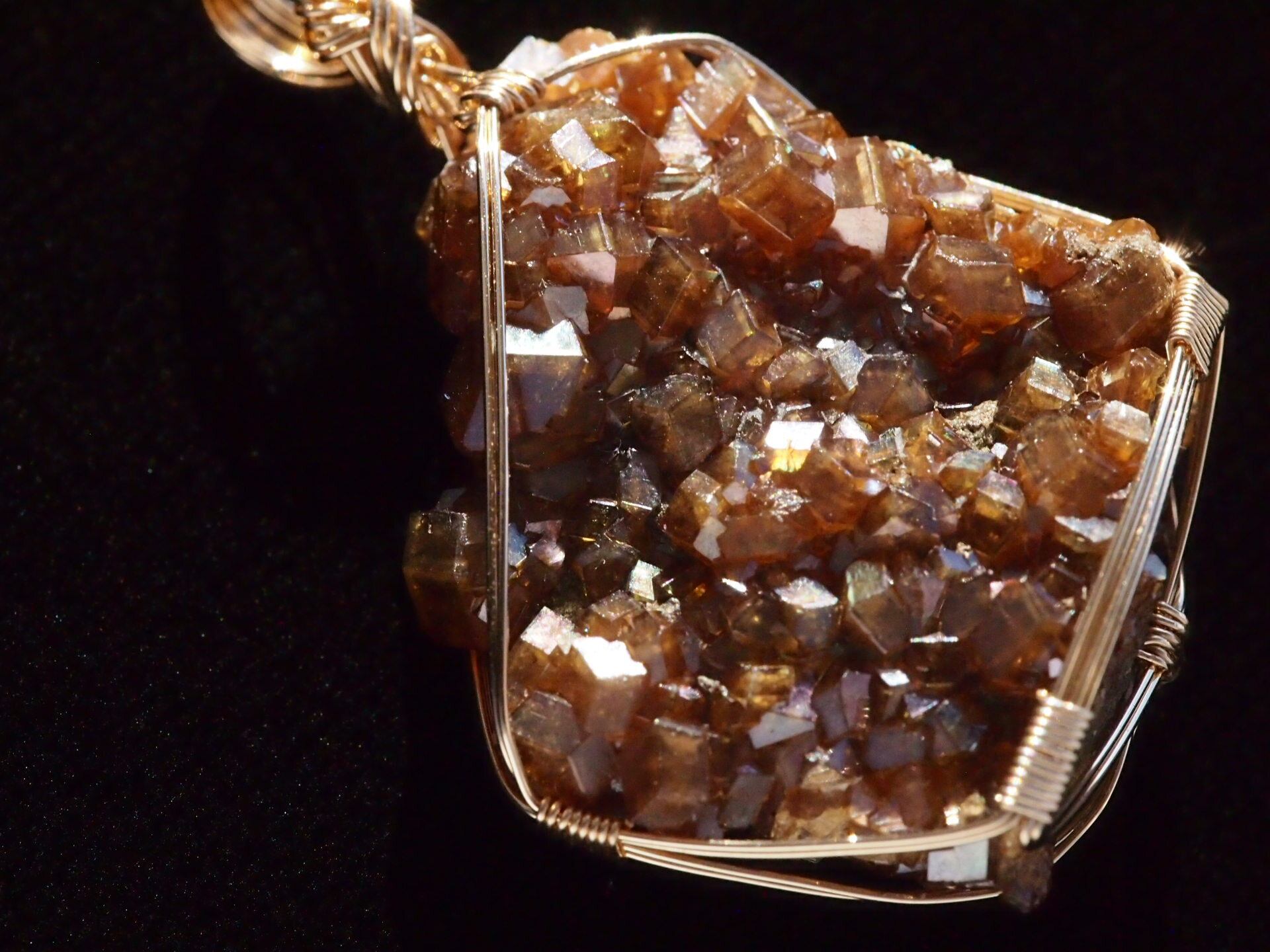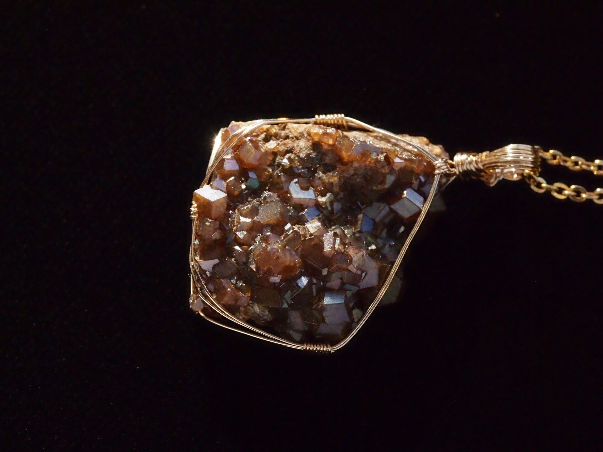 小さな結晶が集まった大変美しい奈良県産のレインボーガーネットのクラスターを使って制作しました。