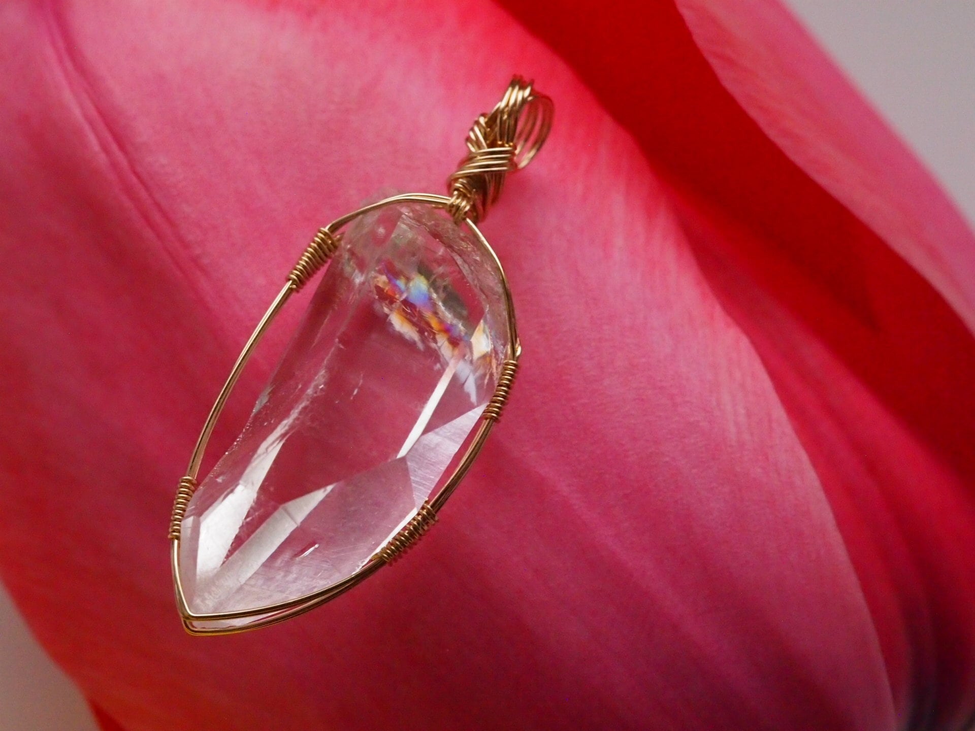 山梨県乙女鉱山の美しい国産クォーツを14kgfワイヤーで繊細に女神巻き®ペンダントトップに仕上げました♡