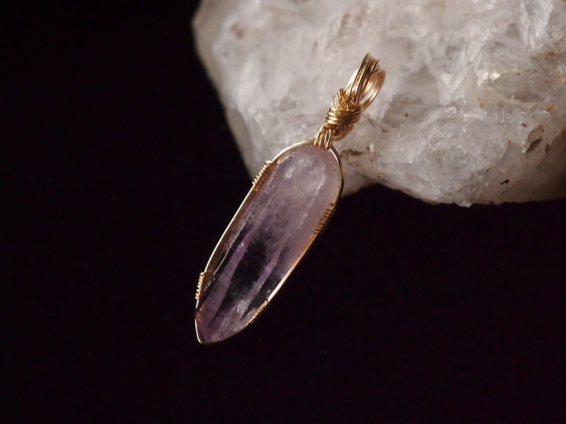 雨塚山の美しい国産アメシストを14kgfワイヤーで繊細に女神巻き®ペンダントトップに仕上げました♡