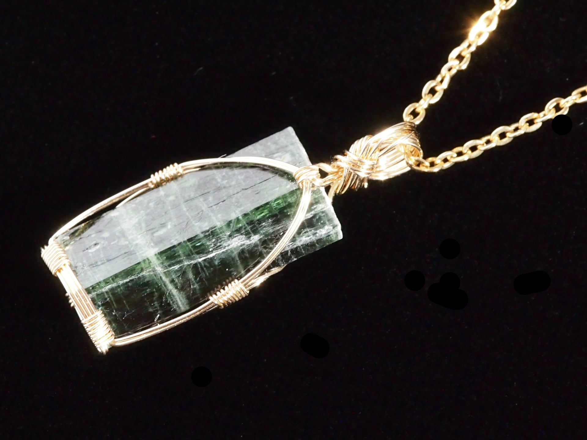 愛媛県産の神秘的な緑閃石を14kgfワイヤーで繊細に女神巻き®ペンダントトップに仕上げました♡