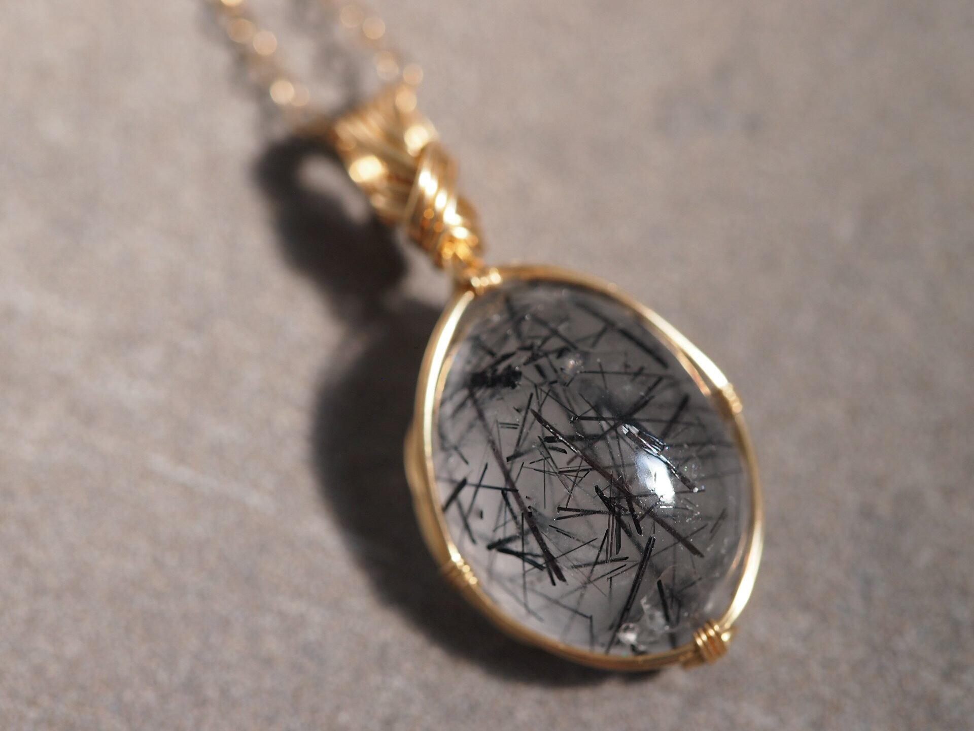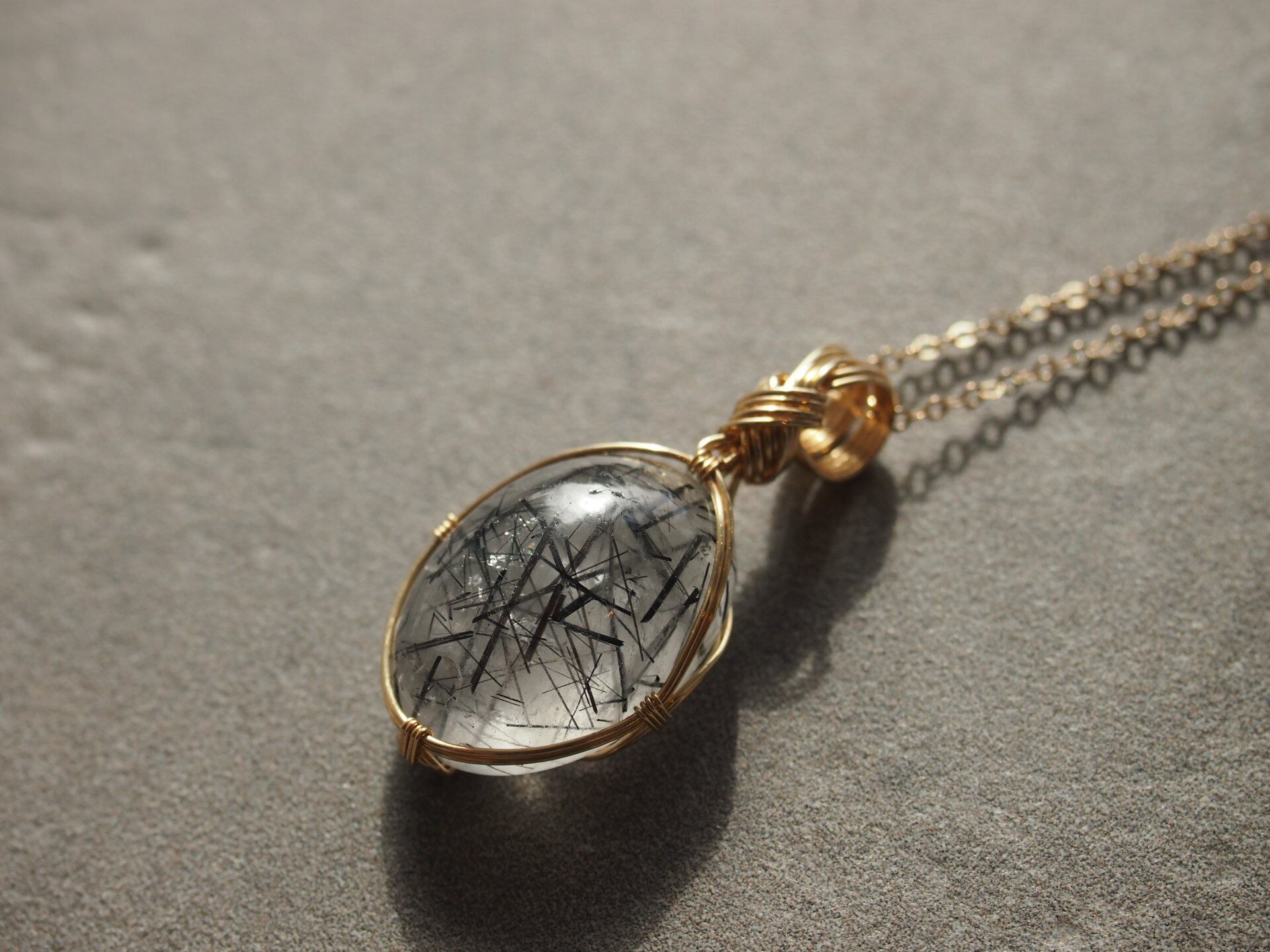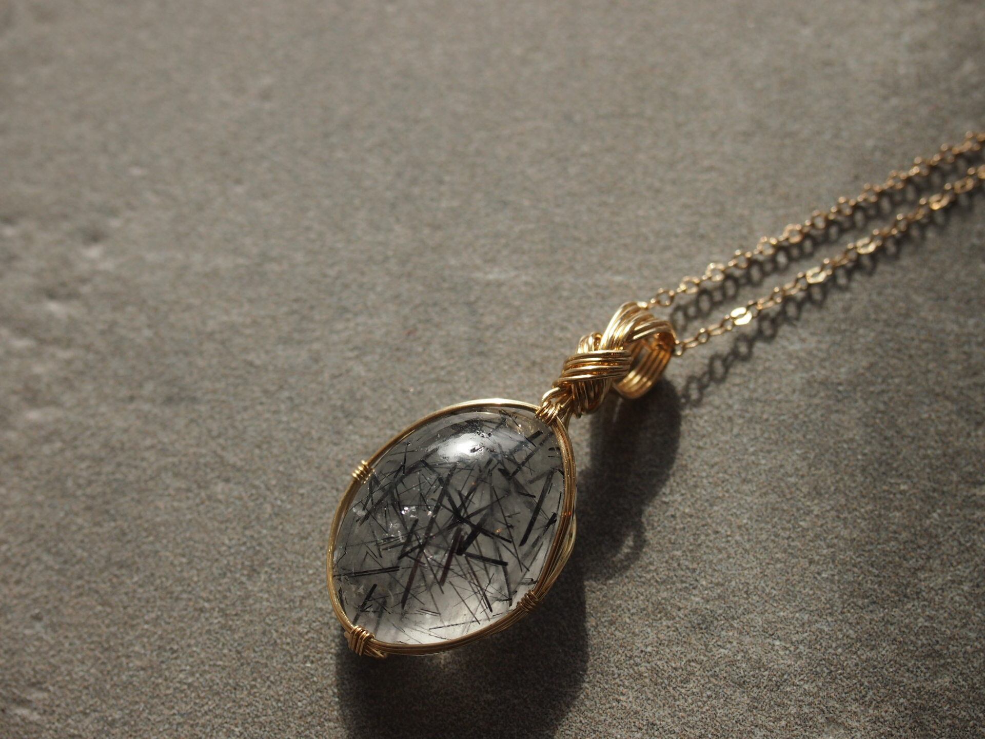 トルマリンインクォーツを14kgfワイヤーで繊細にペンダントトップに仕上げました♡