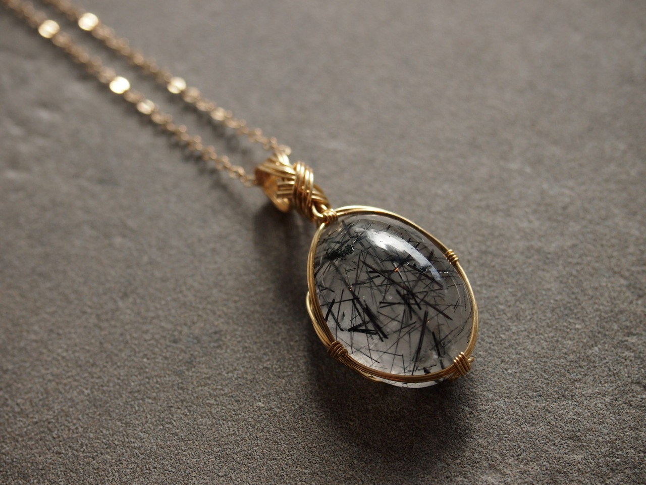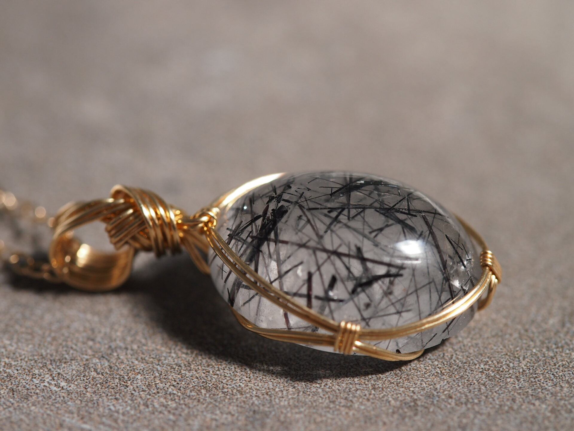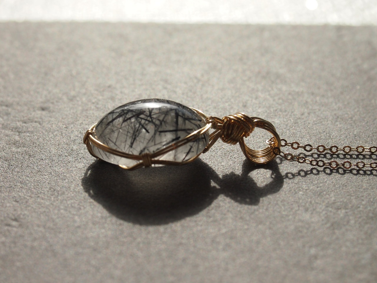 トルマリンインクォーツを14kgfワイヤーで繊細にペンダントトップに仕上げました♡