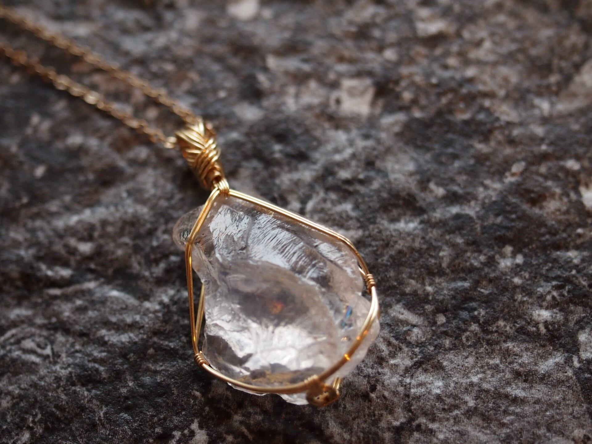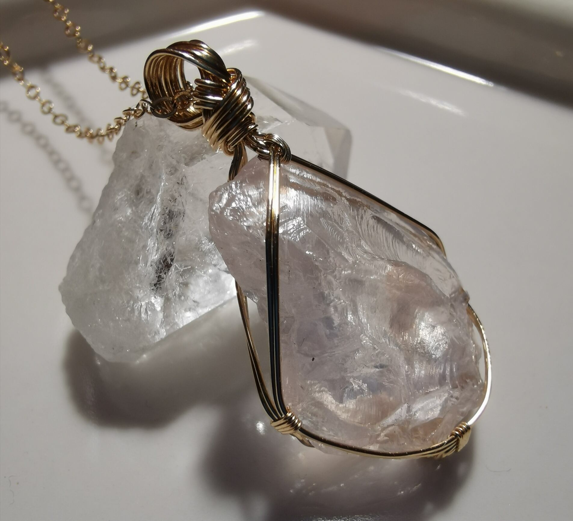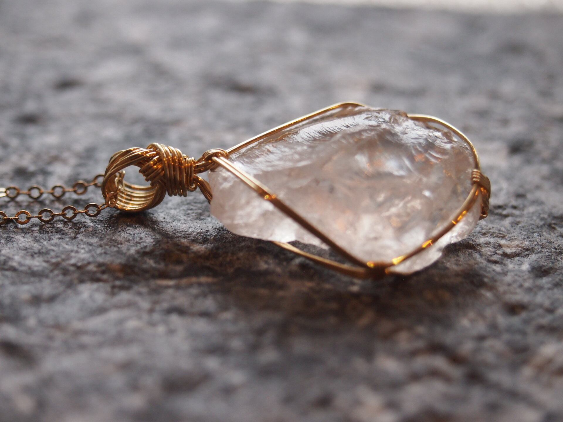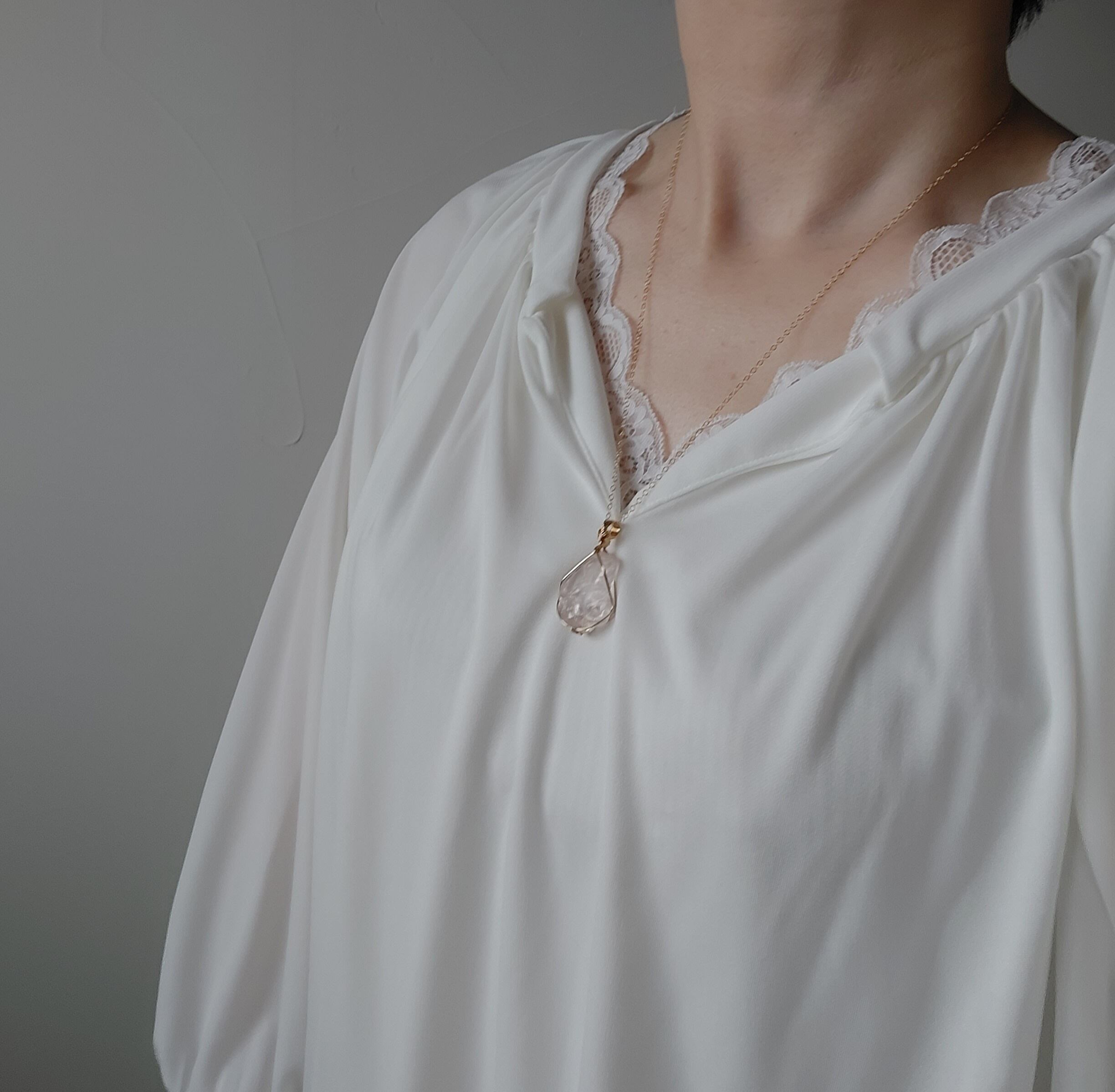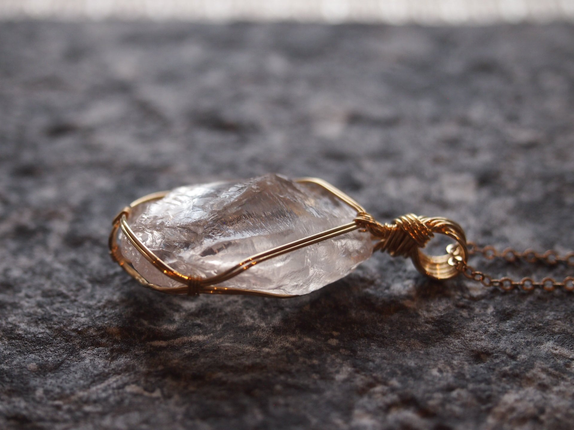淡いローズクォーツの原石を14kgfワイヤーで繊細に女神巻きペンダントトップに仕上げました♡