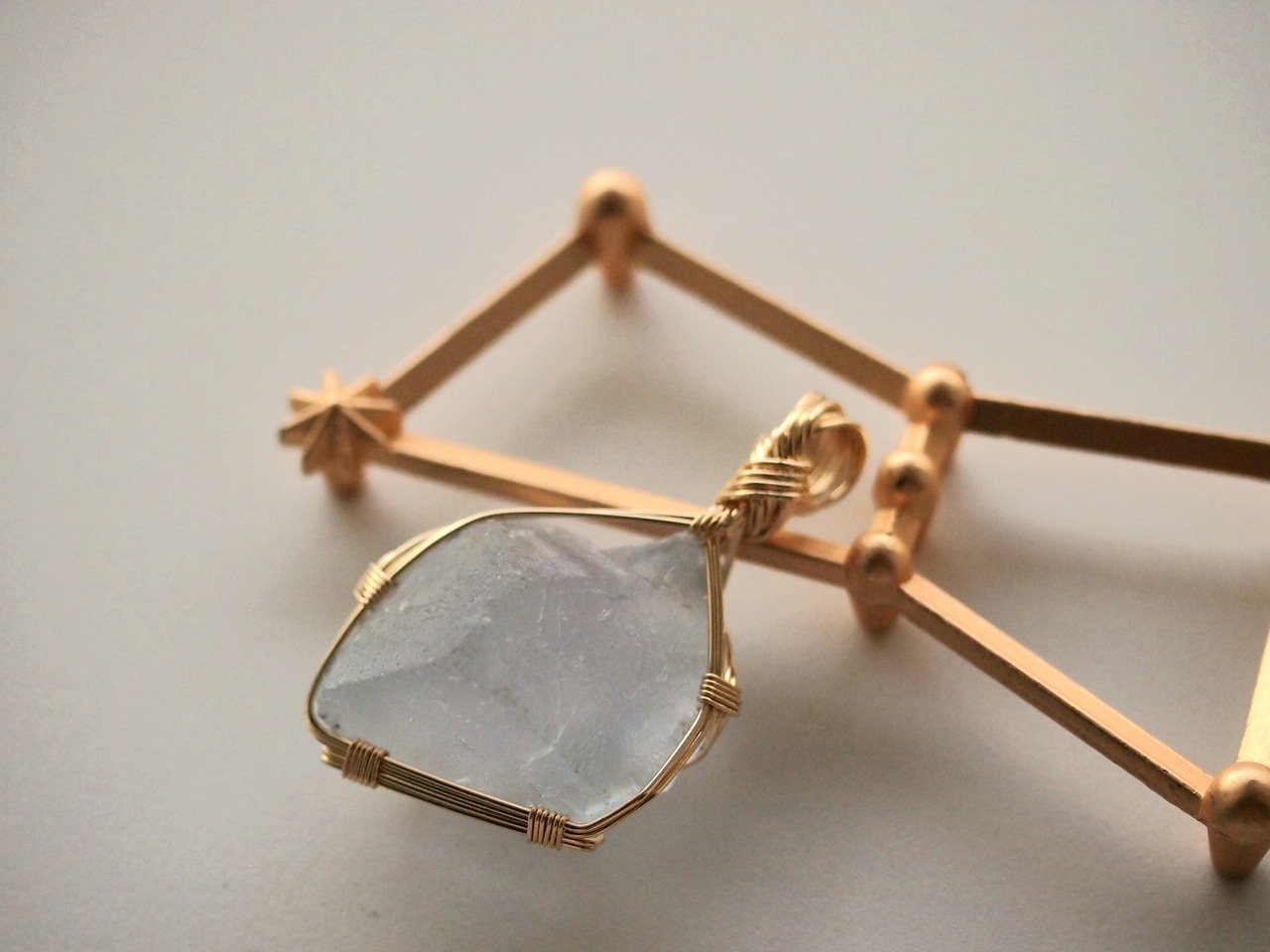 ・なるべくストーンを美しく見せるため、繊細な技術を使ってワイヤーで巻いております。ワイヤー部分に無理な力をかけたり、引っ張ったりするとデザインが損なわれてしまう可能性がございます。