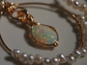 オーストラリア産のカボションカットのホワイトオパールと、小粒の淡水パールを使用しました。