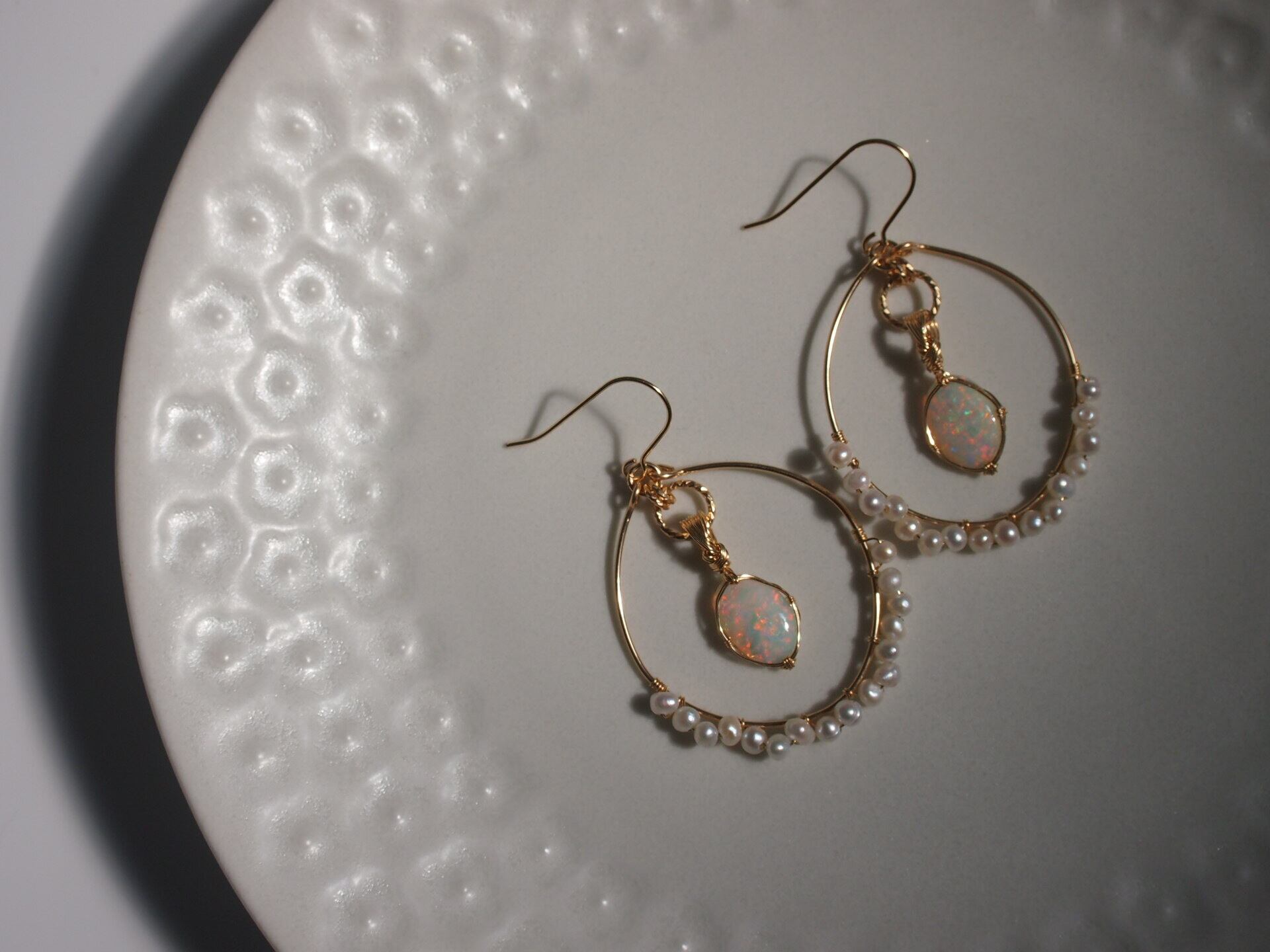 動きで耳元で揺れて、オパールの遊色とパールの艶感を楽しんでいただけると思います♡