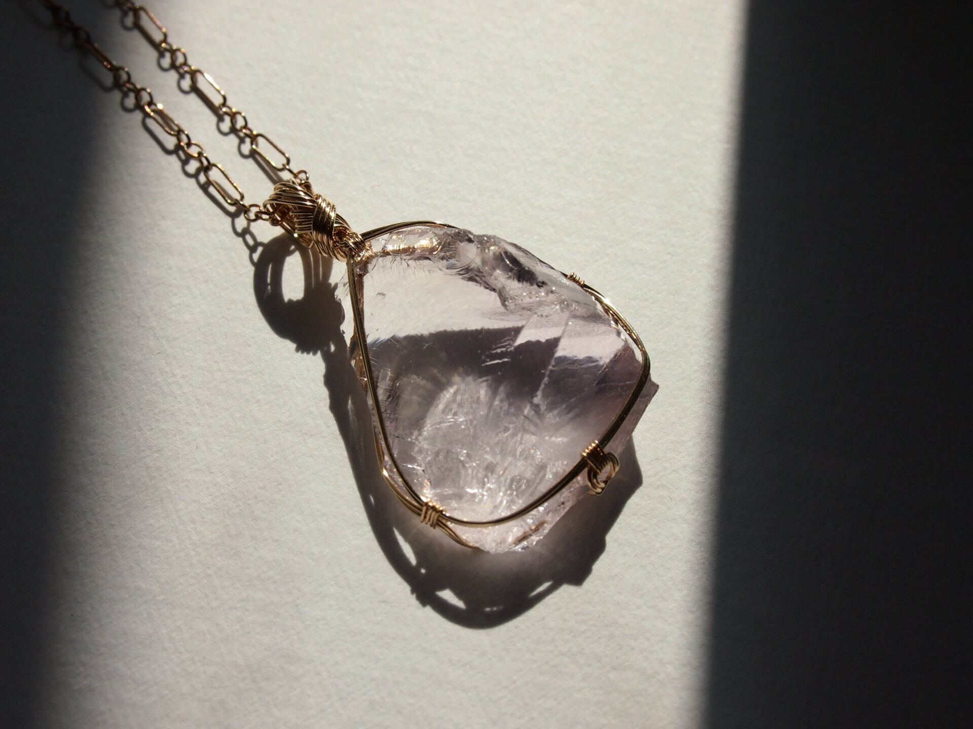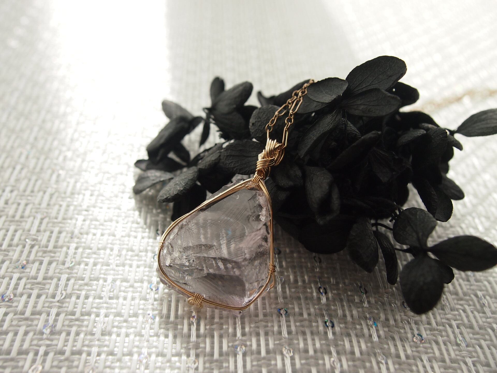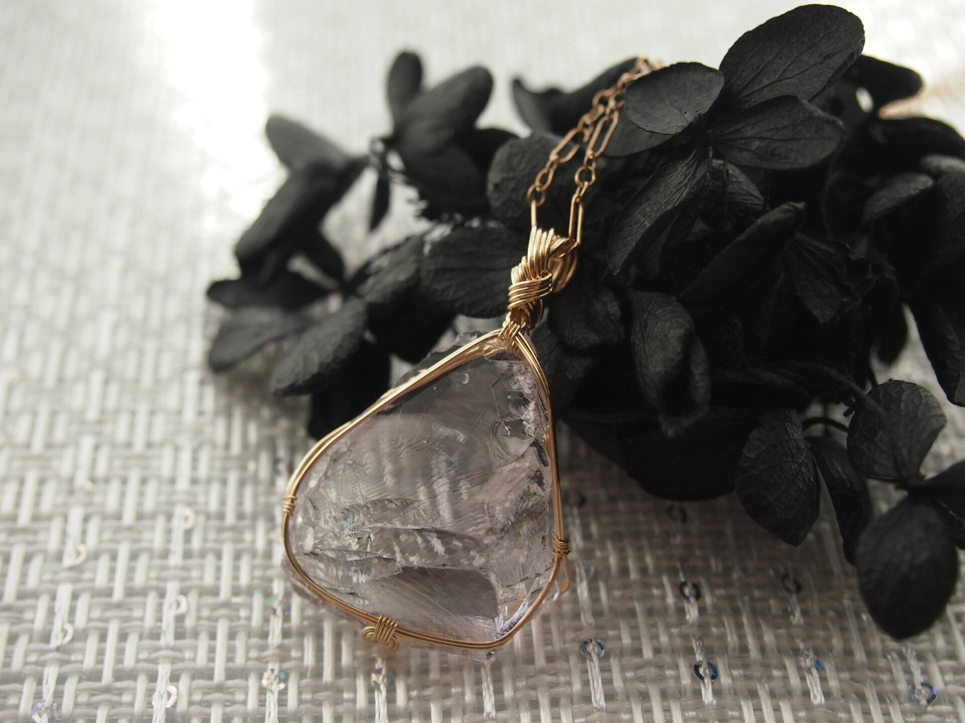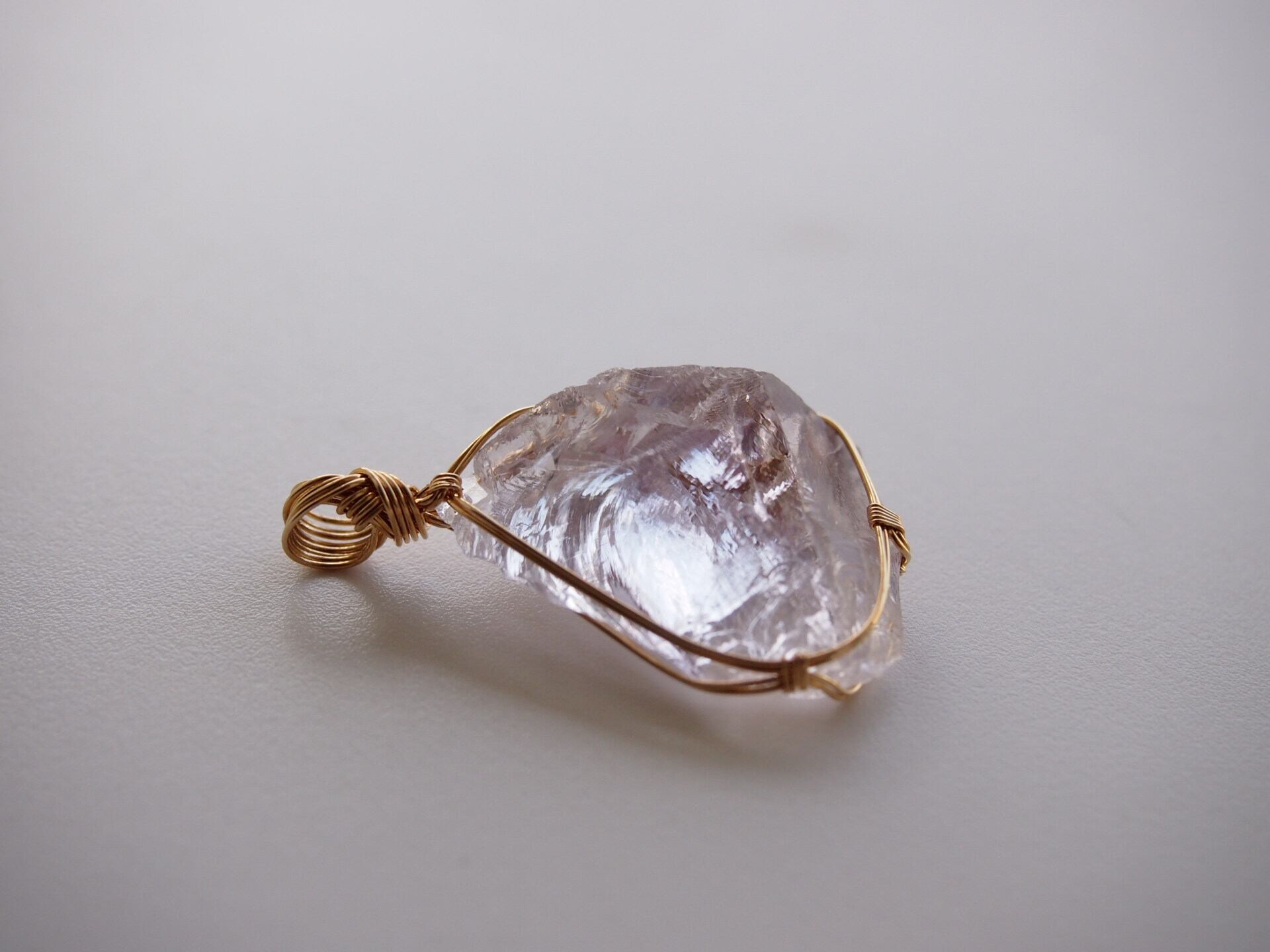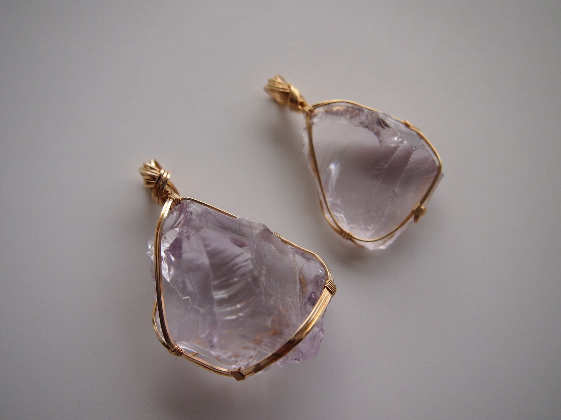 ラフロックのラベンダーアメシストを14kgfワイヤーで繊細に女神巻きペンダントトップに仕上げました♡