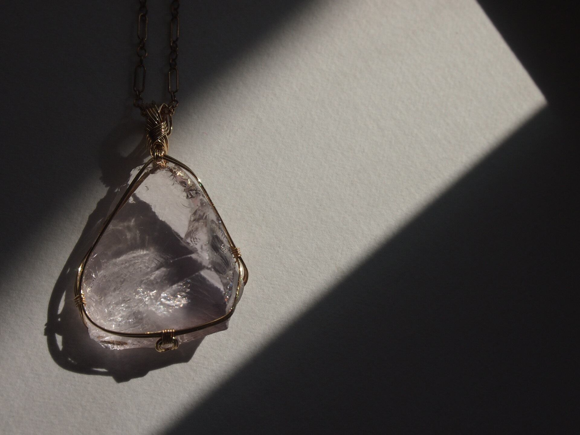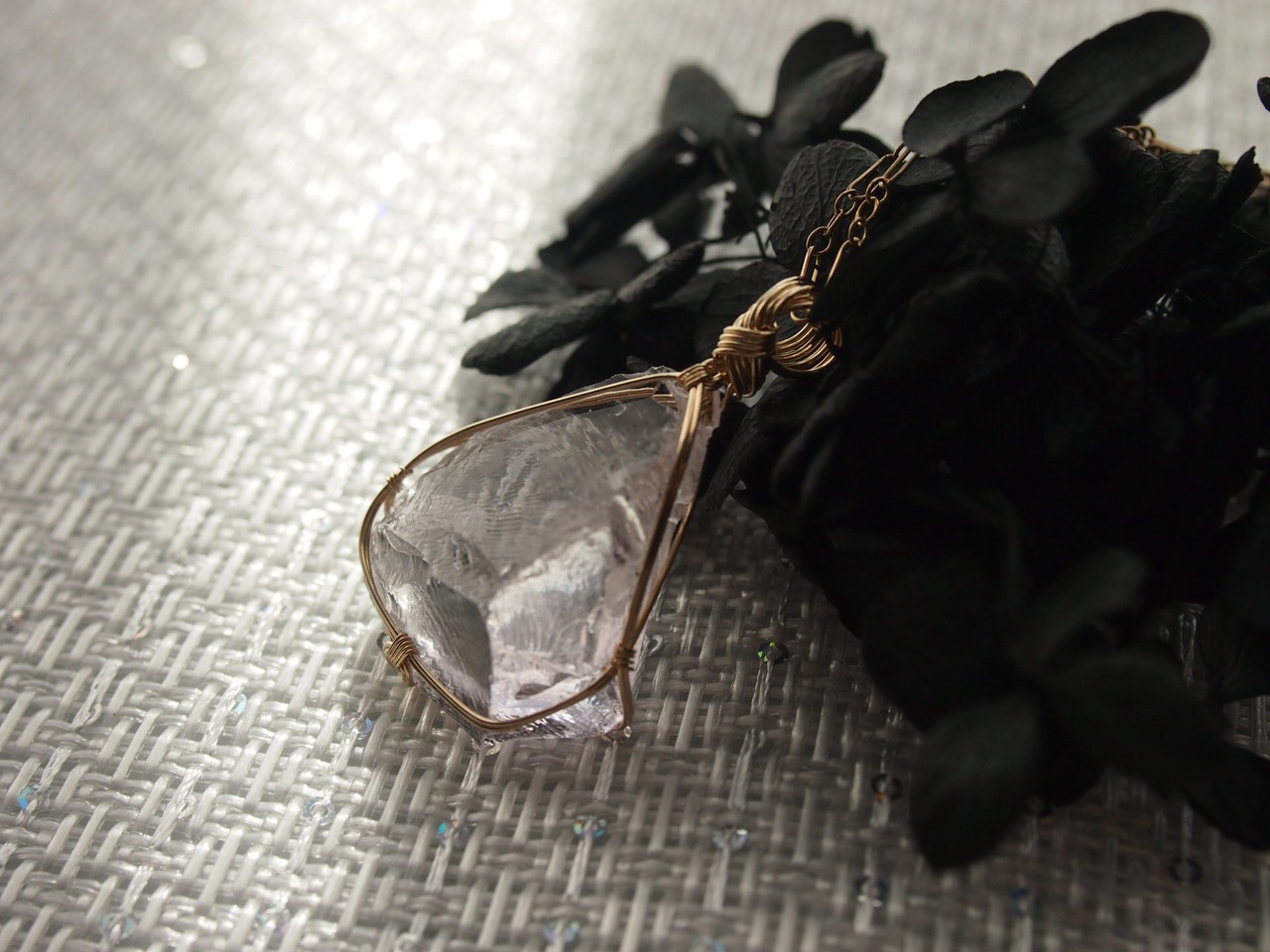 ・なるべくストーンを美しく見せるため、繊細な技術を使ってワイヤーで巻いております。ワイヤー部分に無理な力をかけたり、引っ張ったりするとデザインが損なわれてしまう可能性がございます。