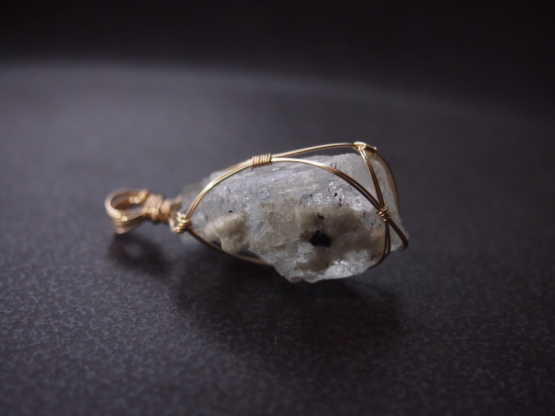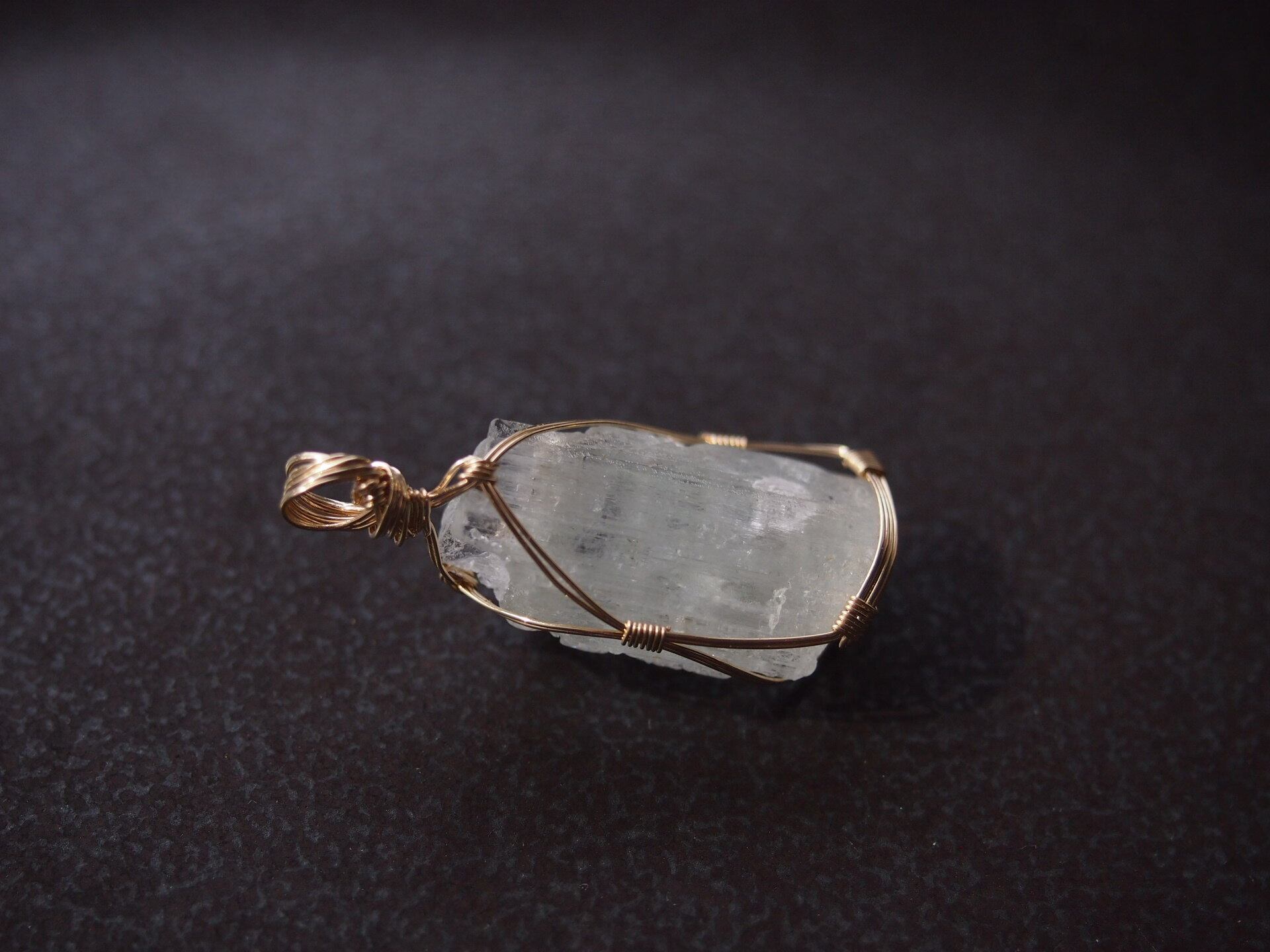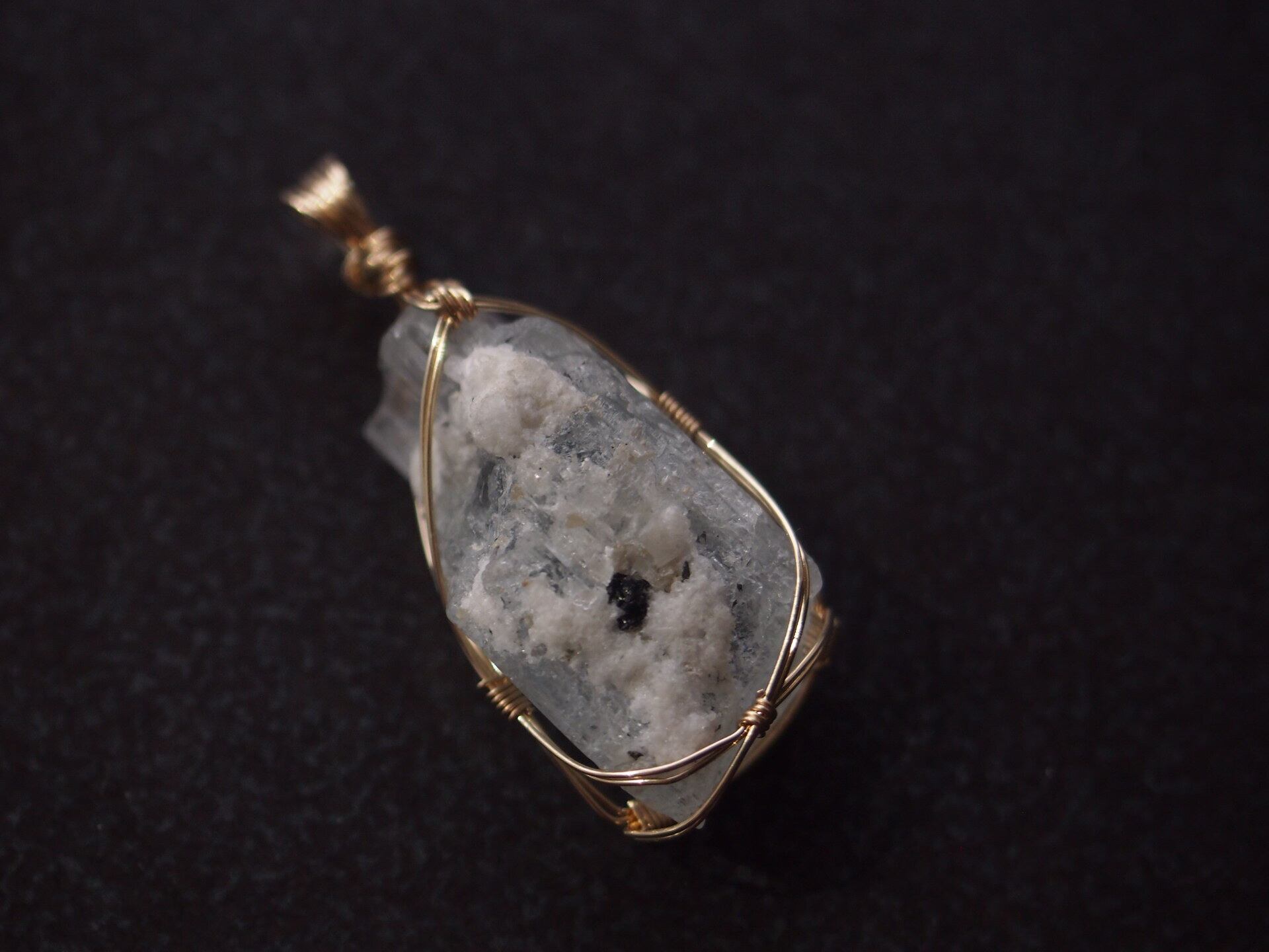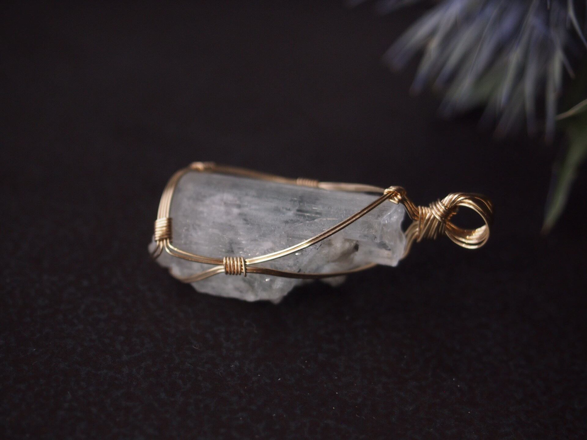 アクアマリンの原石を14kgfワイヤーで繊細にペンダントトップに仕上げました♡