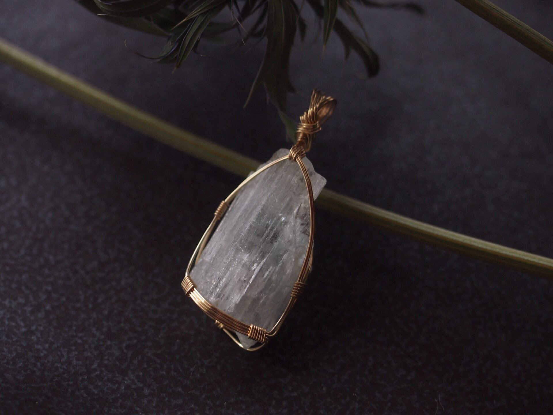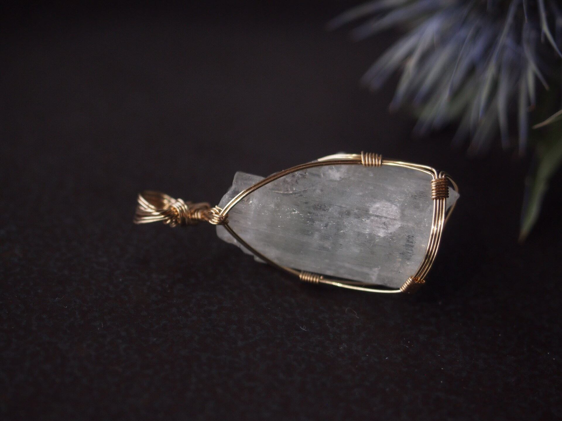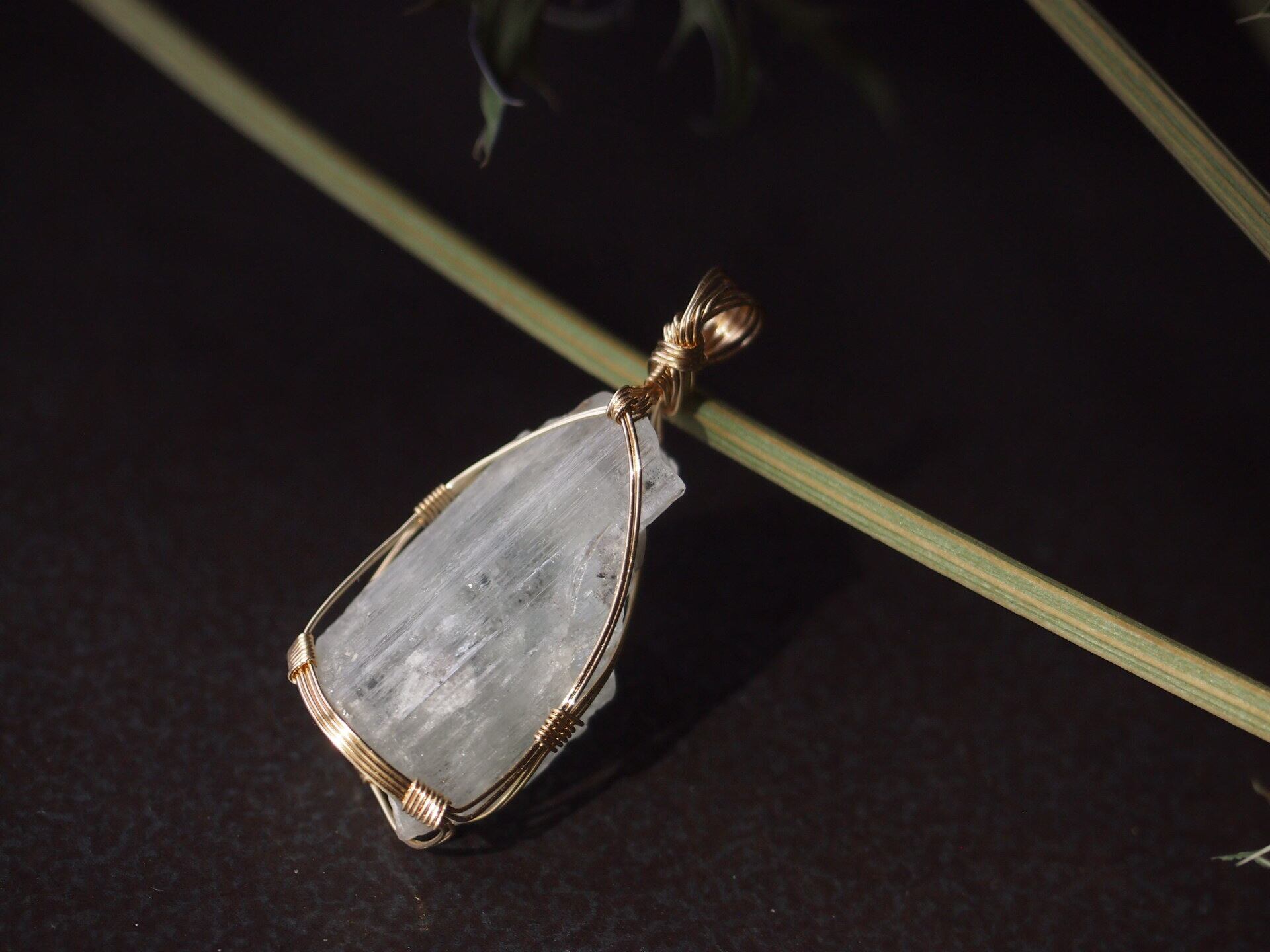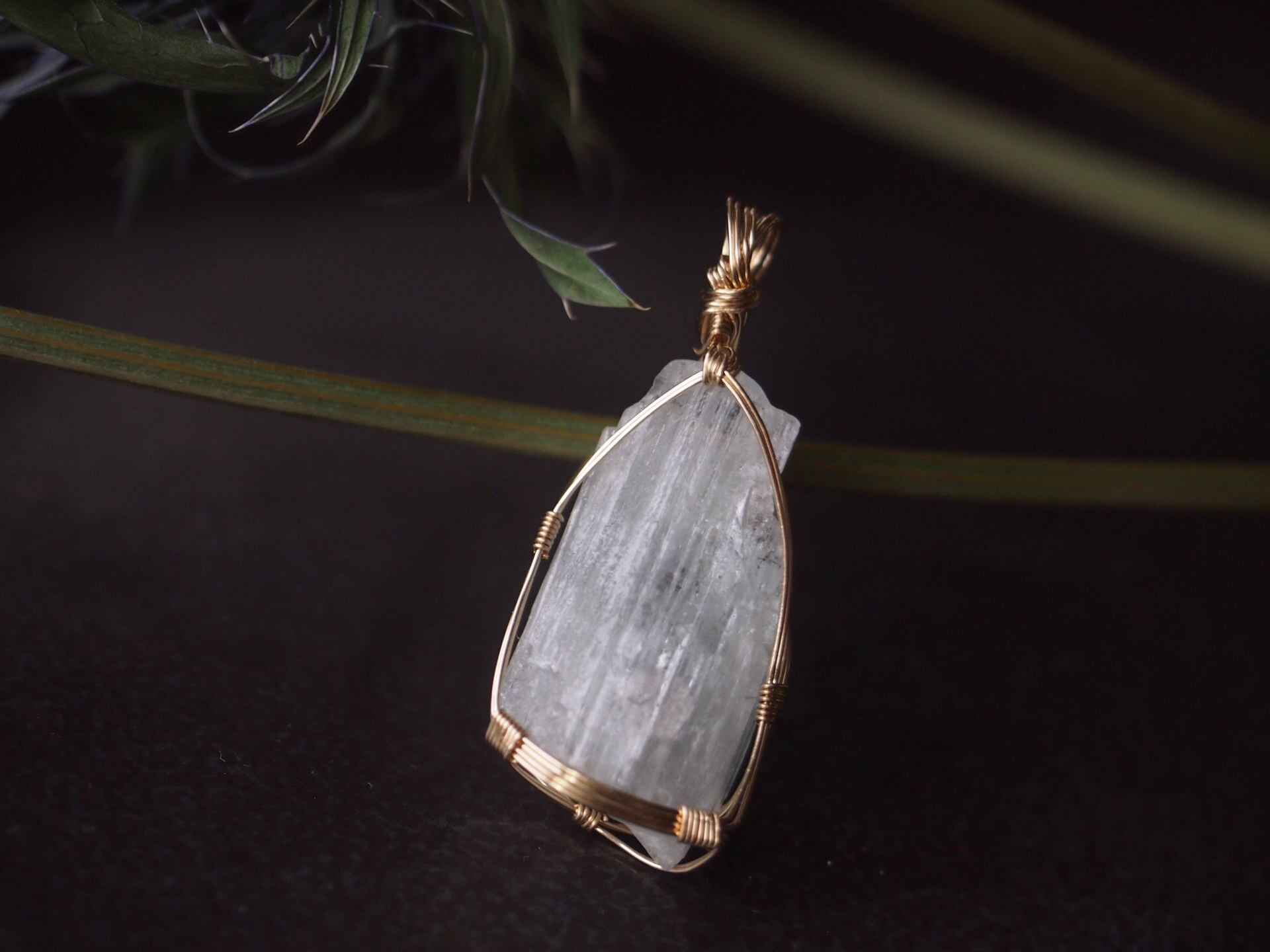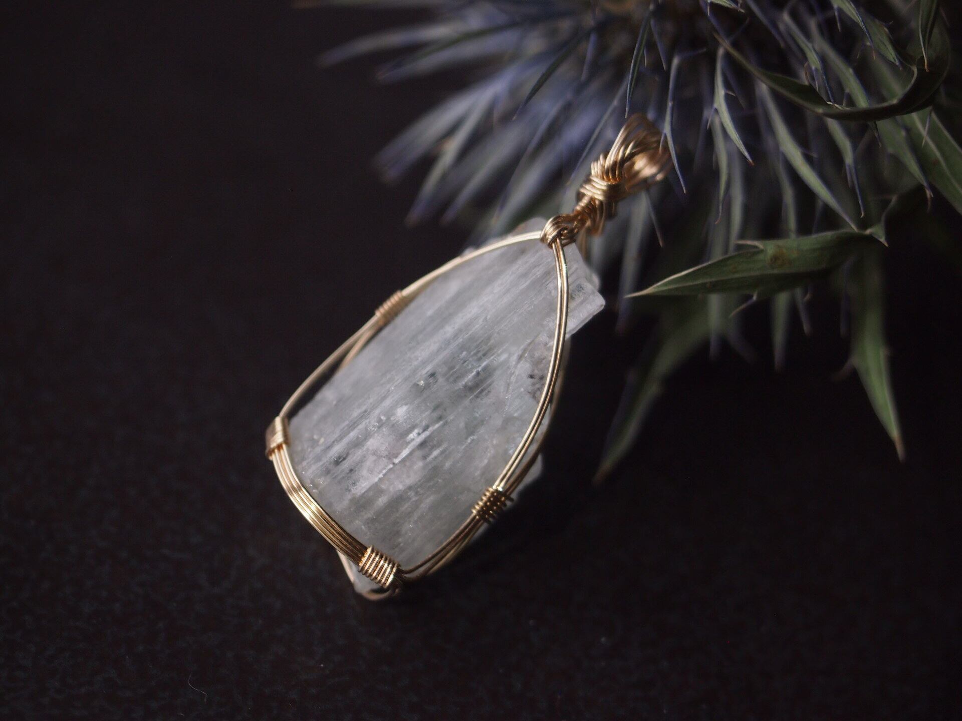 アクアマリンの原石を14kgfワイヤーで繊細にペンダントトップに仕上げました♡