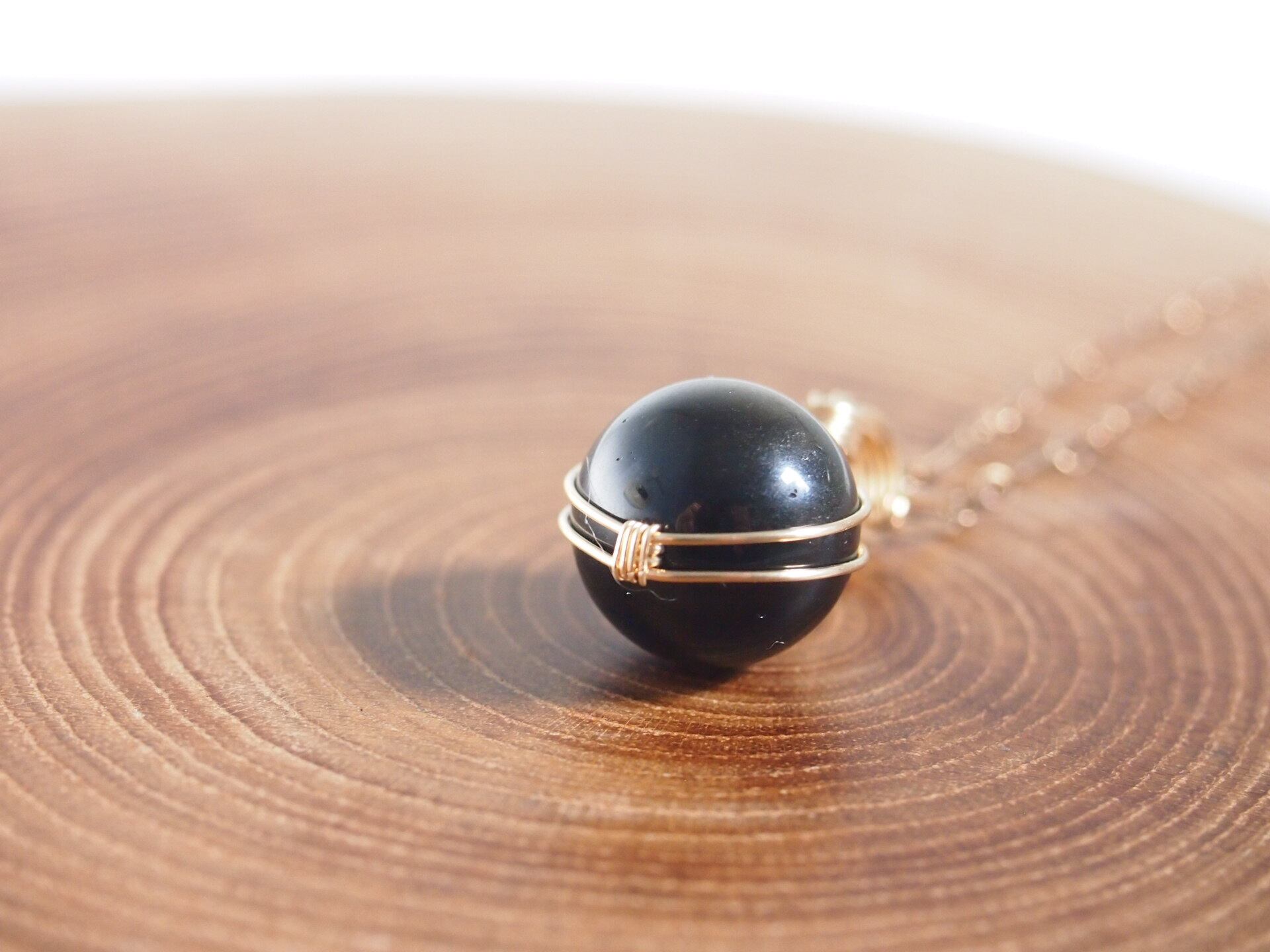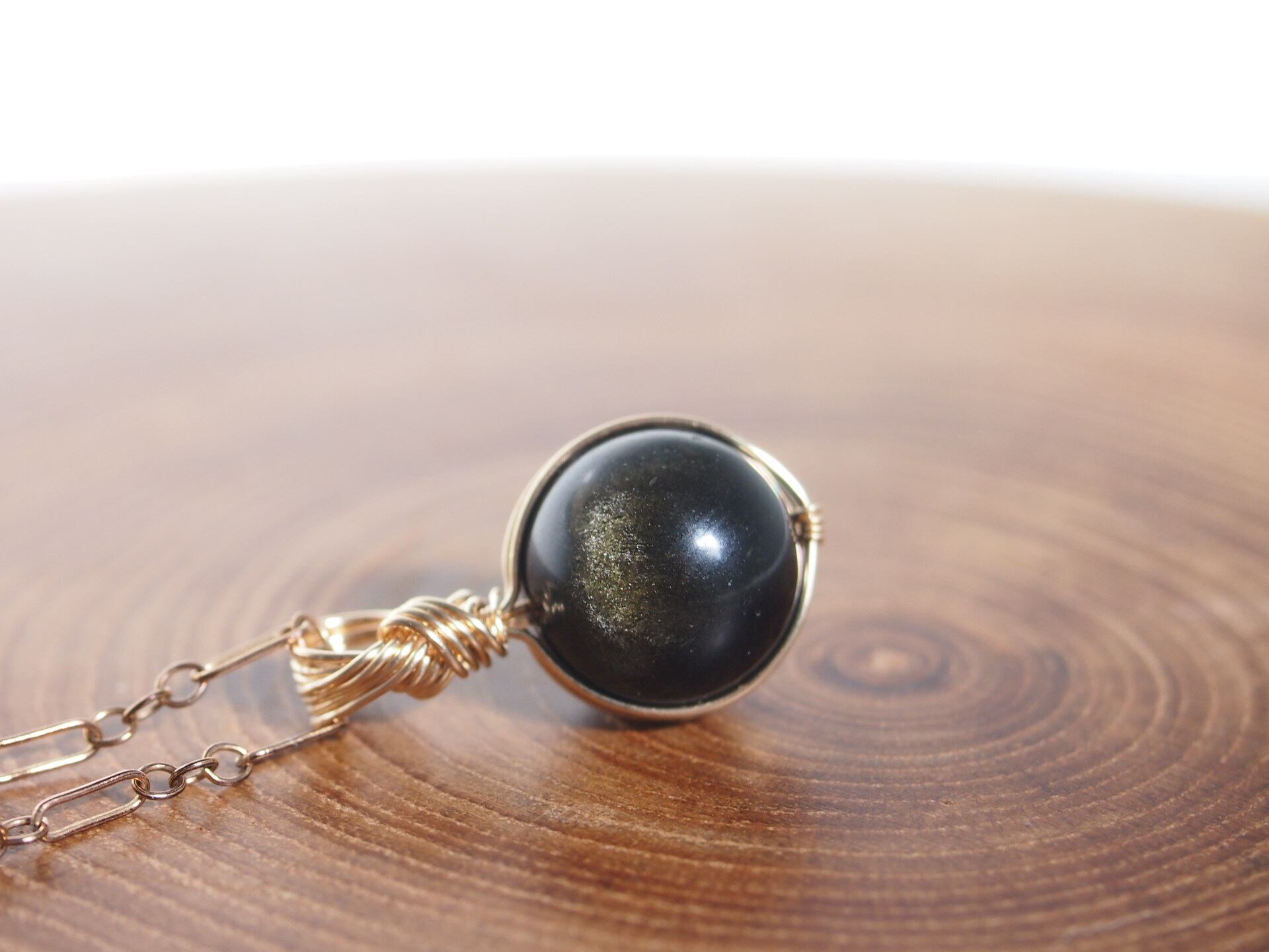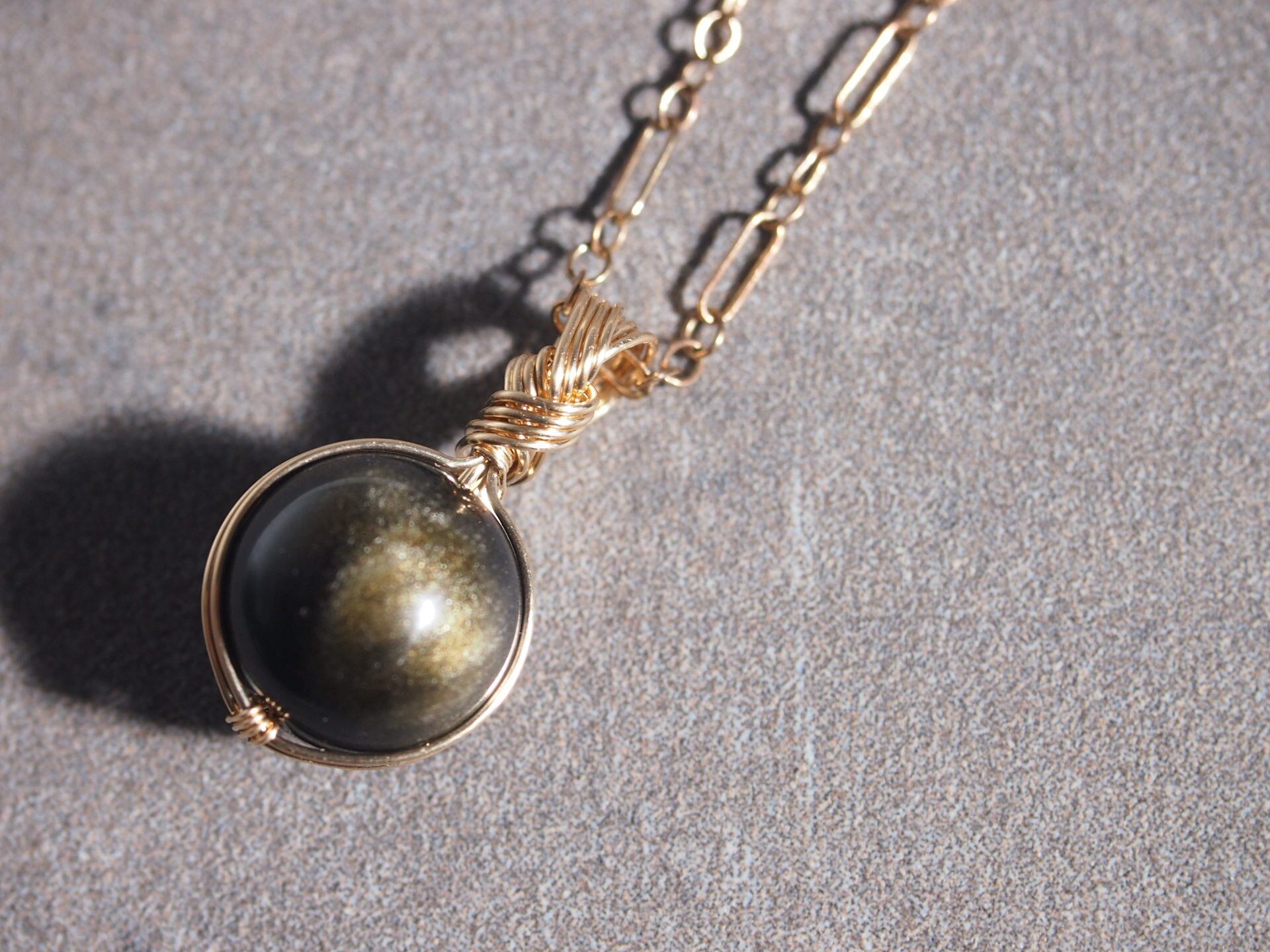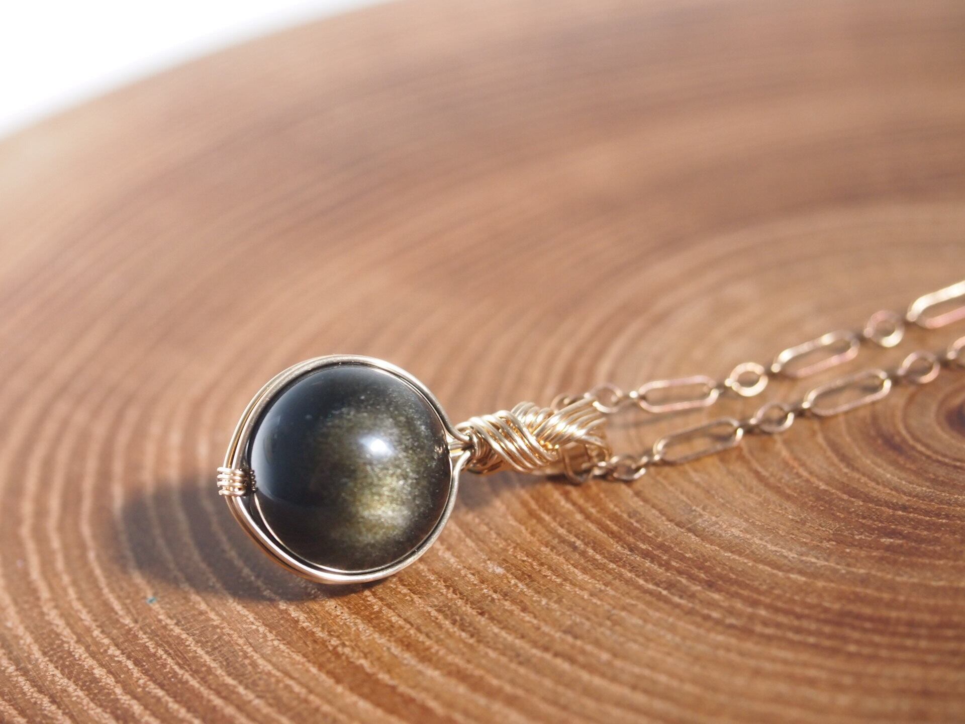 ゴールデンオブシディアンの10mmの丸玉を14kgfワイヤーで繊細に女神巻きペンダントトップに仕上げました♡