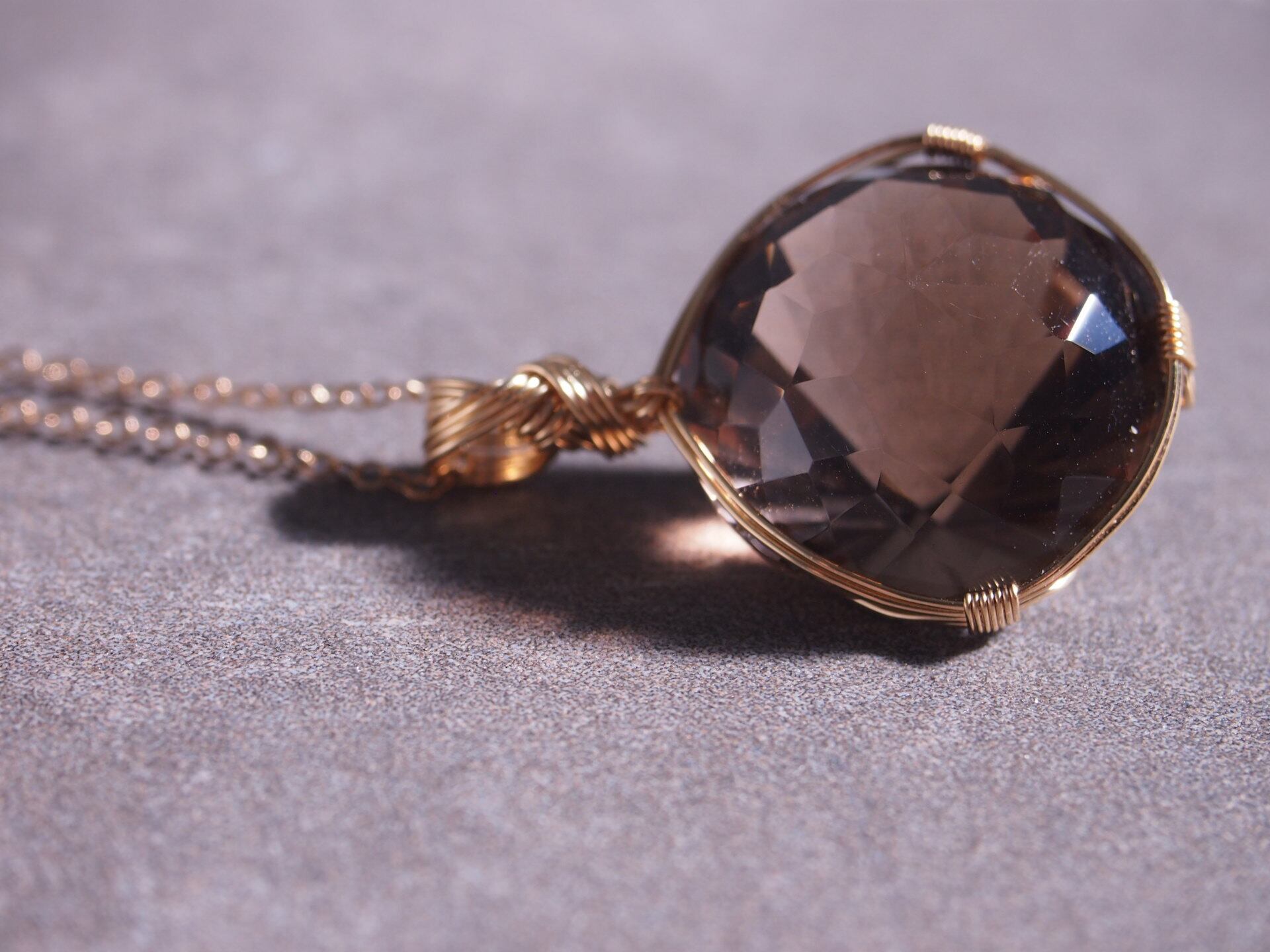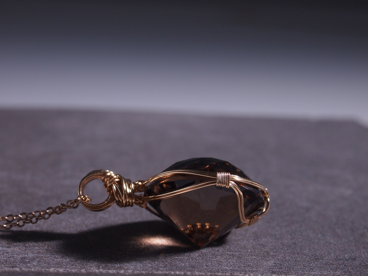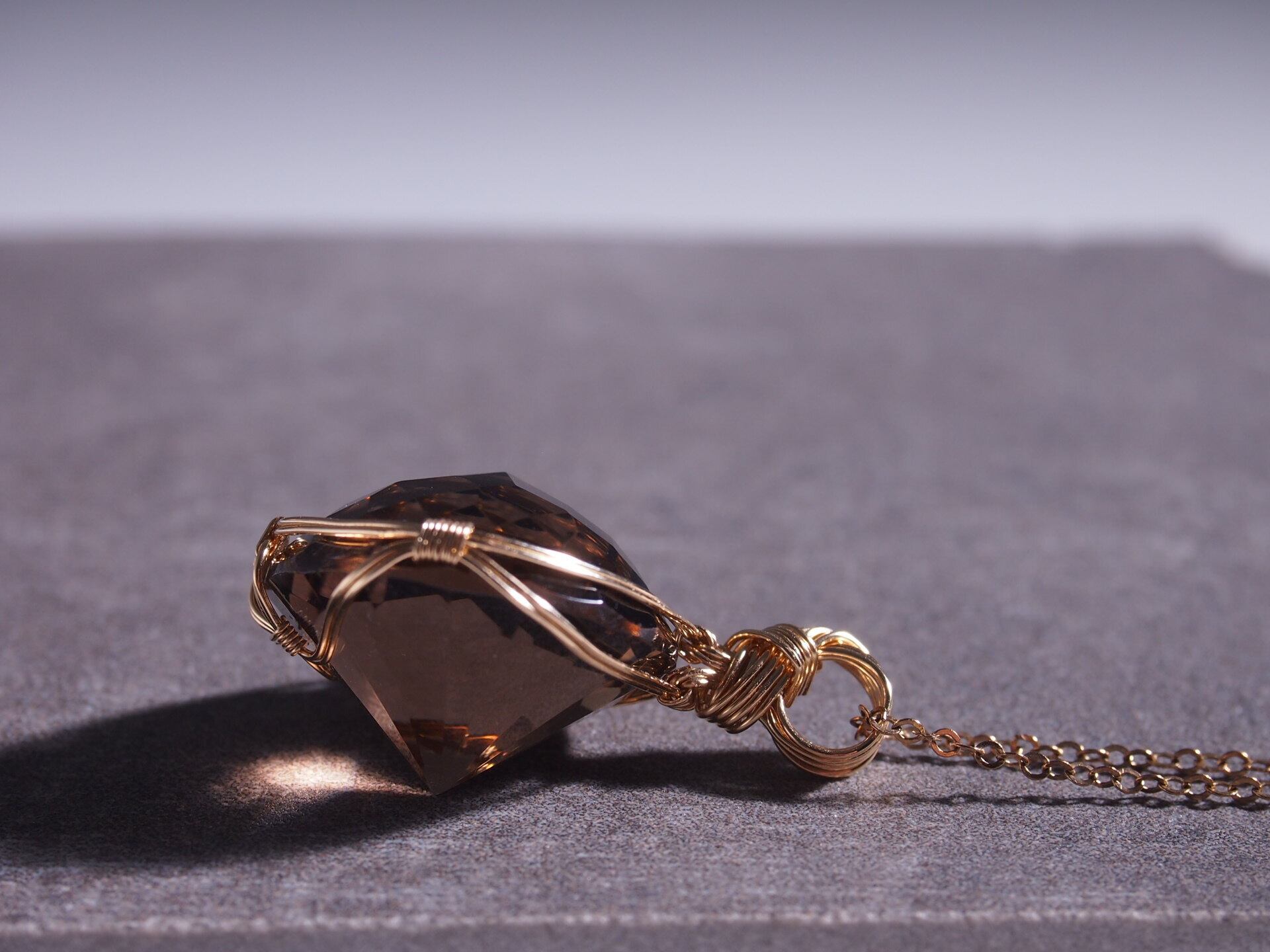 ファセットカットのスモーキークォーツを14kgfワイヤーで繊細に女神巻きペンダントトップに仕上げました♡