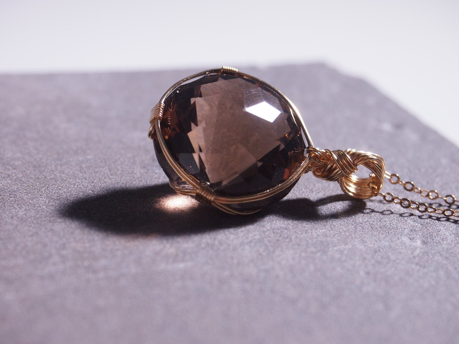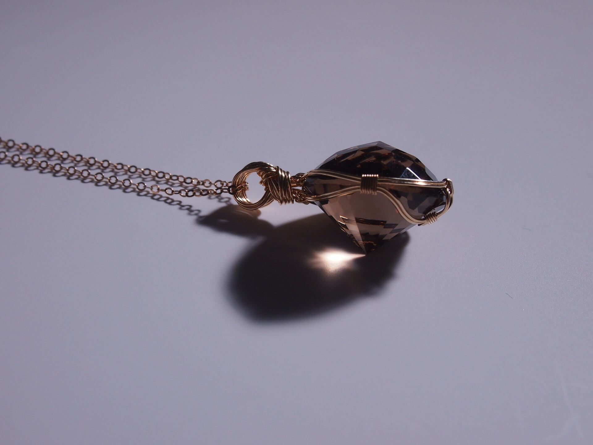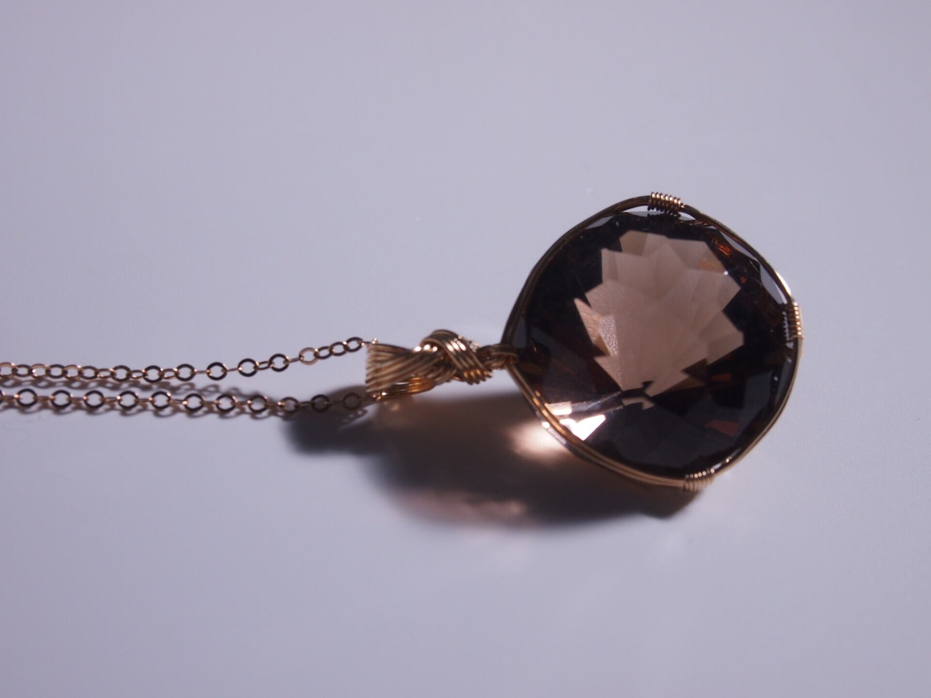ファセットカットのスモーキークォーツを14kgfワイヤーで繊細に女神巻きペンダントトップに仕上げました♡