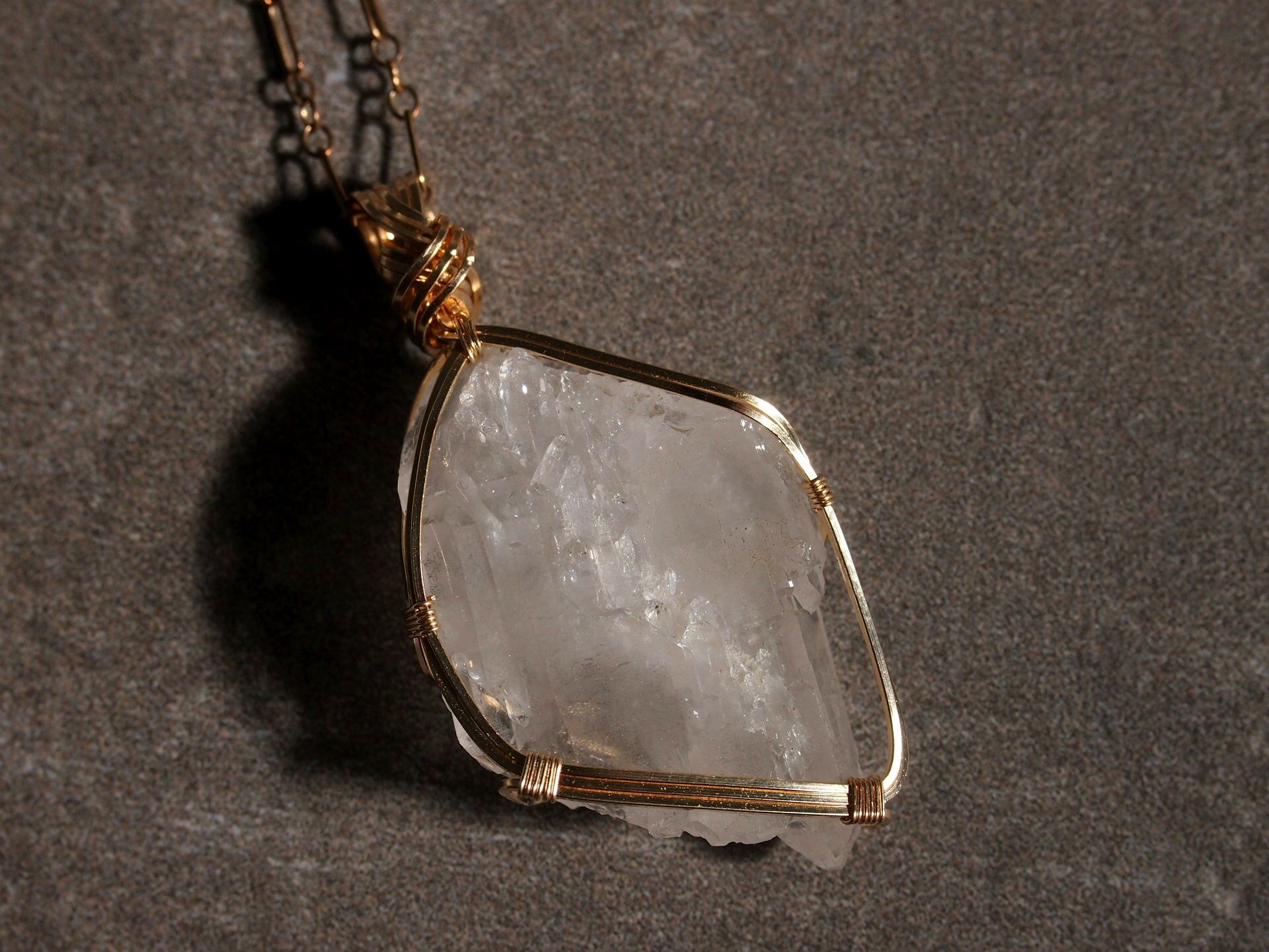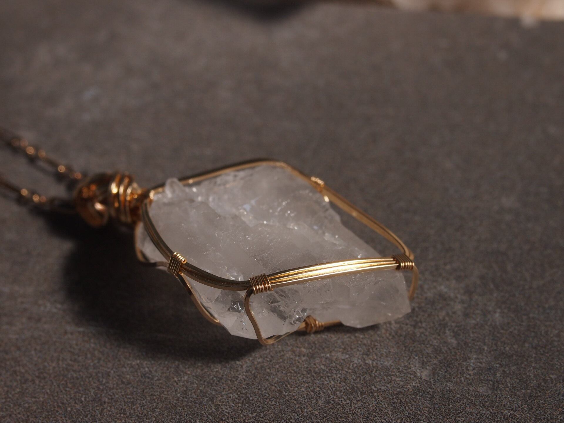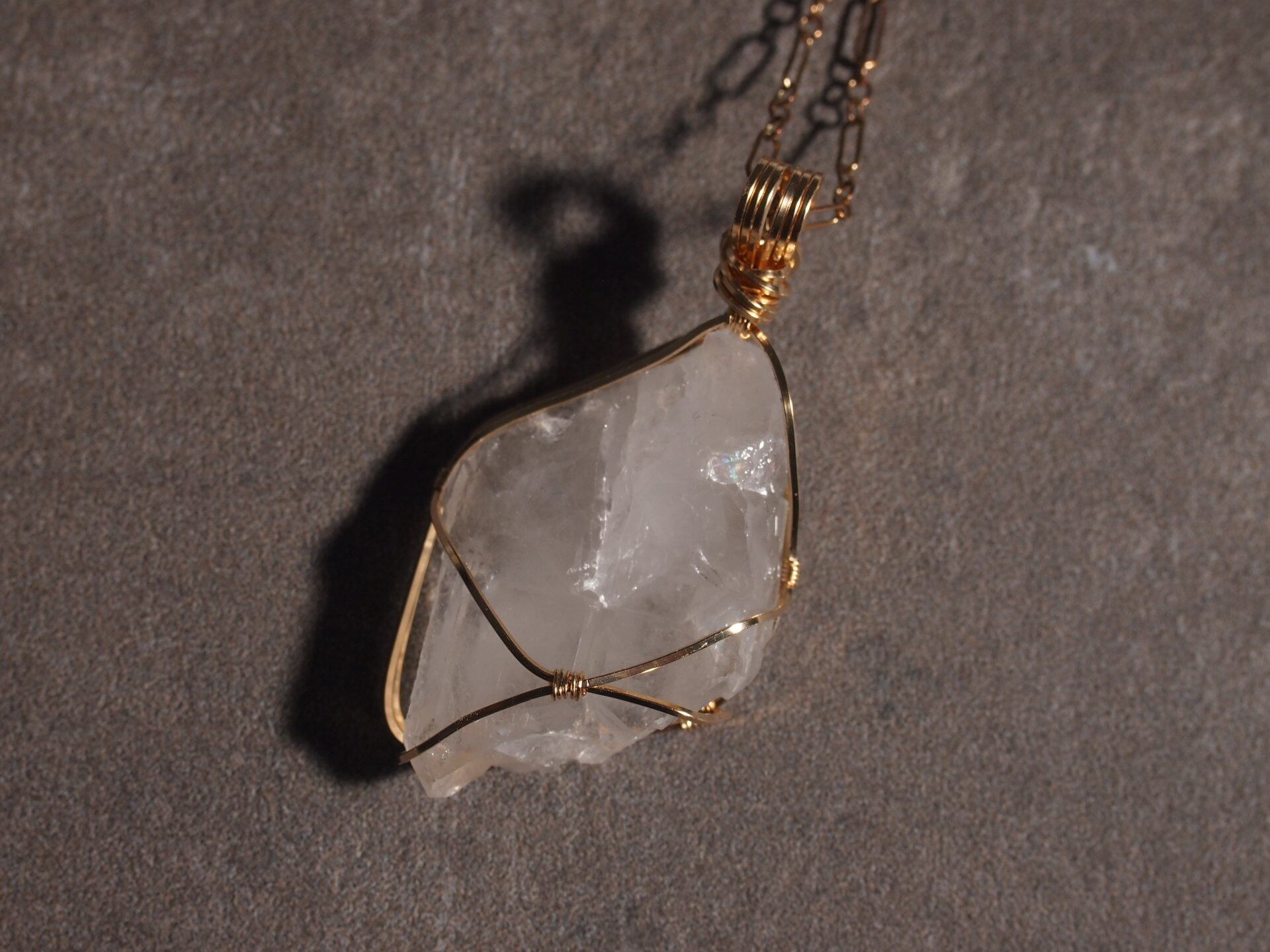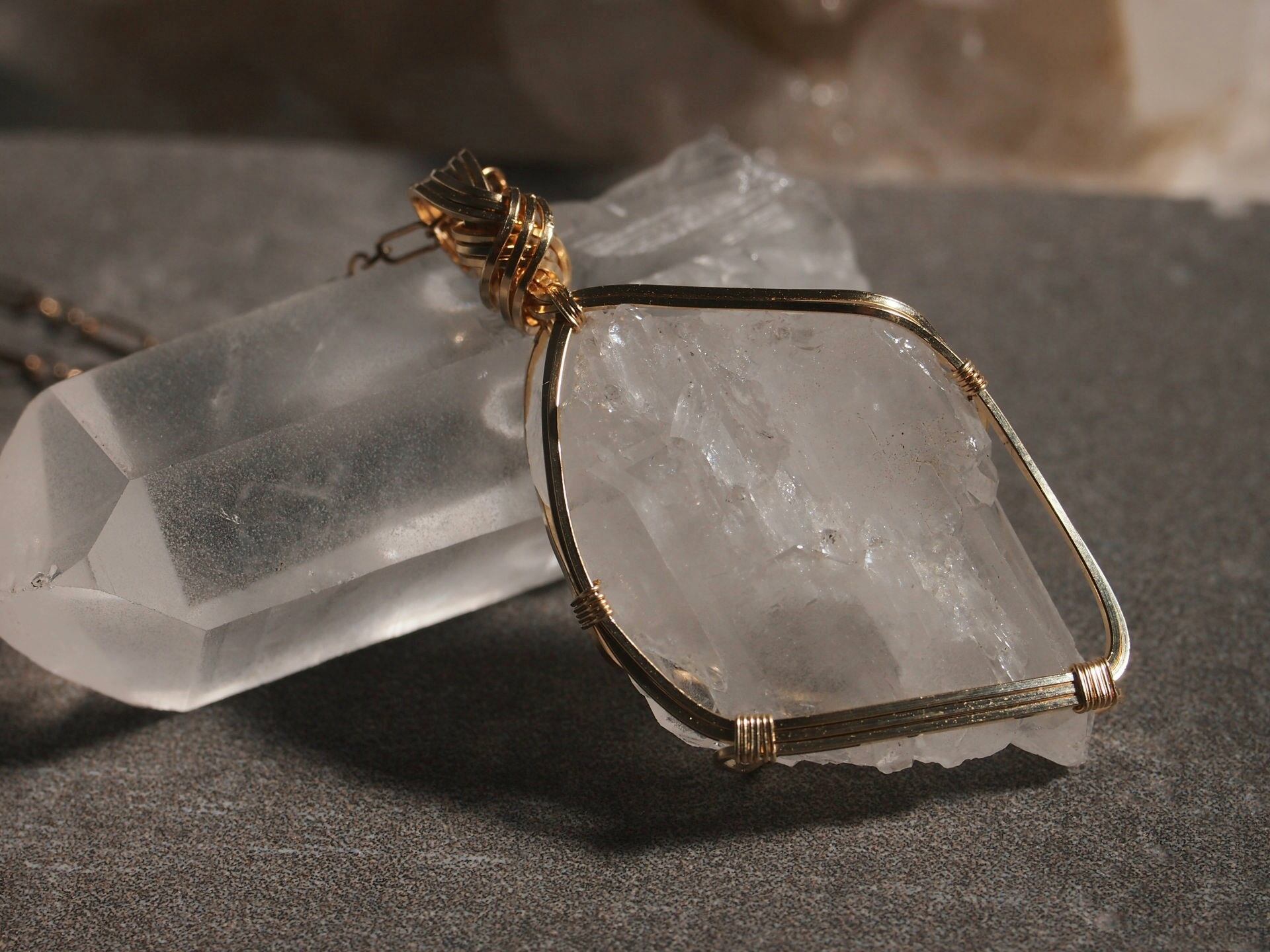 国産の個性的なクォーツを14kgfスクエアワイヤーで繊細に女神巻きペンダントトップに仕上げました♡