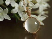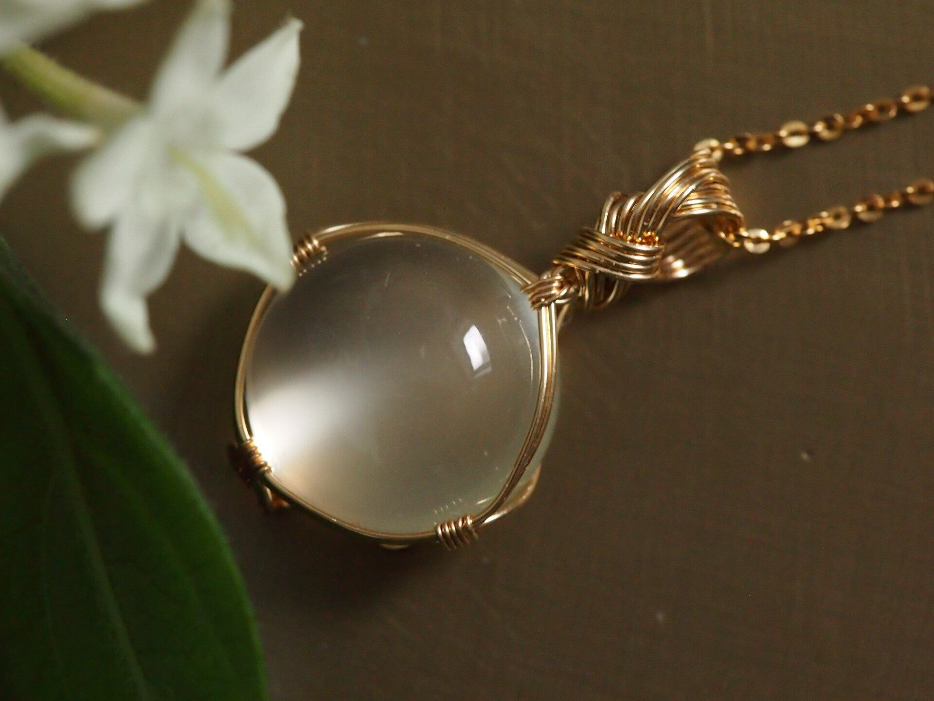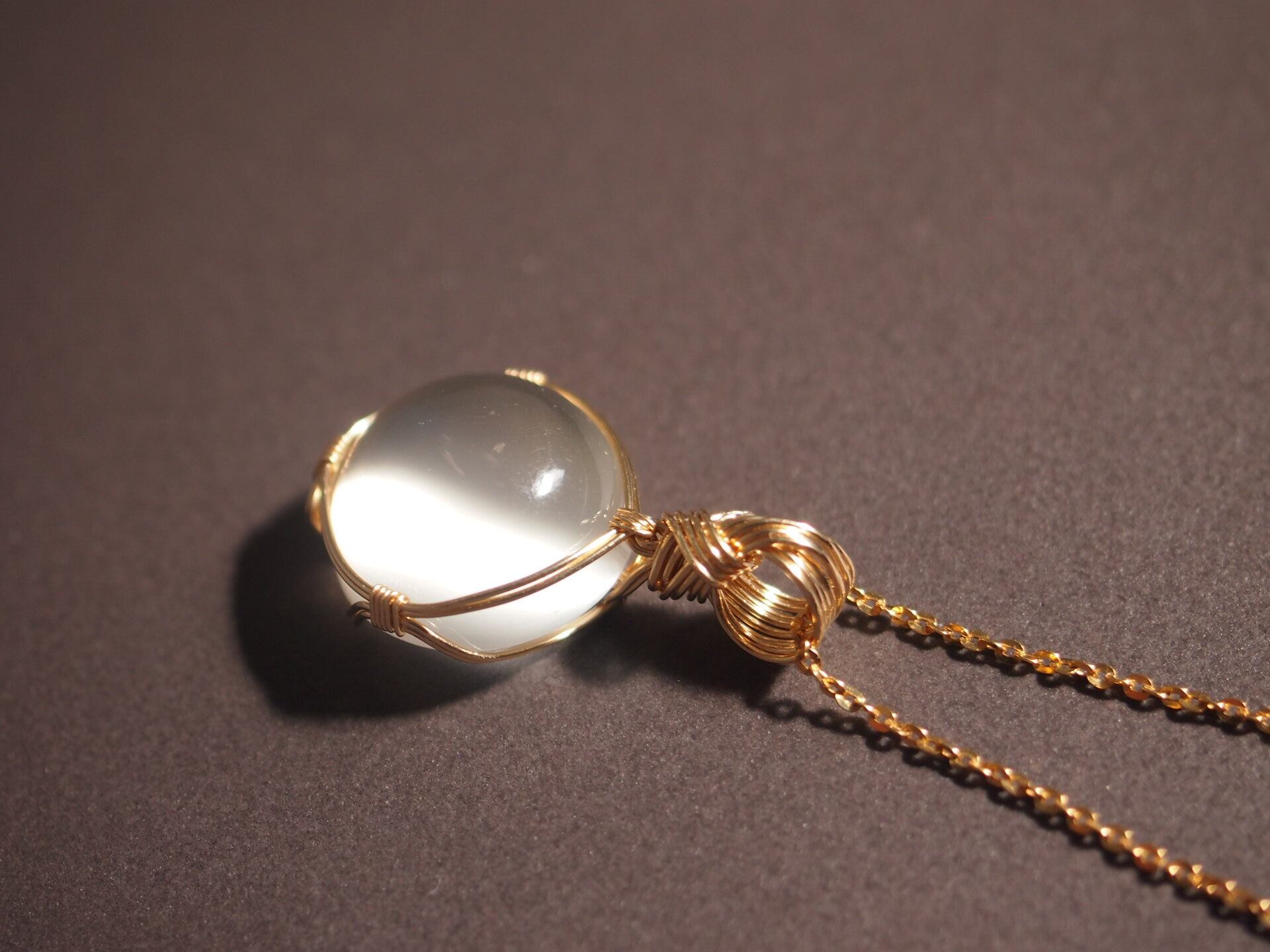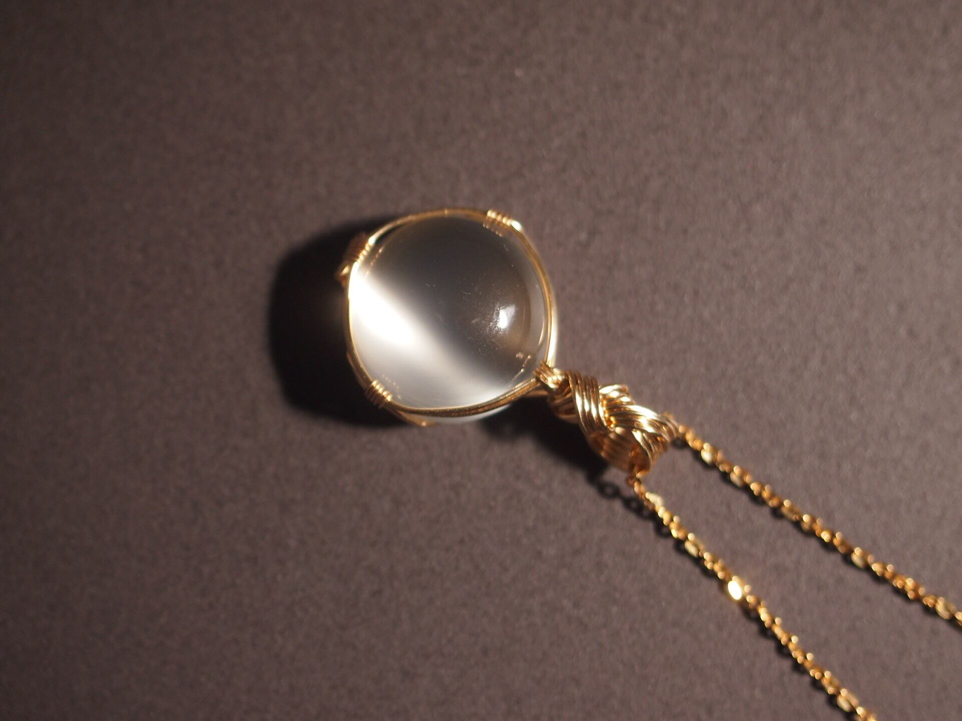 まんまるなカボションカットのムーンストーンを14kgfワイヤーで繊細にペンダントトップに仕上げました♡