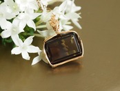 レクタングルカットスモーキークォーツの女神巻きペンダントトップ
