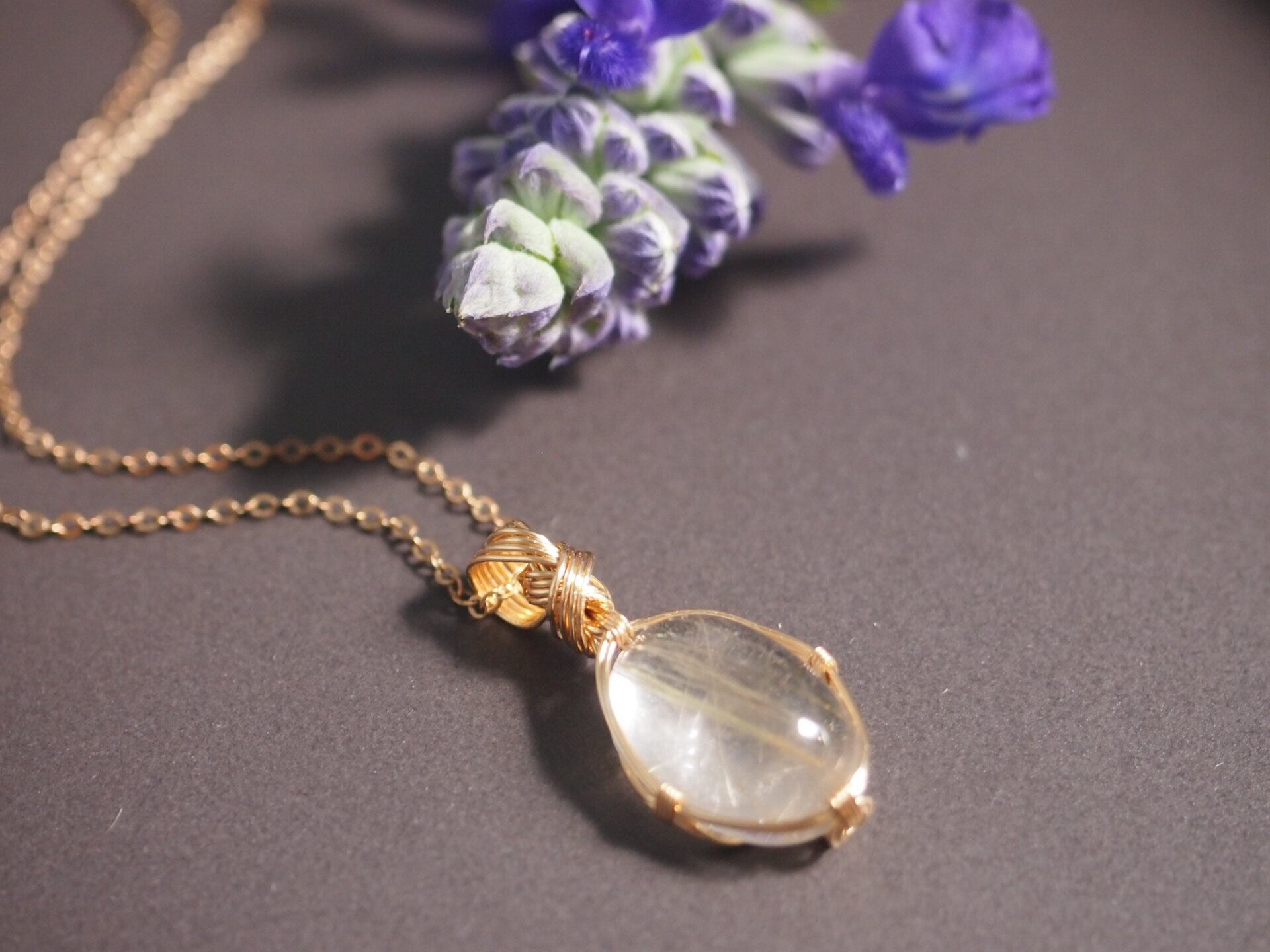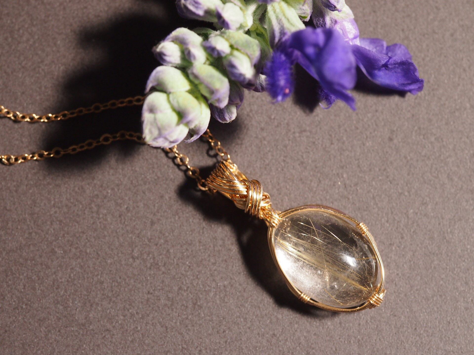 カボションカットのルチルインクォーツを14kgfワイヤーで繊細にペンダントトップに仕上げました♡