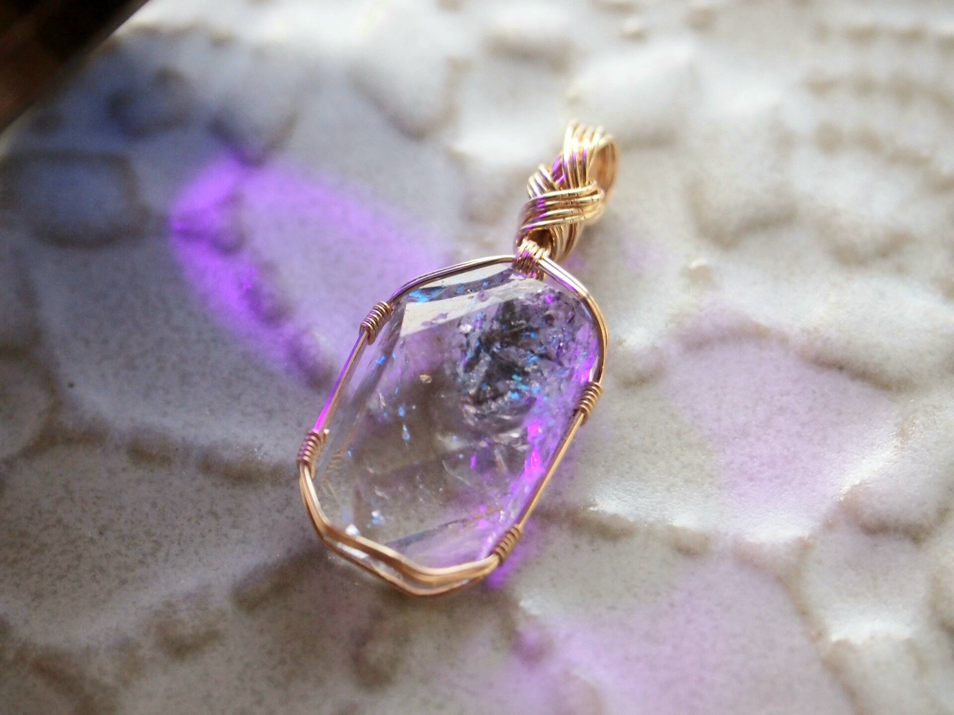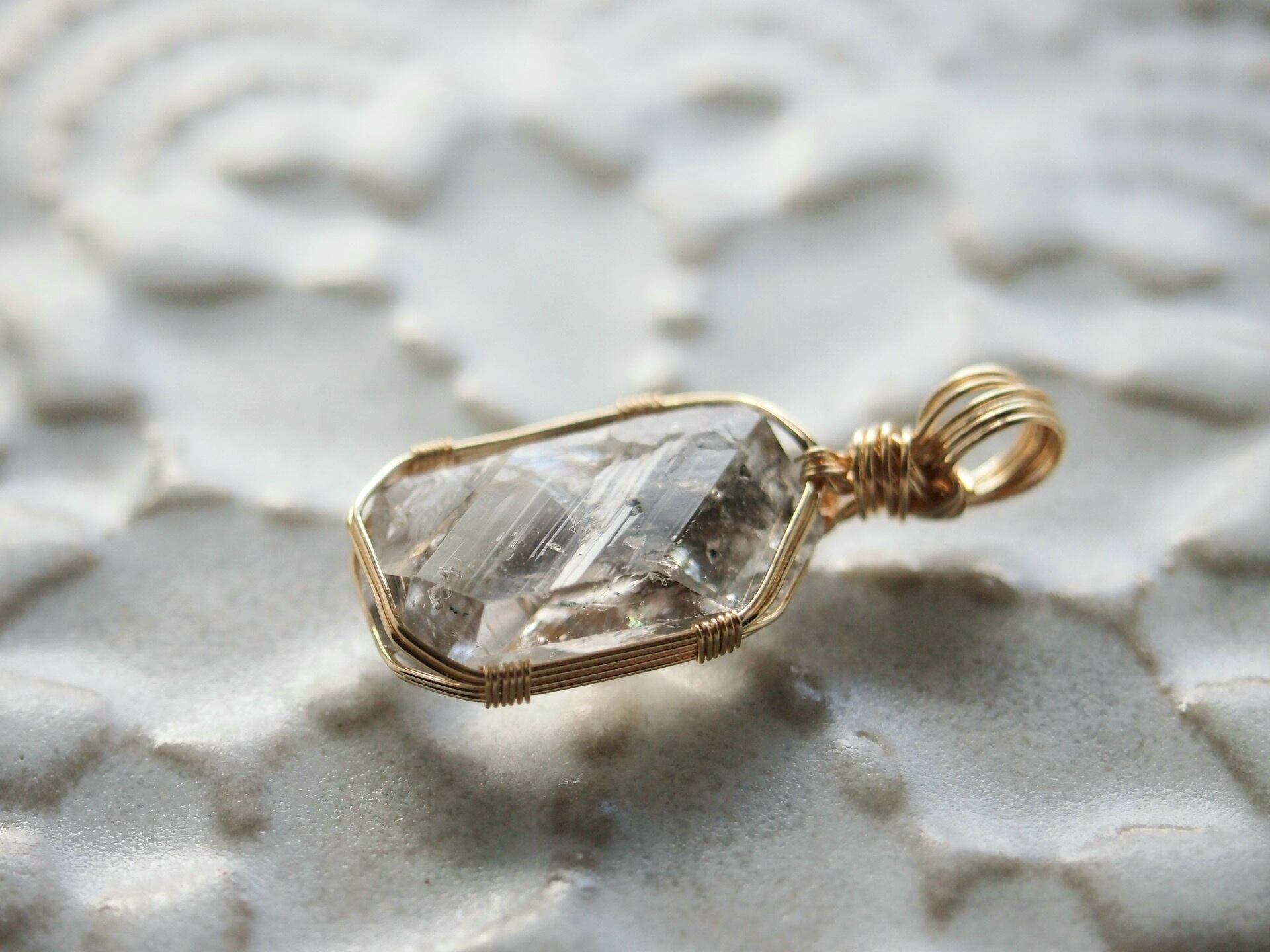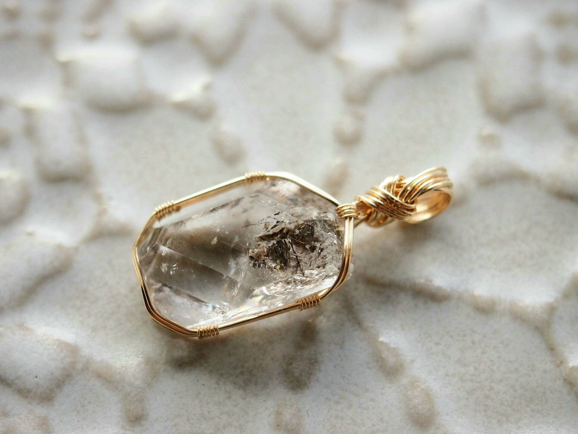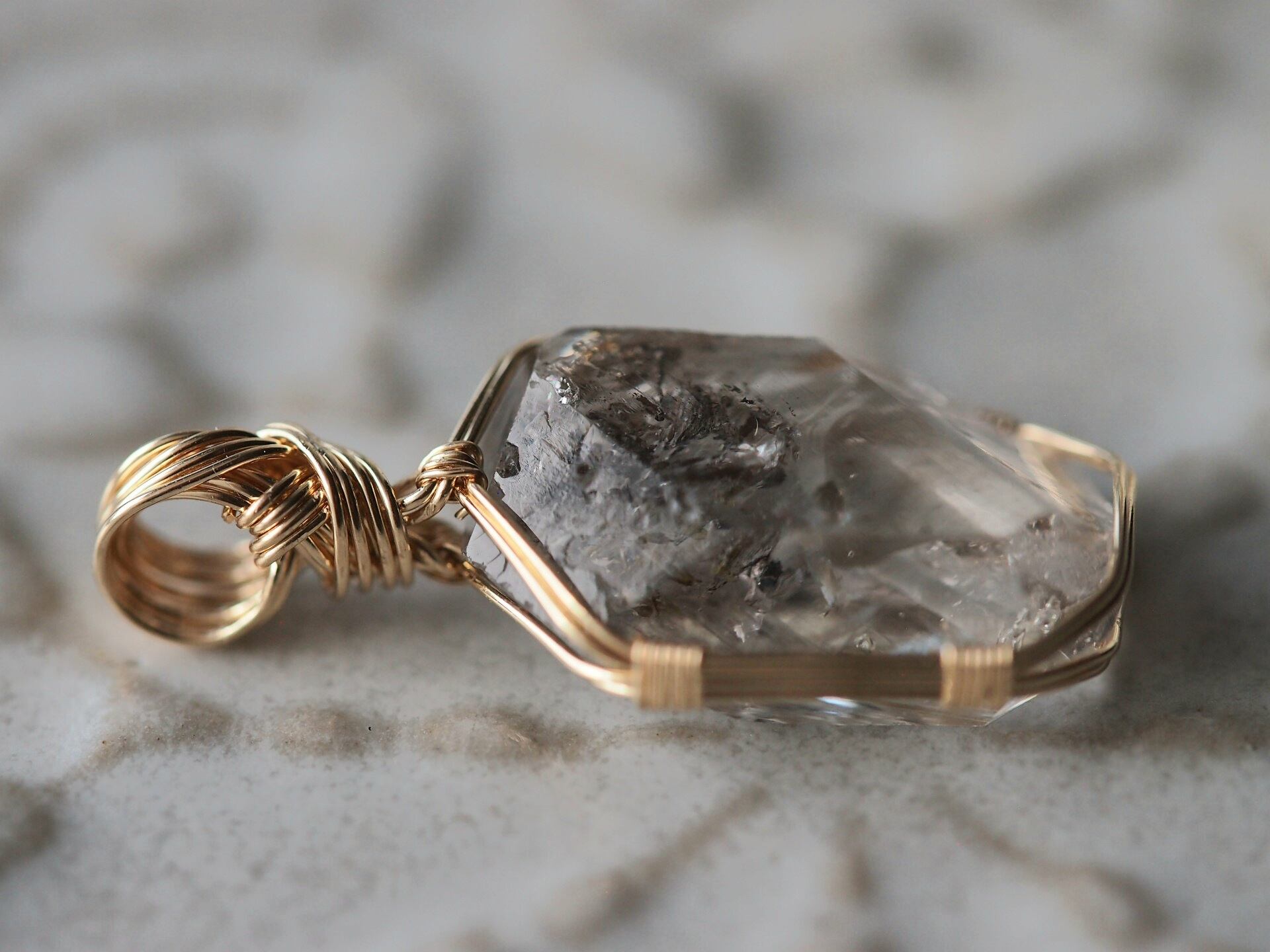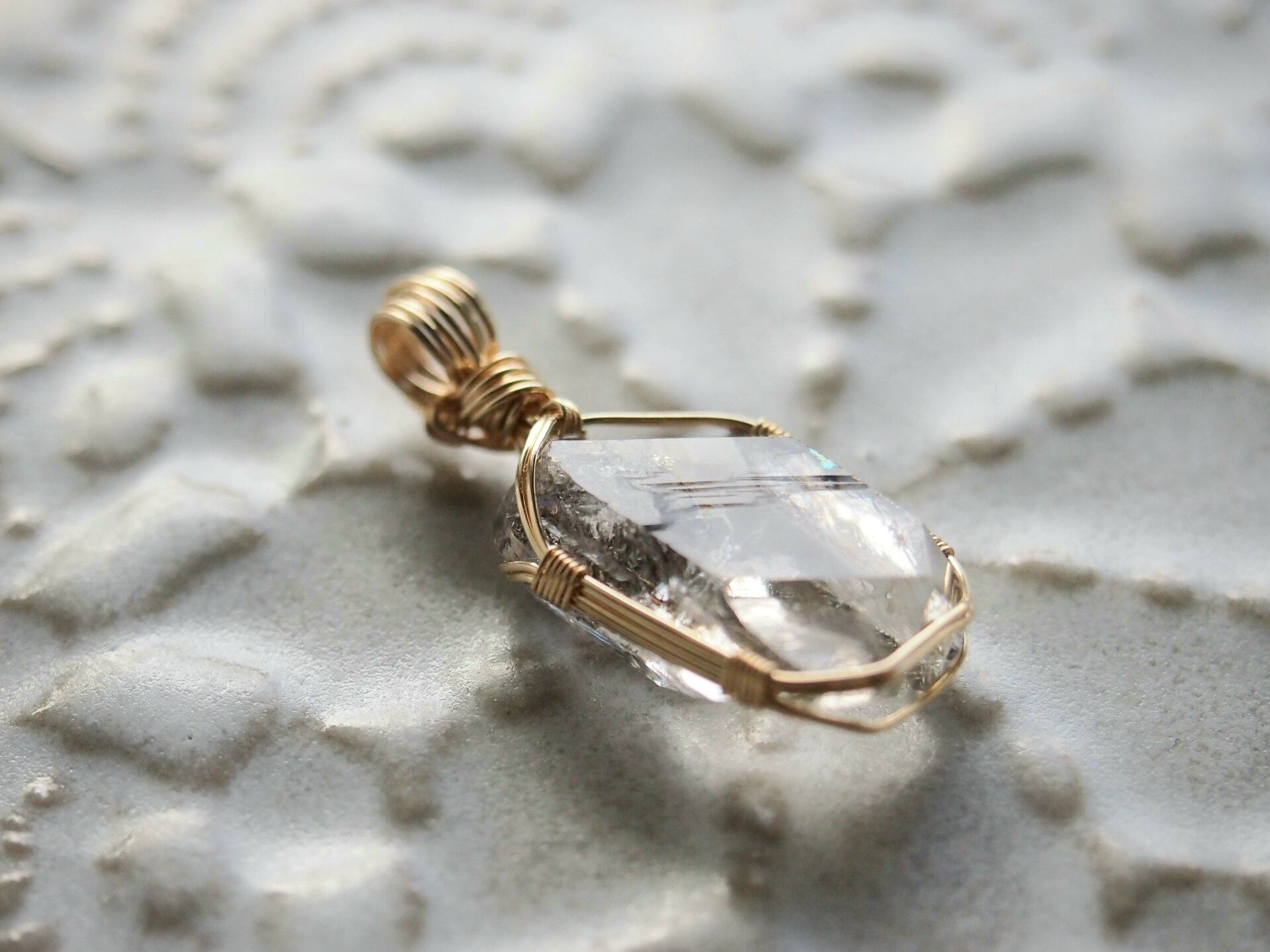 オイルインクォーツを14kgfワイヤーで繊細に女神巻きペンダントトップに仕上げました♡