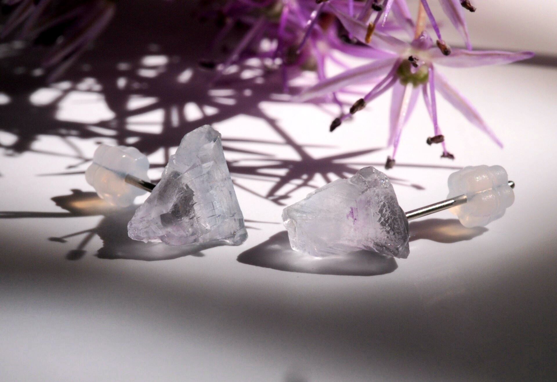 ニューメキシコ産のフローライト原石でピアスを制作しました✧
