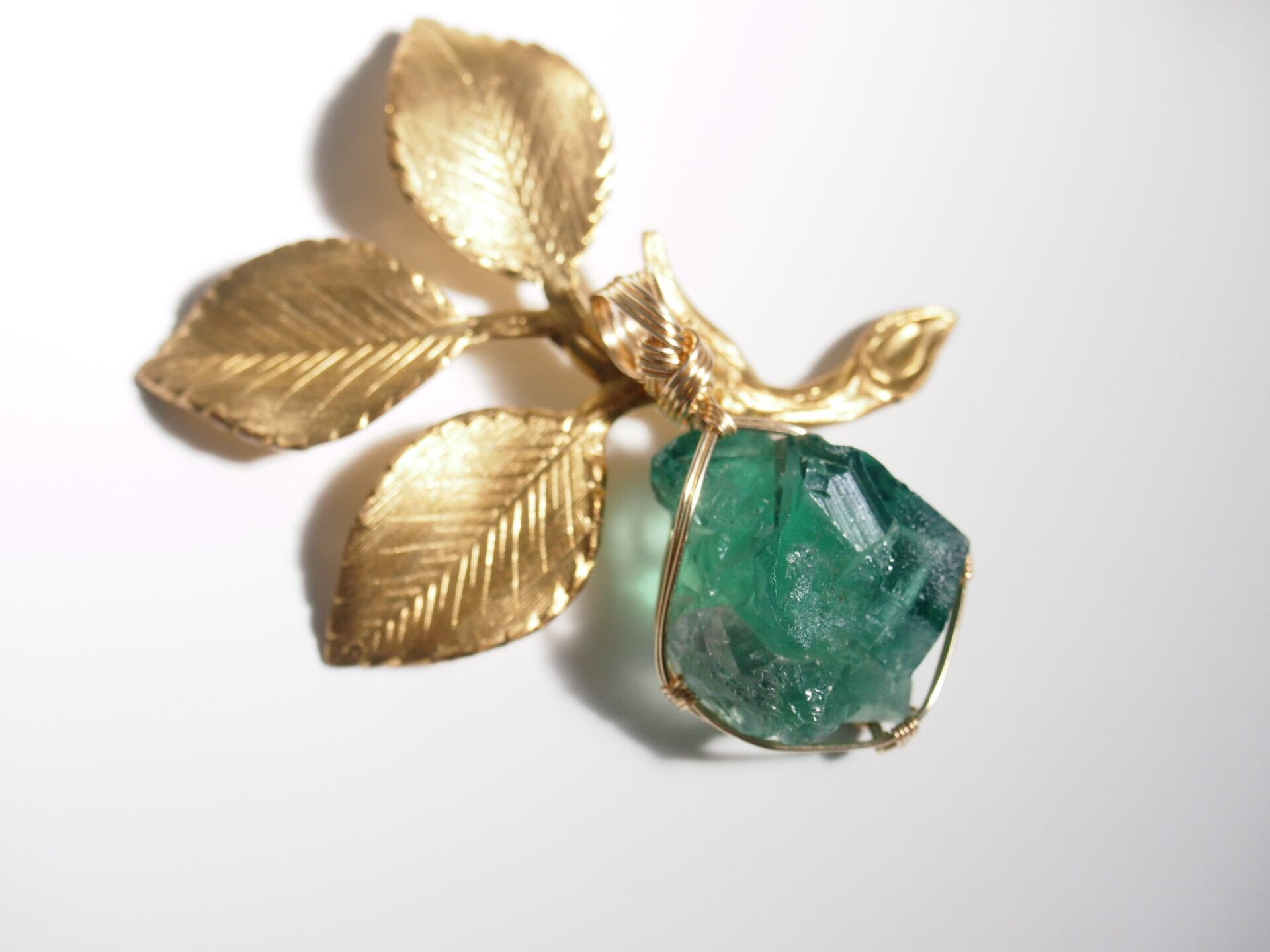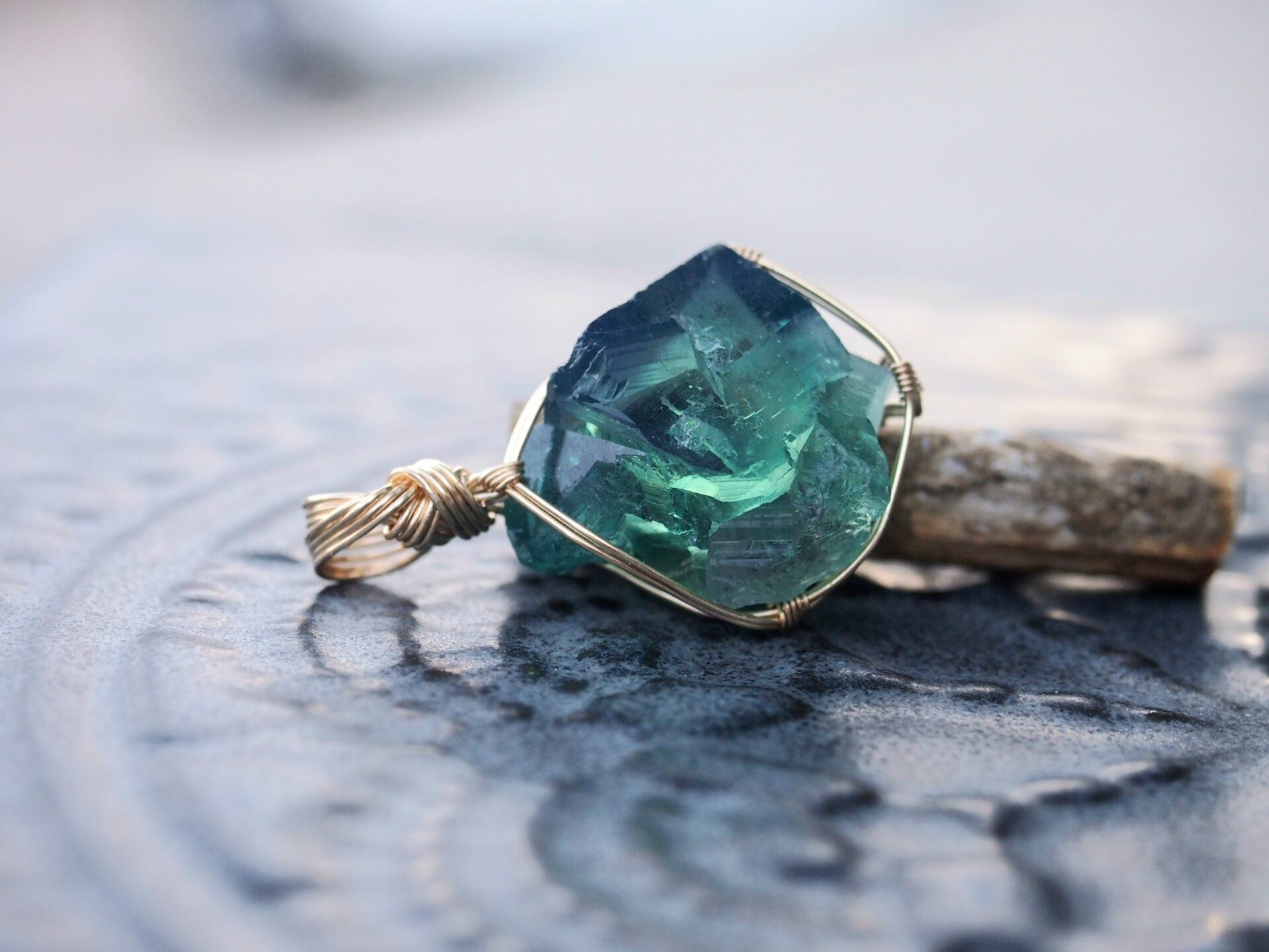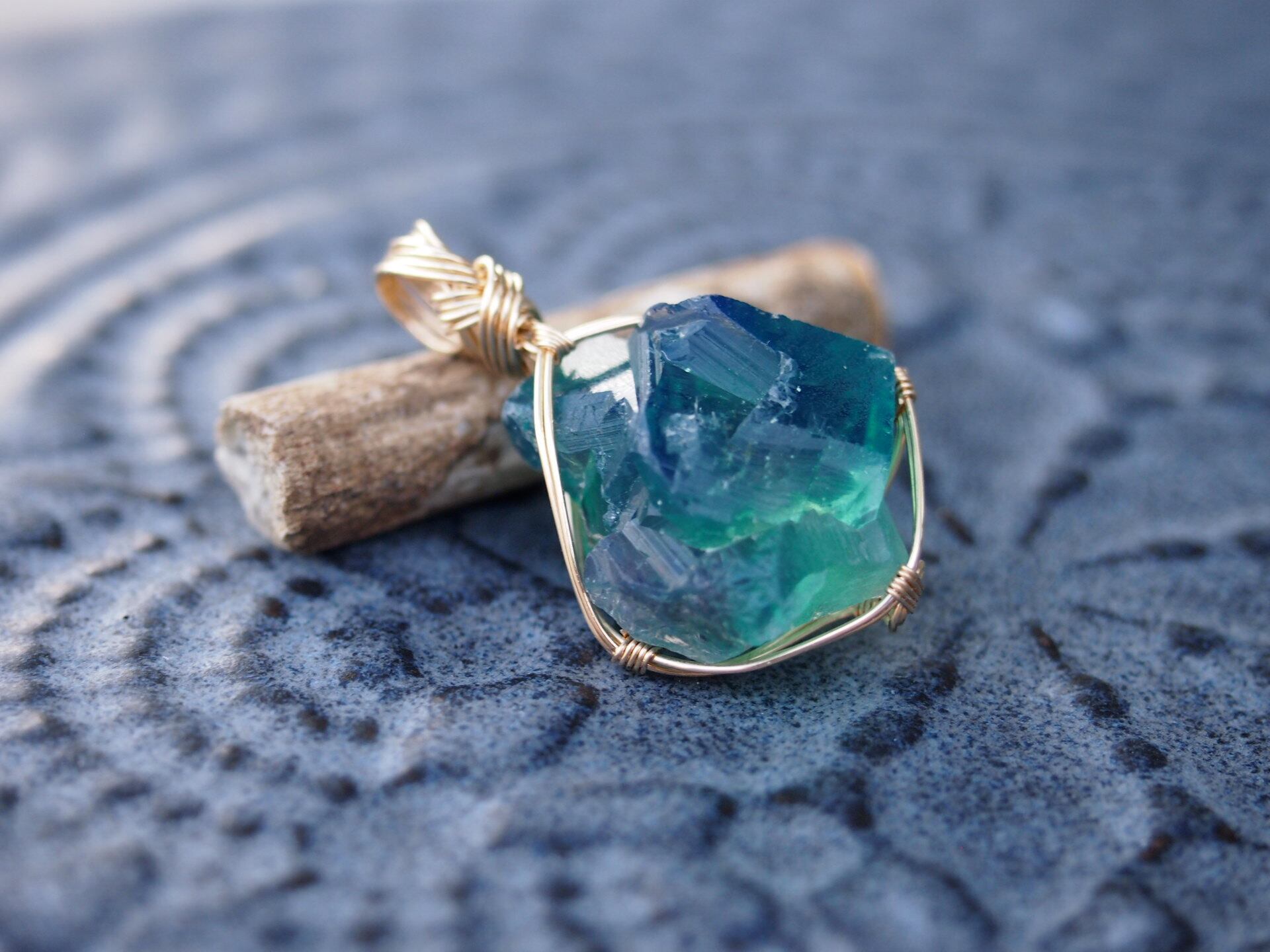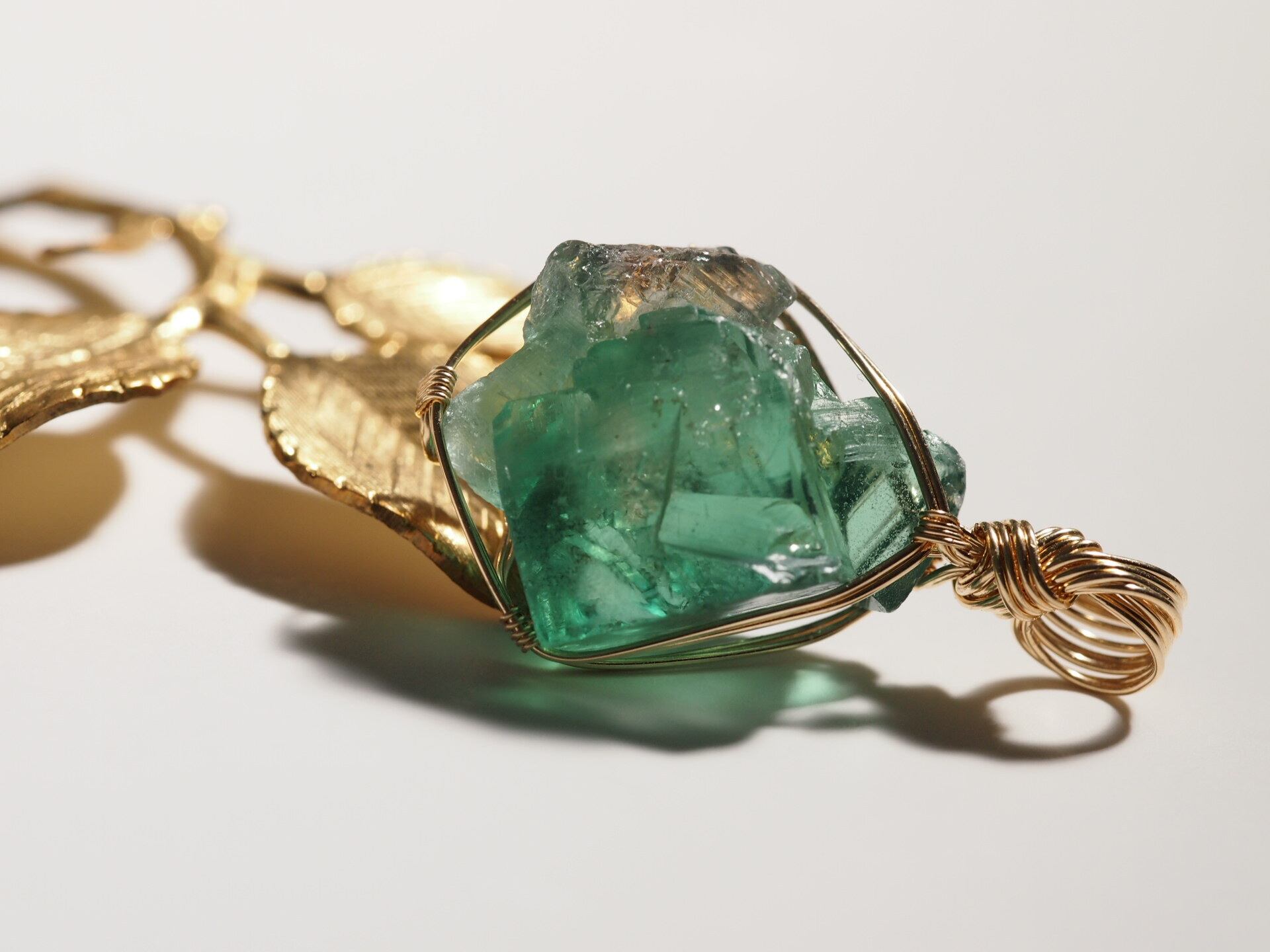 イギリスロジャリー産フローライト原石を14kgfワイヤーで繊細に女神巻きペンダントトップに仕上げました♡
