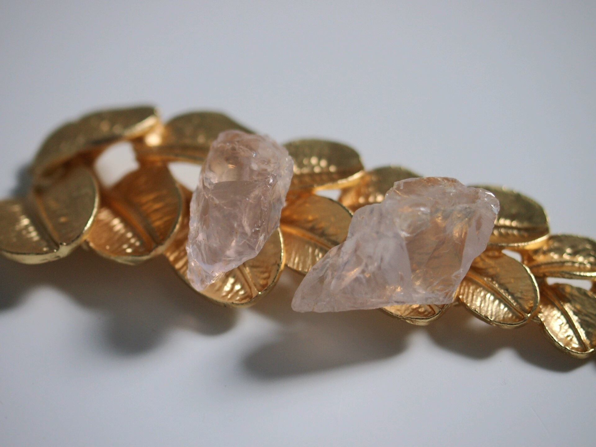 国産のローズクォーツのラフロックで、ピアスを制作しました✧