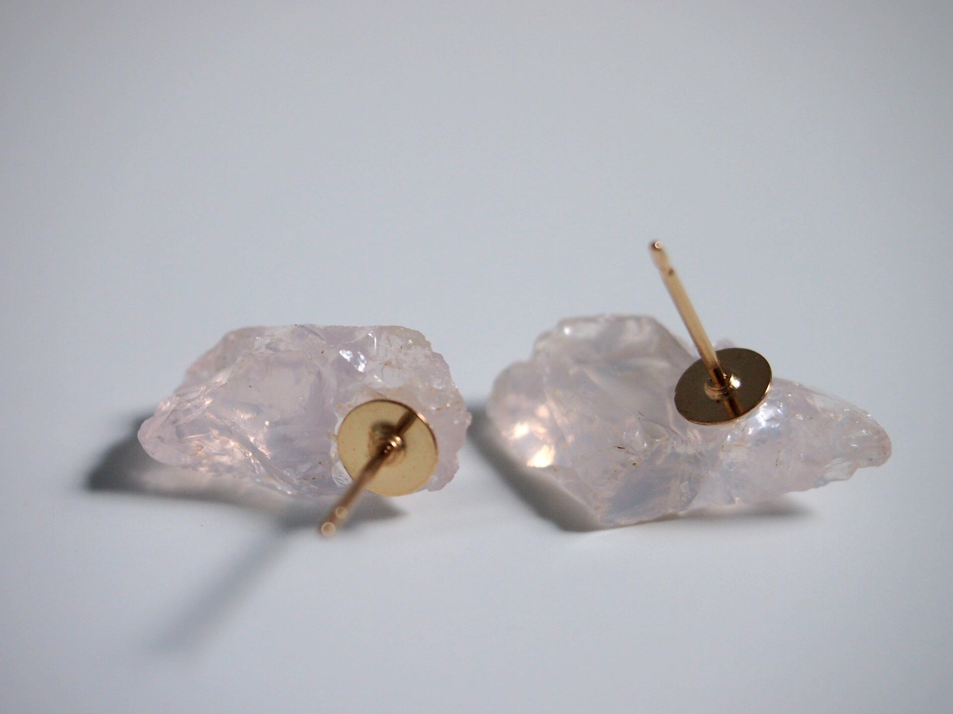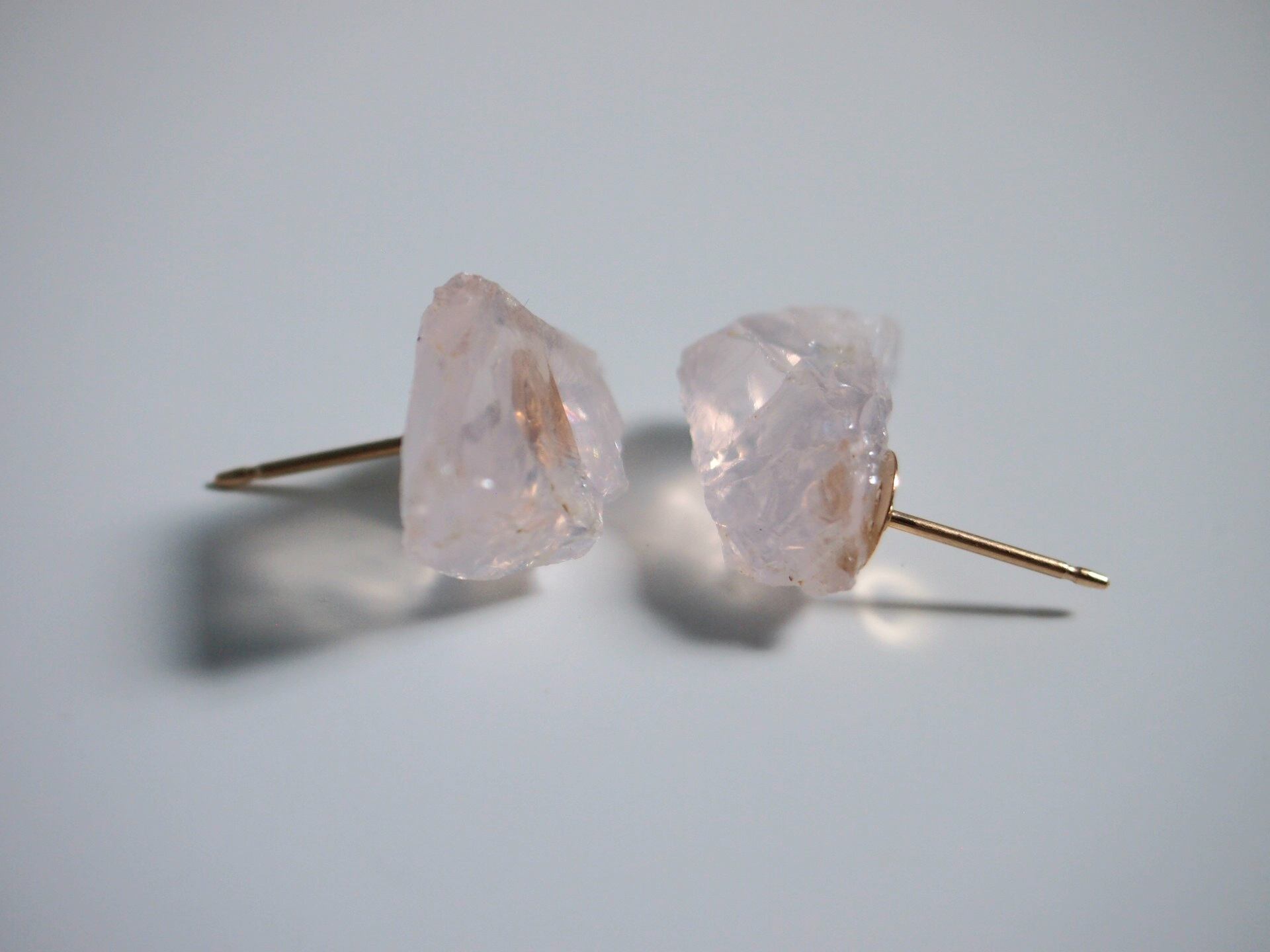 国産ローズクォーツ原石の14kgfピアス