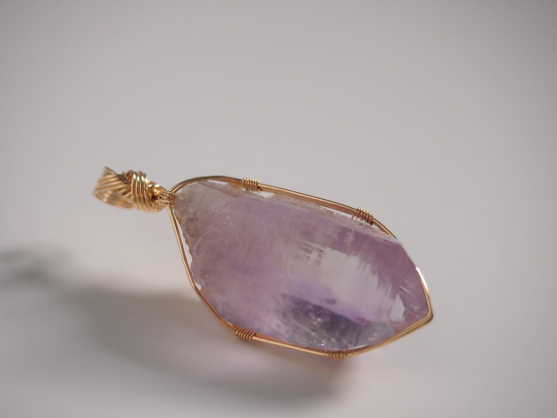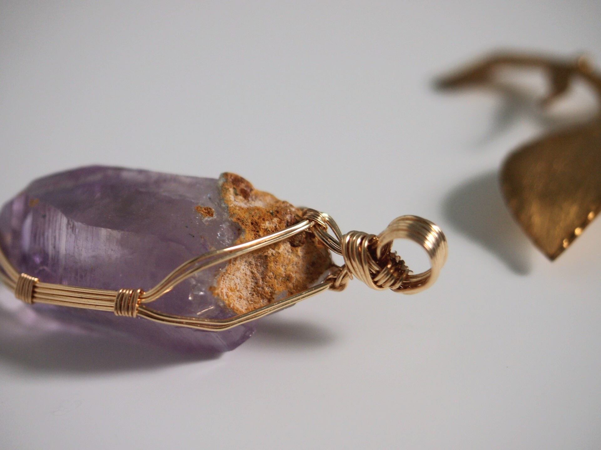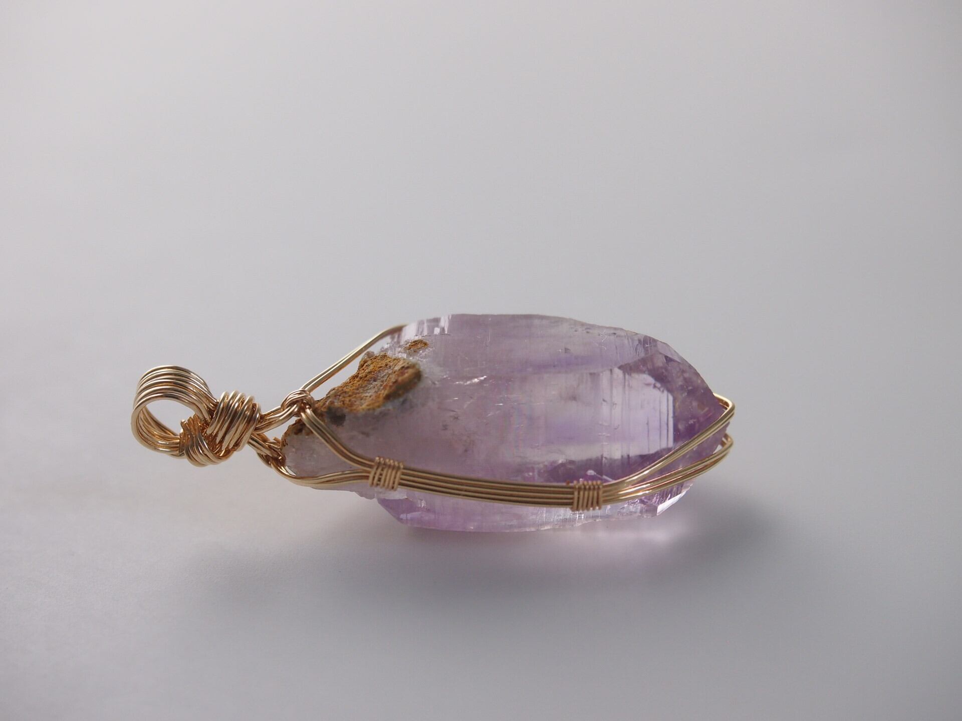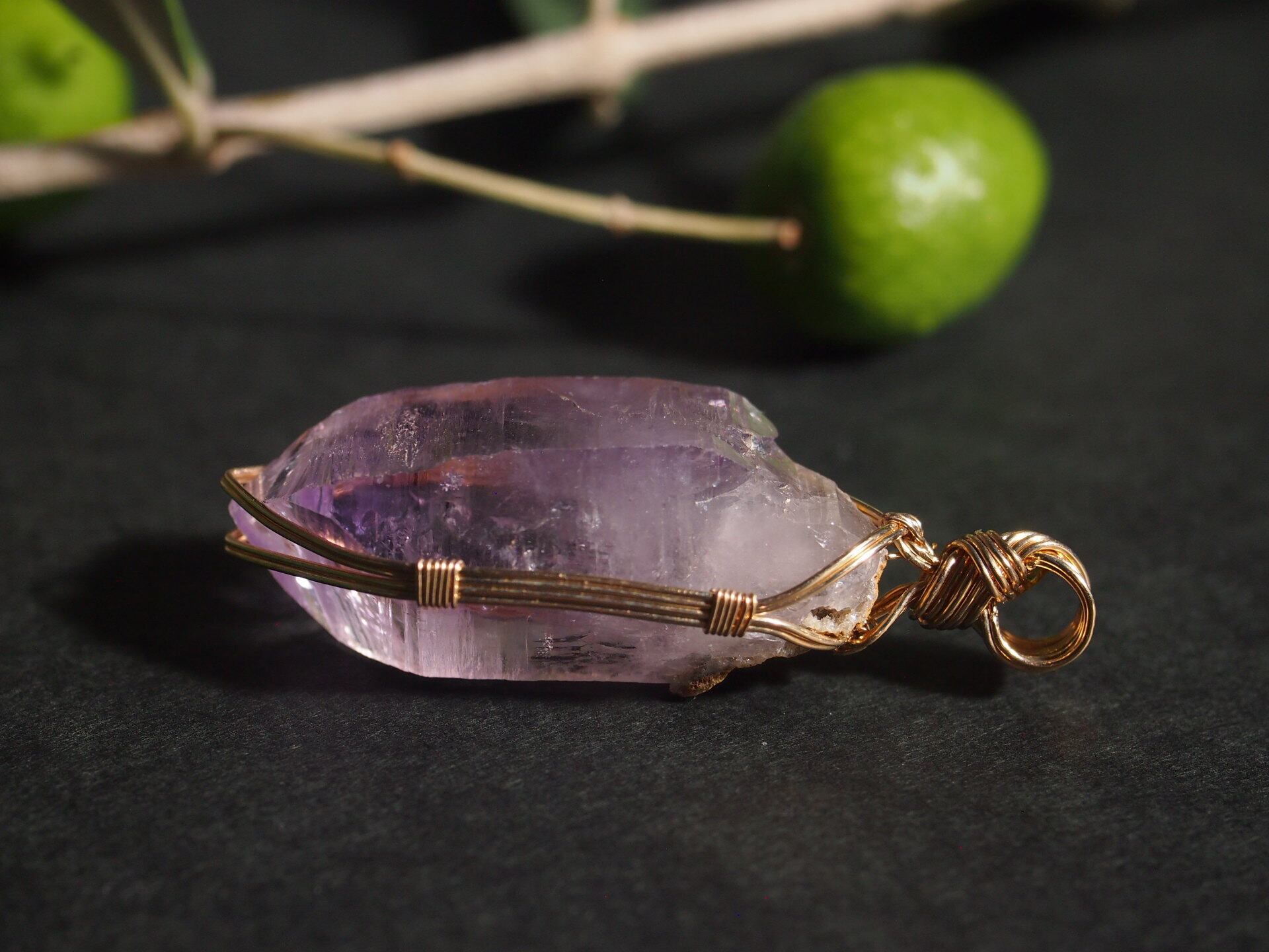 ベラクルスアメジストの原石を14kgfワイヤーで繊細に女神巻き®ペンダントトップに仕上げました♡