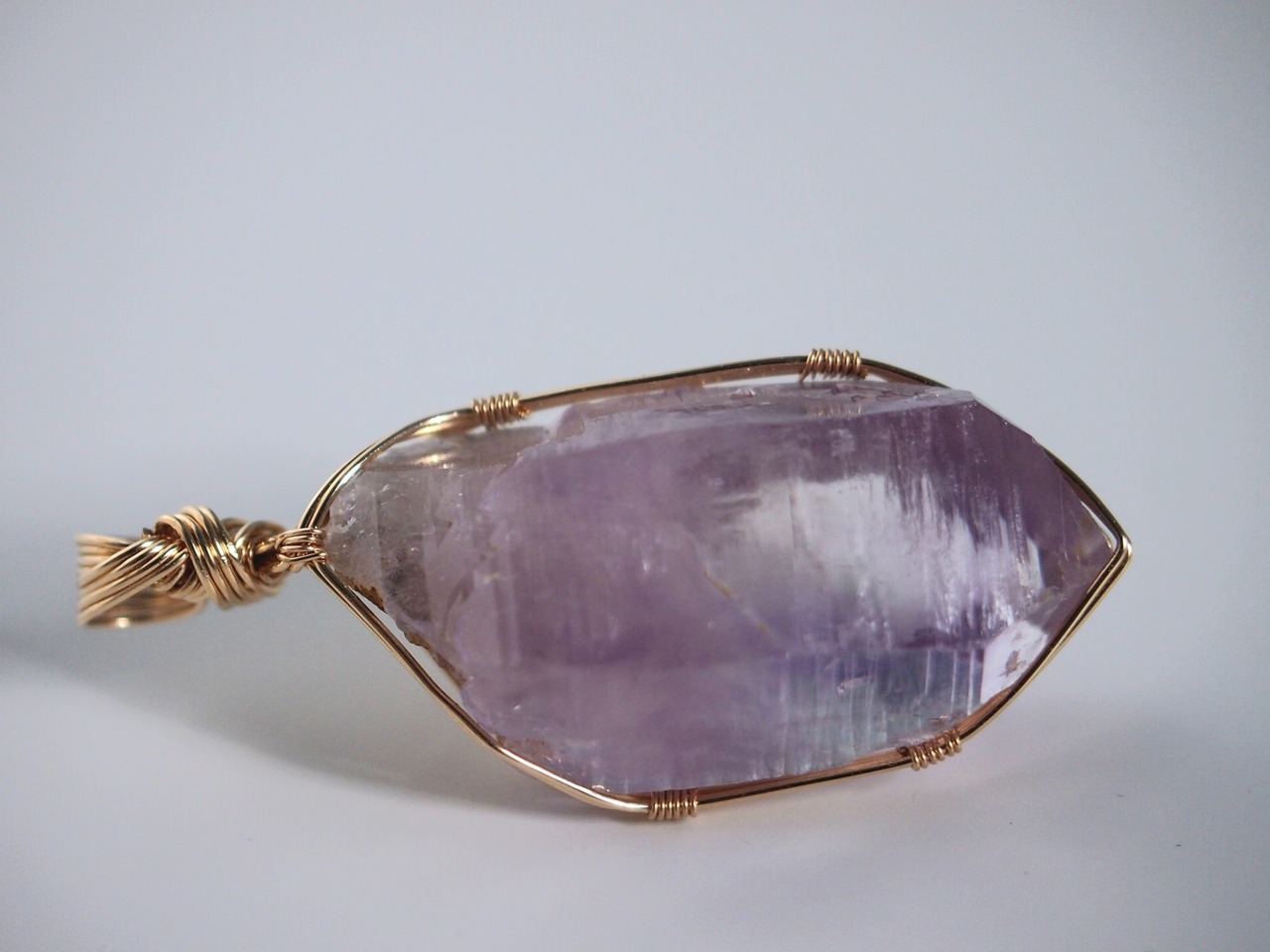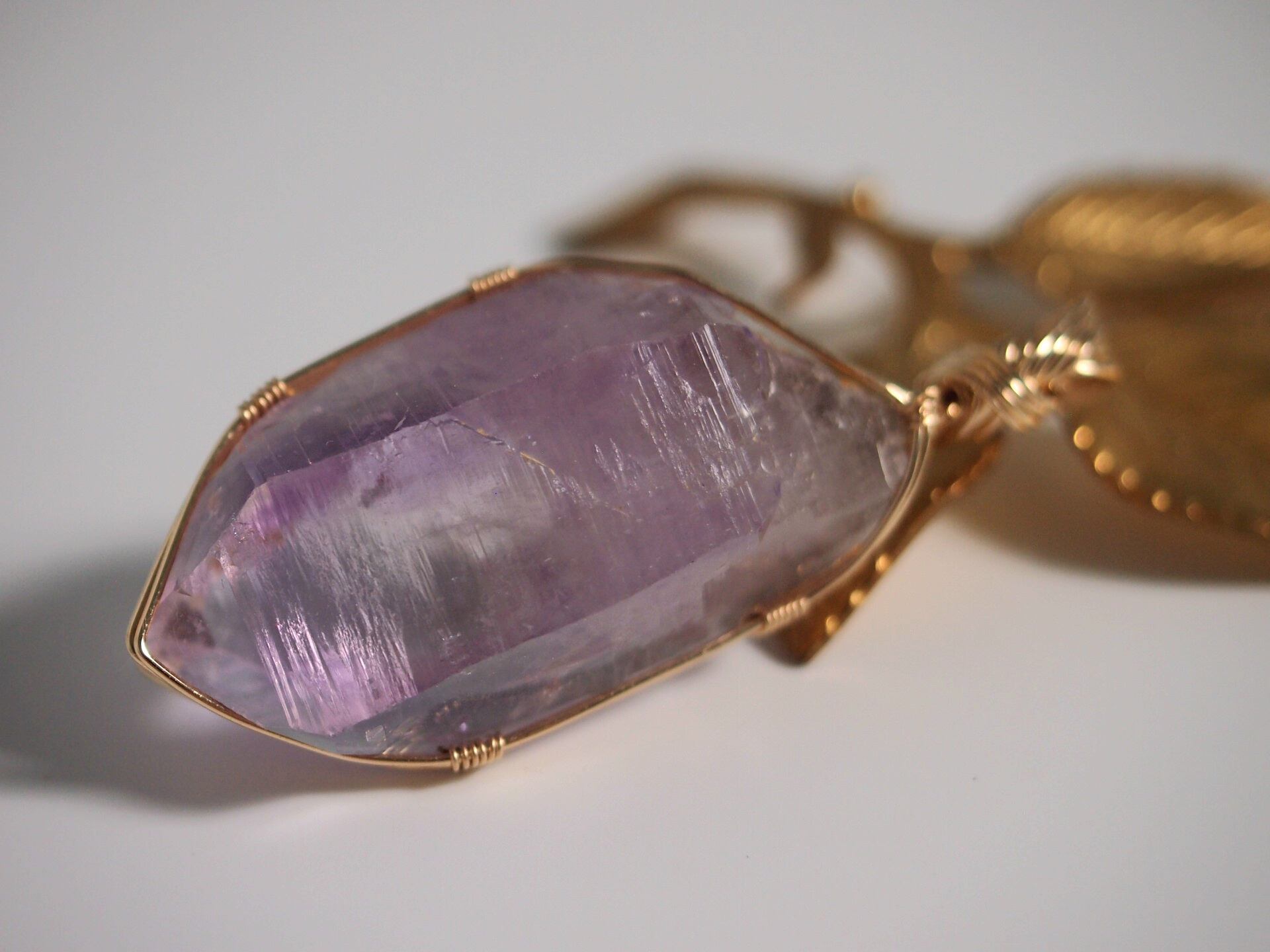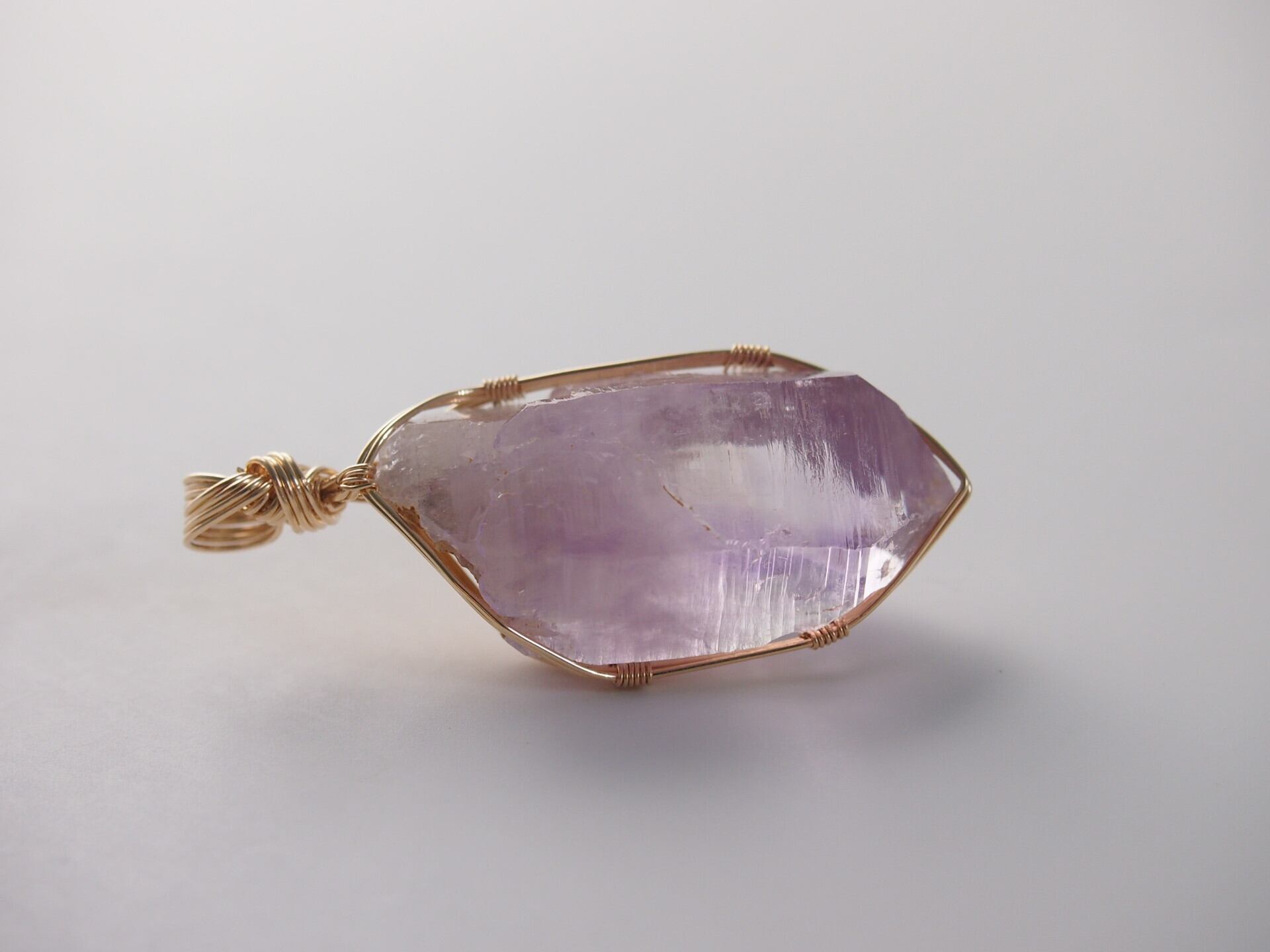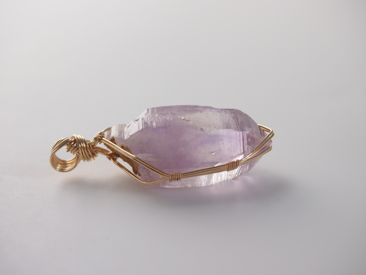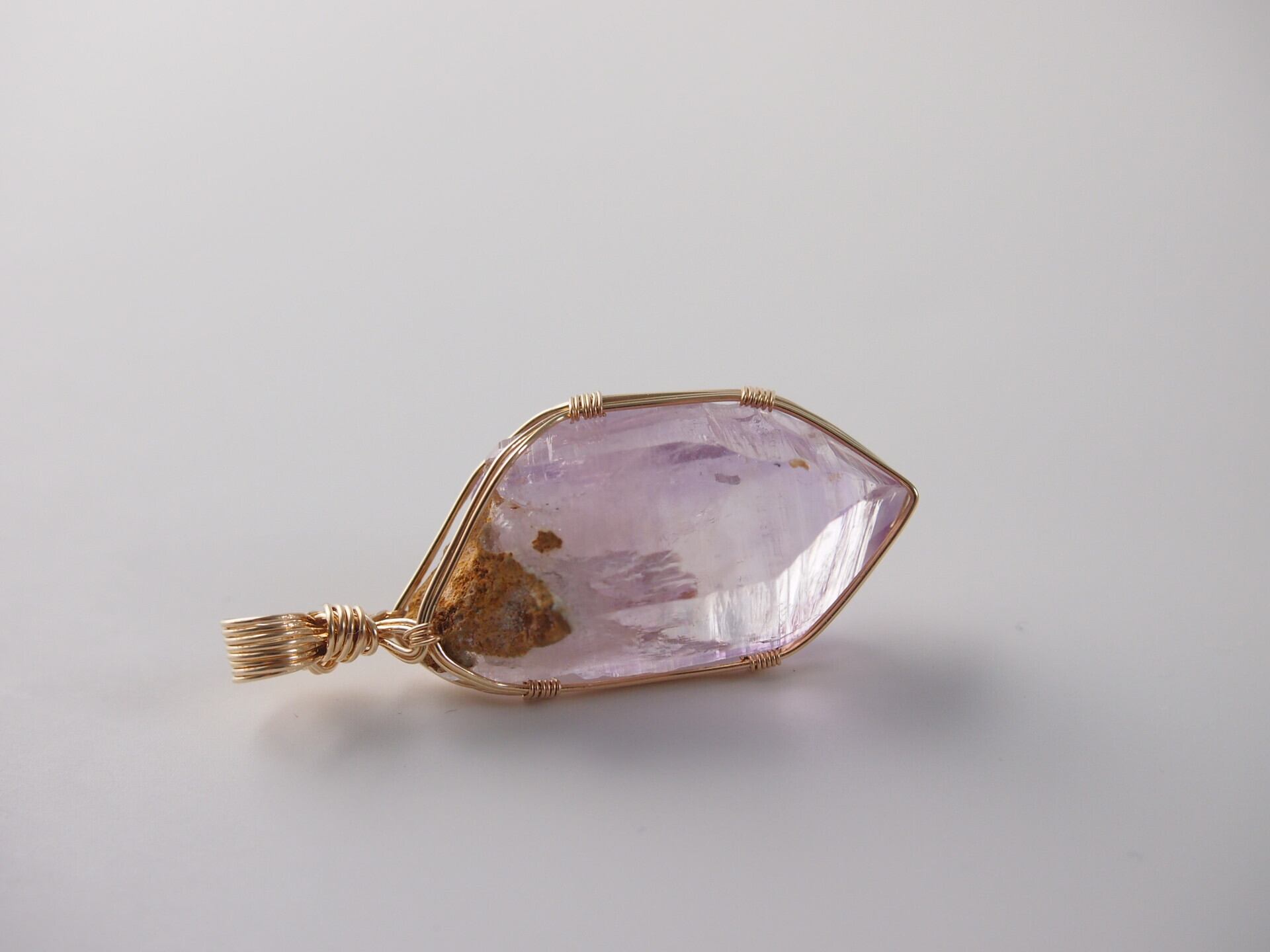 ベラクルスアメジストの原石を14kgfワイヤーで繊細に女神巻き®ペンダントトップに仕上げました♡