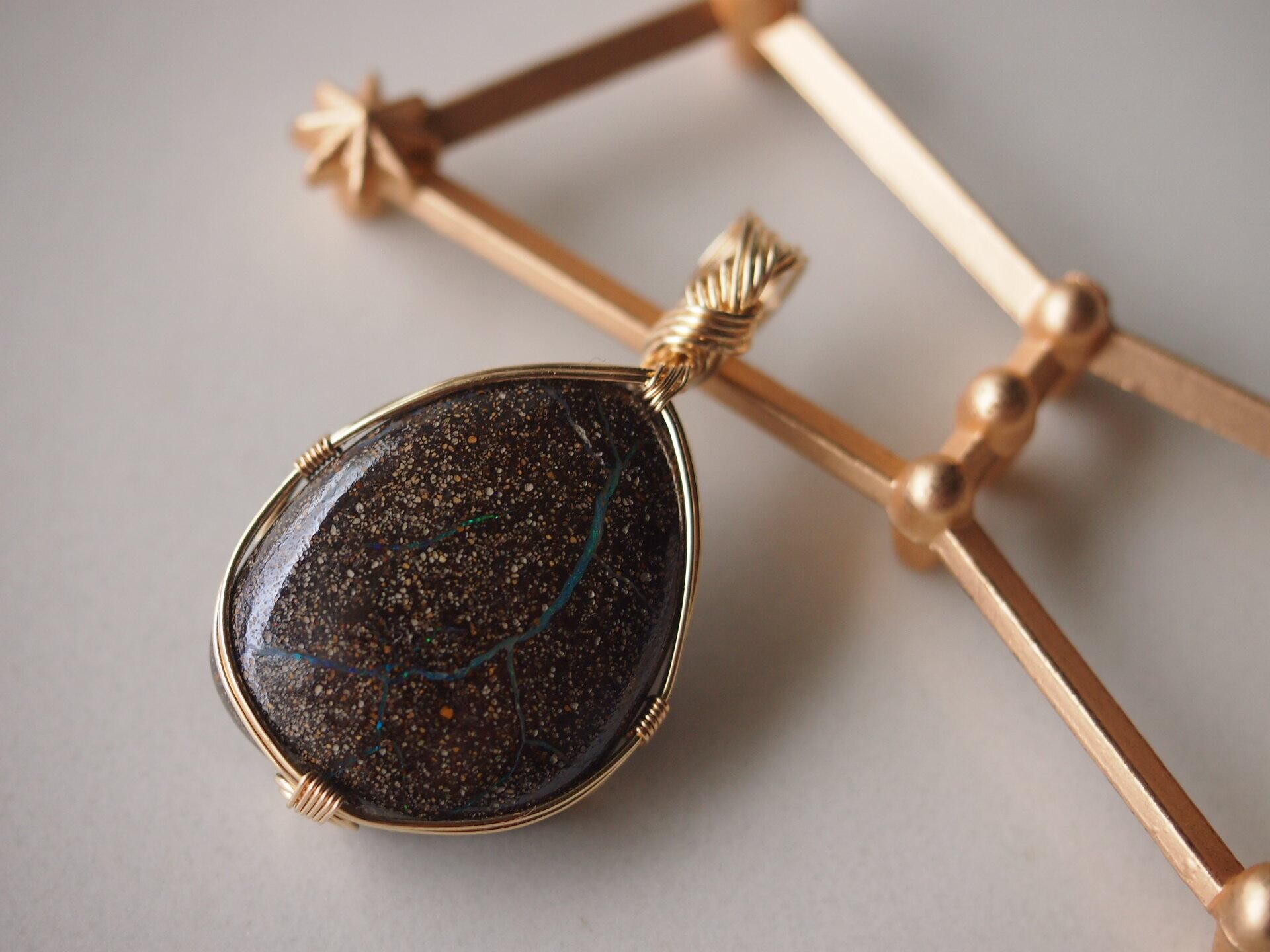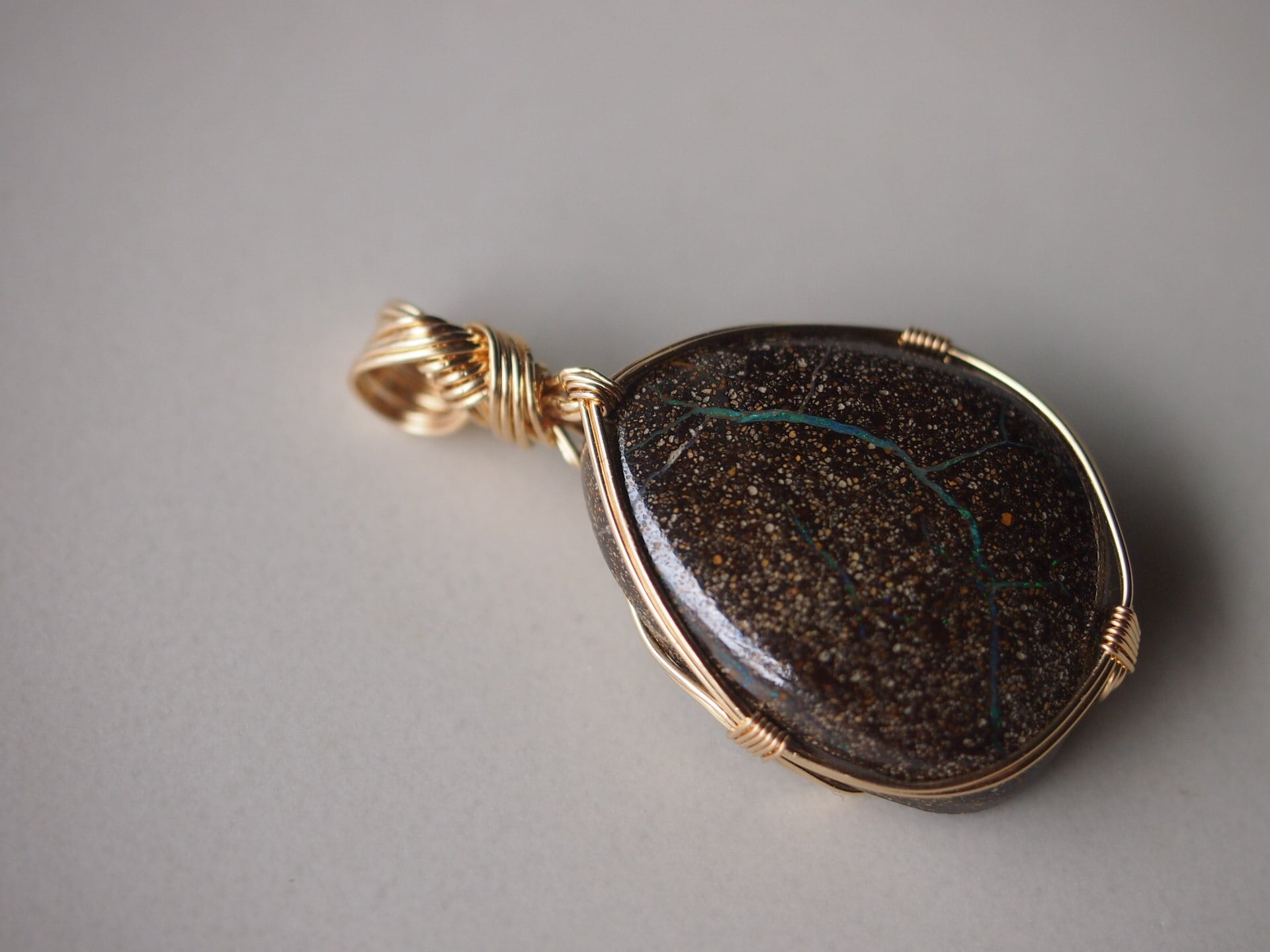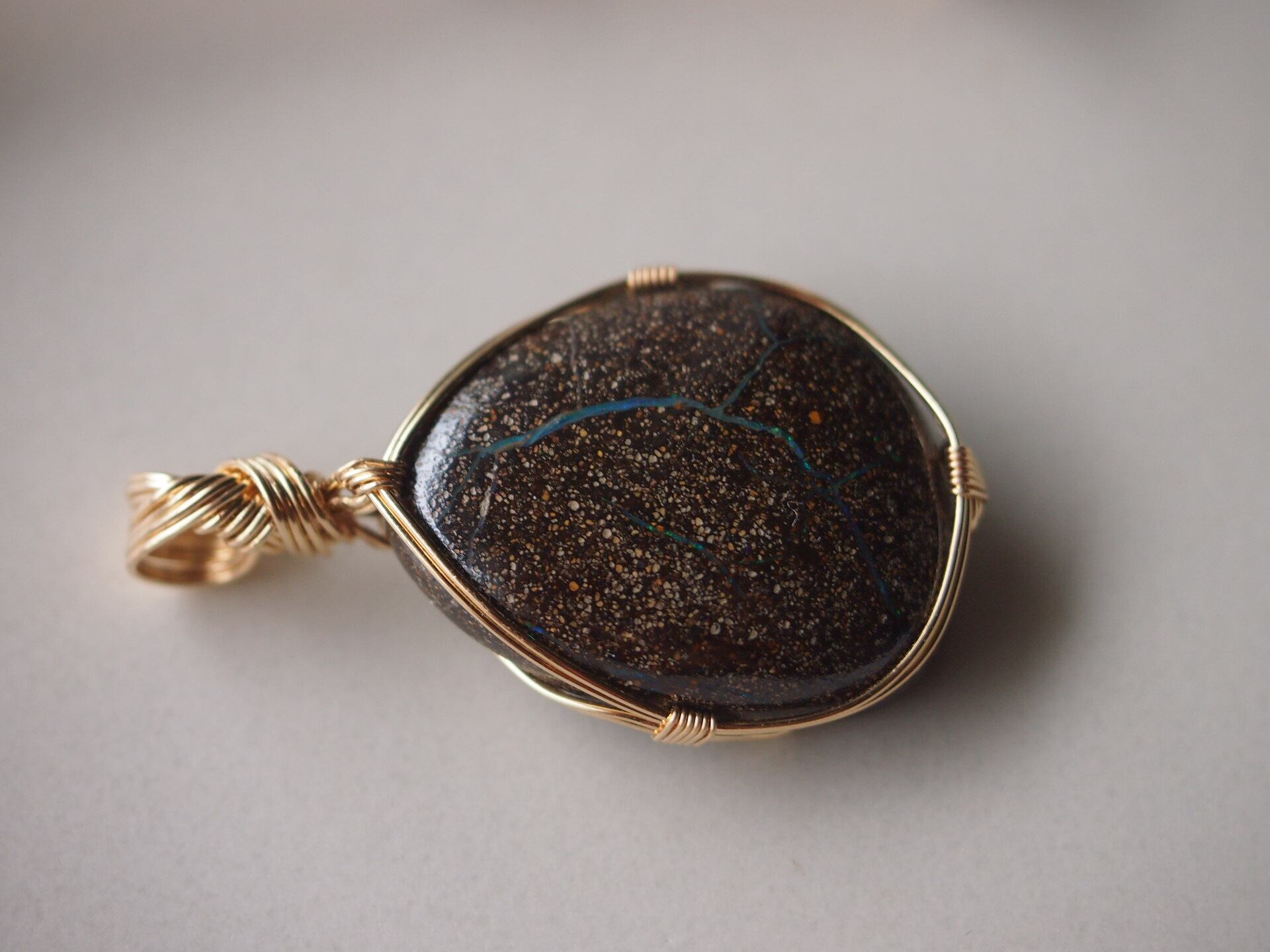 ボルダーオパールを14kgfワイヤーで繊細に女神巻き®ペンダントトップに仕上げました♡