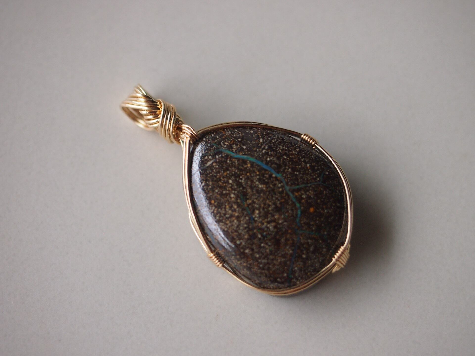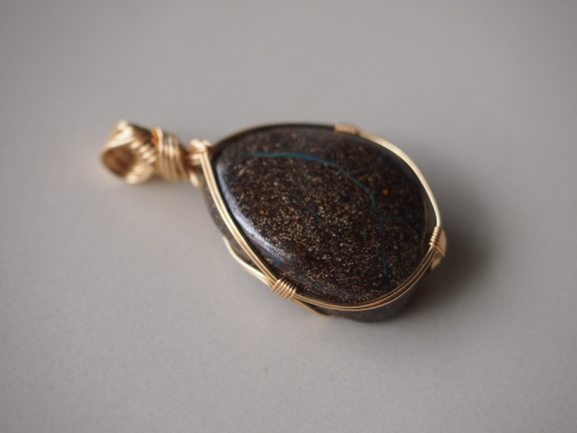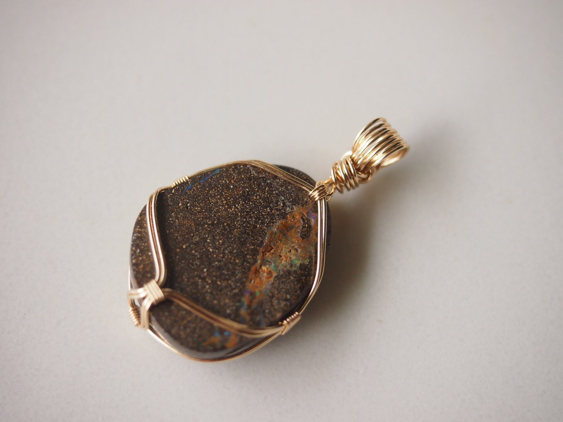 ボルダーオパールを14kgfワイヤーで繊細に女神巻き®ペンダントトップに仕上げました♡