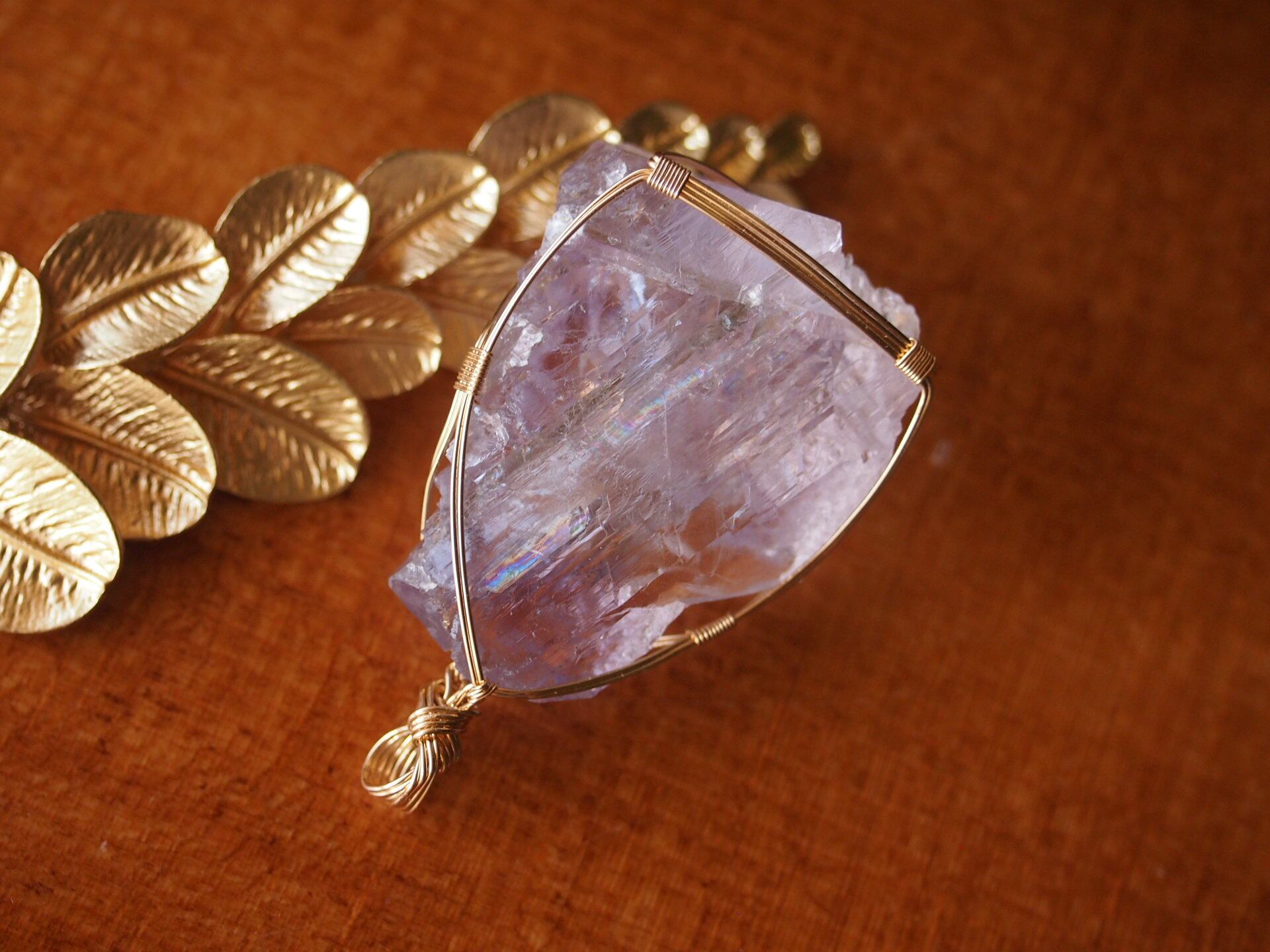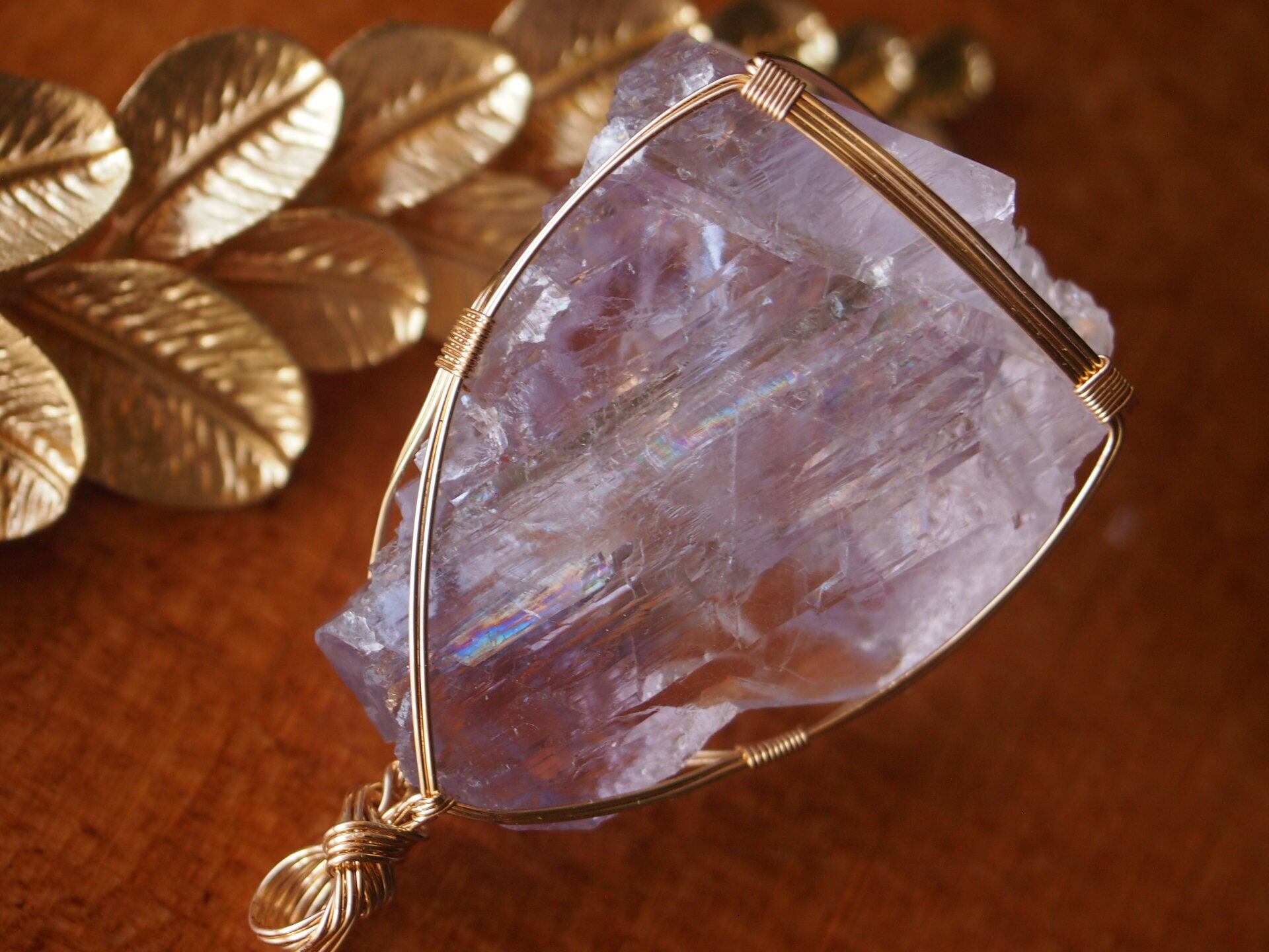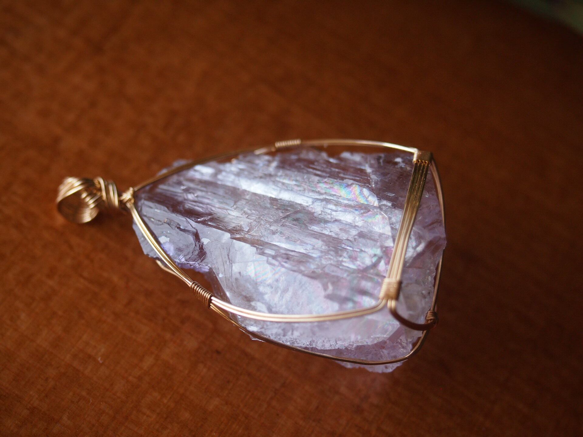 スペイン産のフローライトの原石を14kgfワイヤーで繊細に女神巻き®ペンダントトップに仕上げました♡