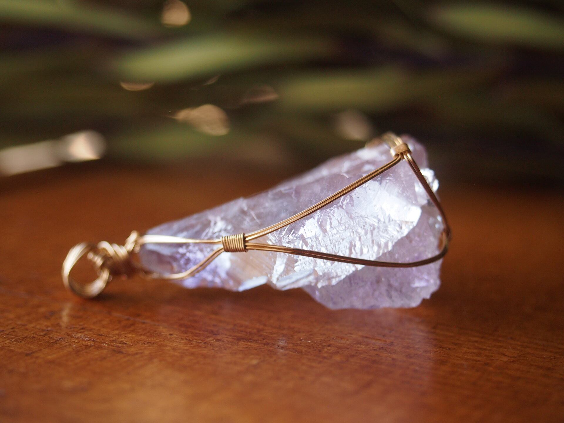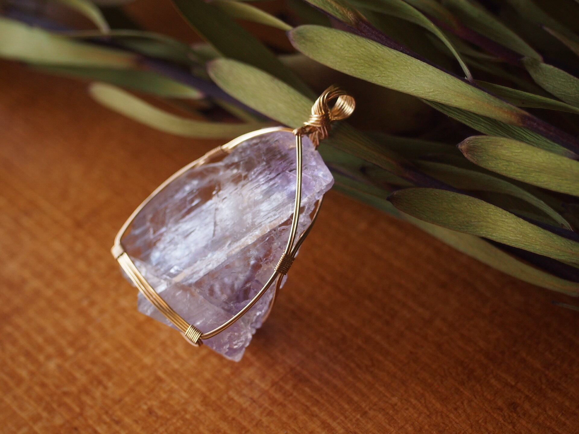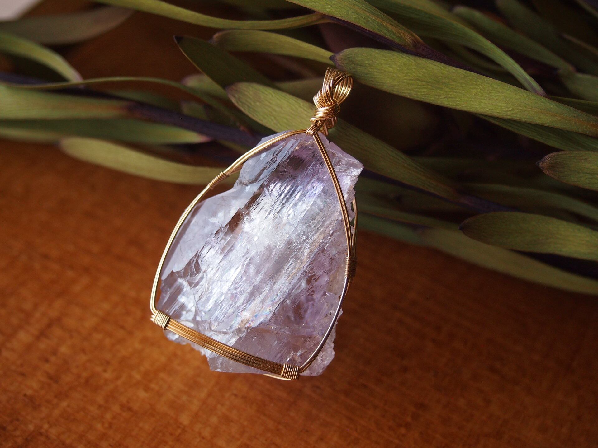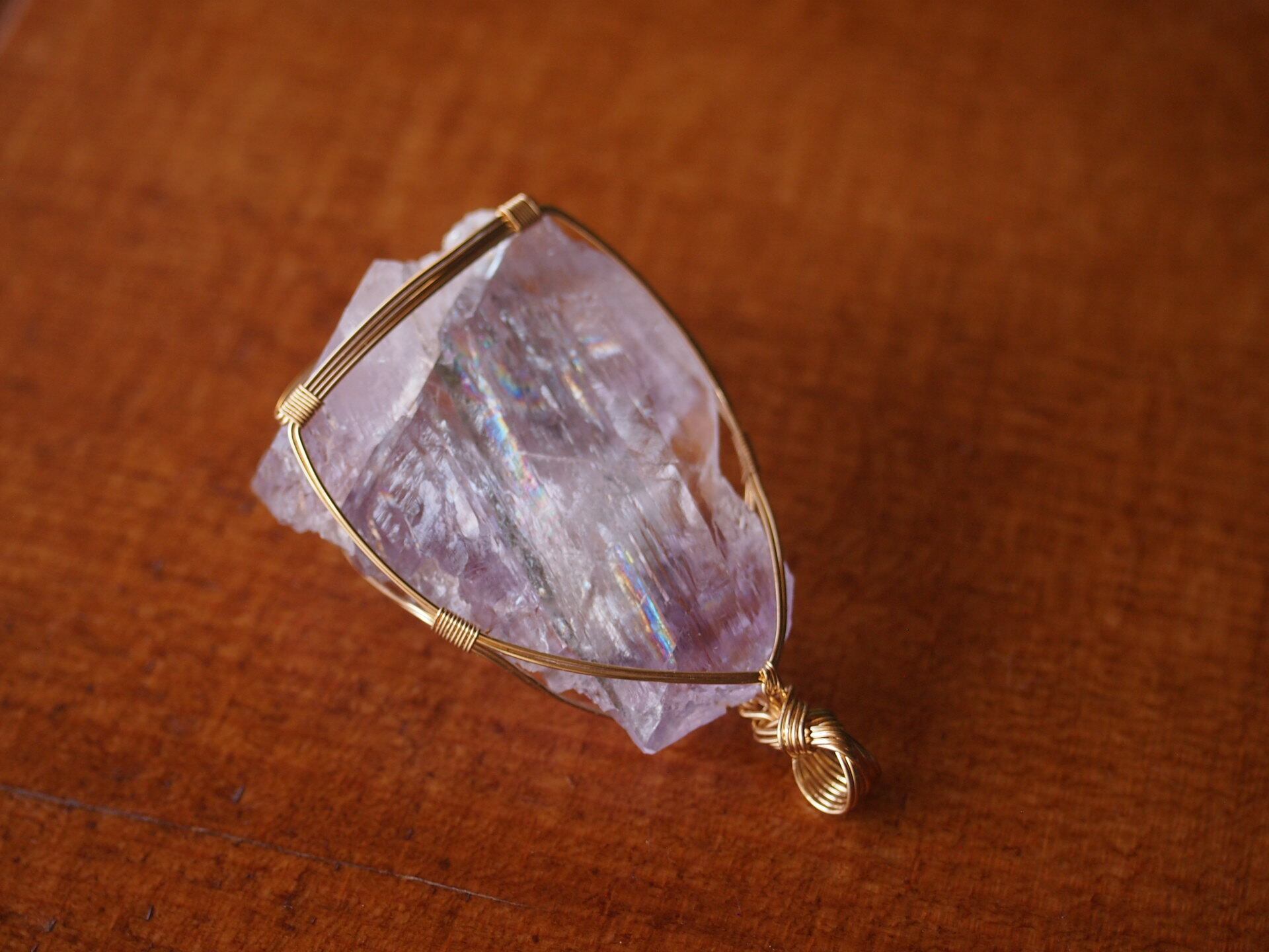 スペイン産のフローライトの原石を14kgfワイヤーで繊細に女神巻き®ペンダントトップに仕上げました♡