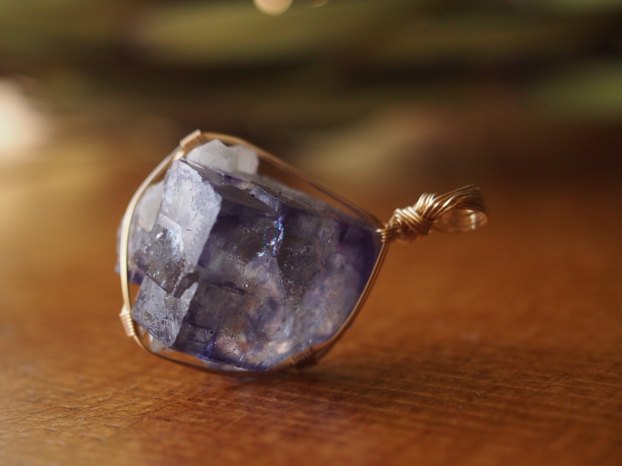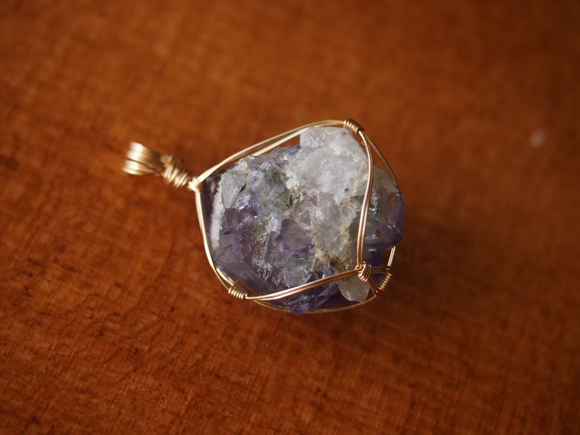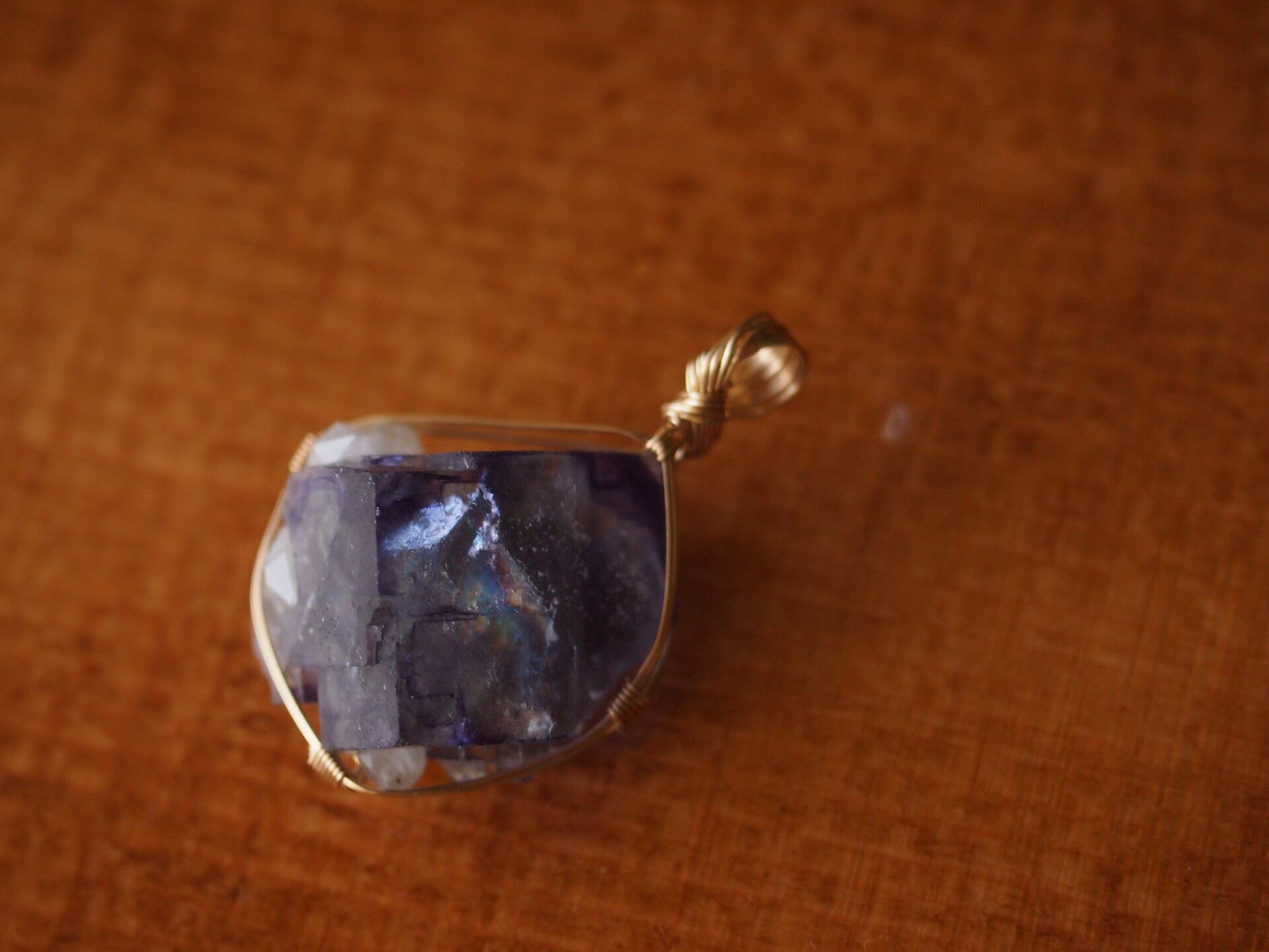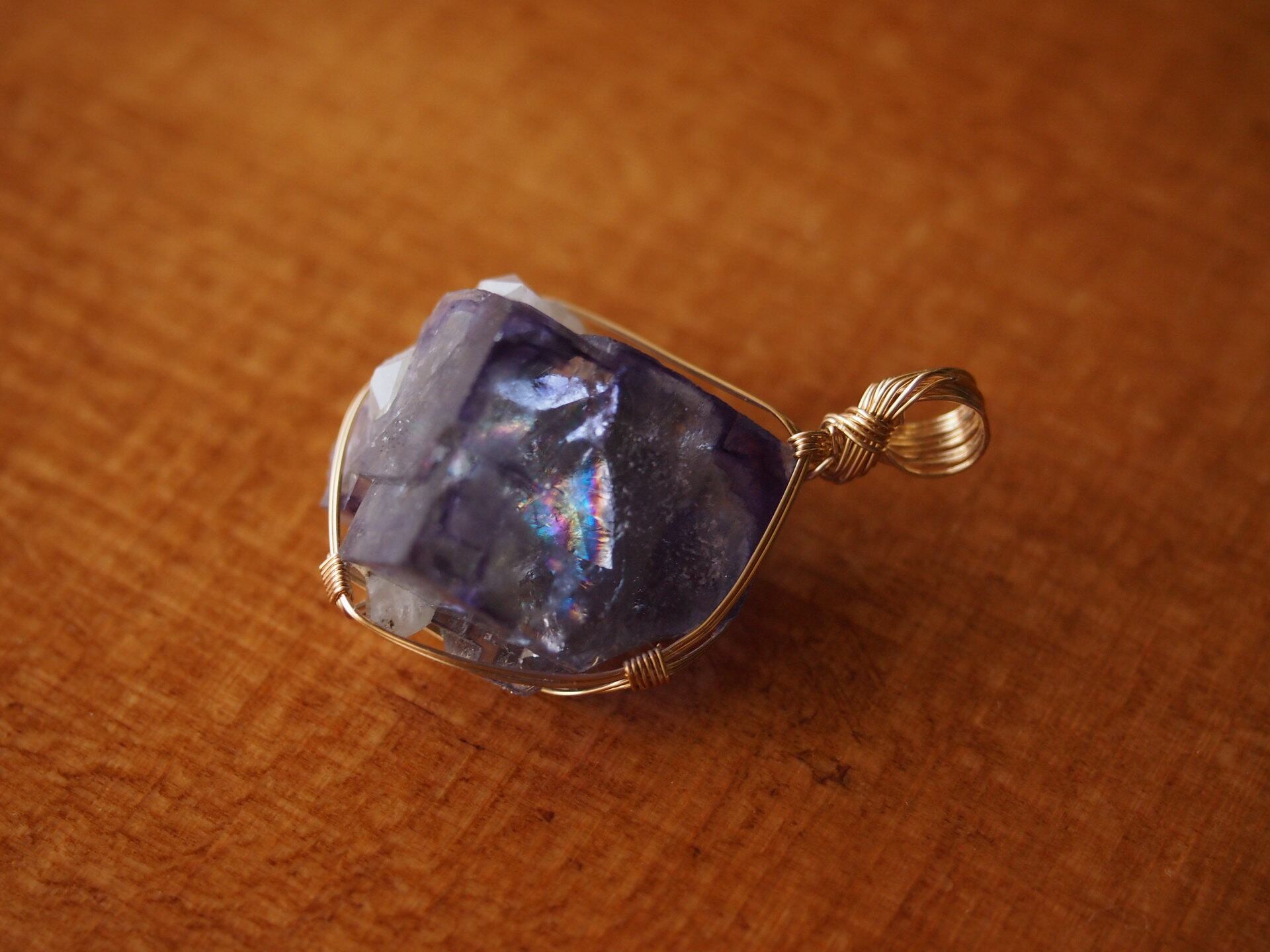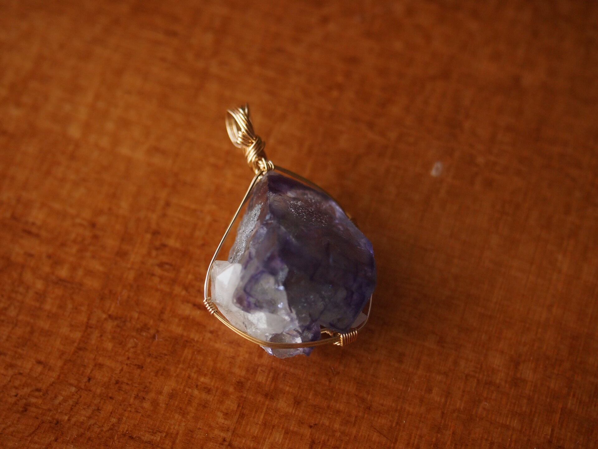 中国ヤオガンシャン鉱山産のフローライトの原石を14kgfワイヤーで繊細に女神巻き®ペンダントトップに仕上げました♡