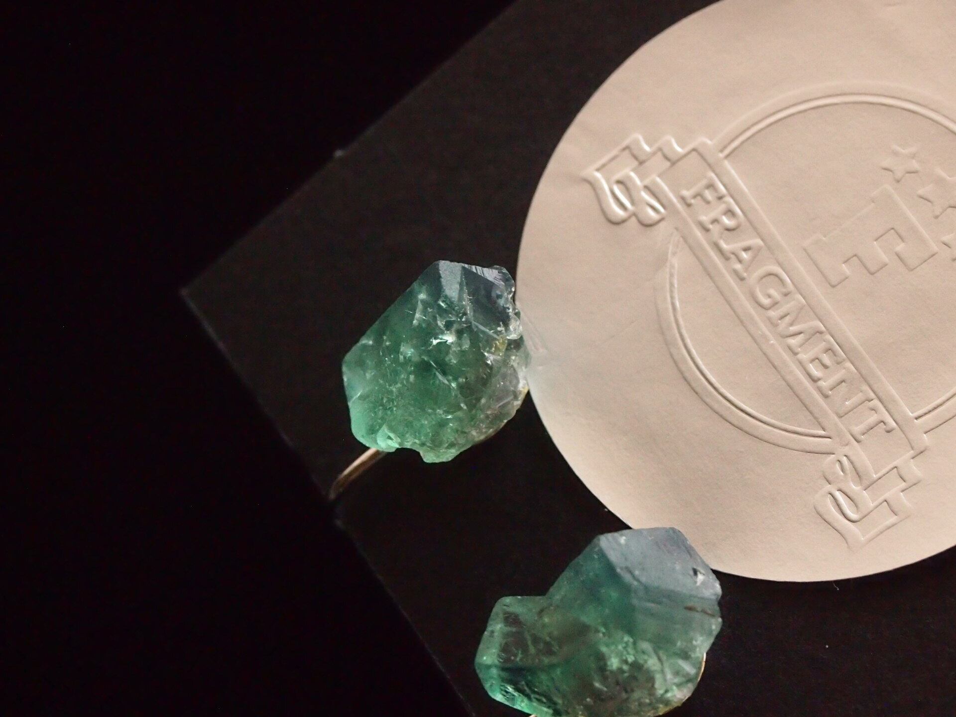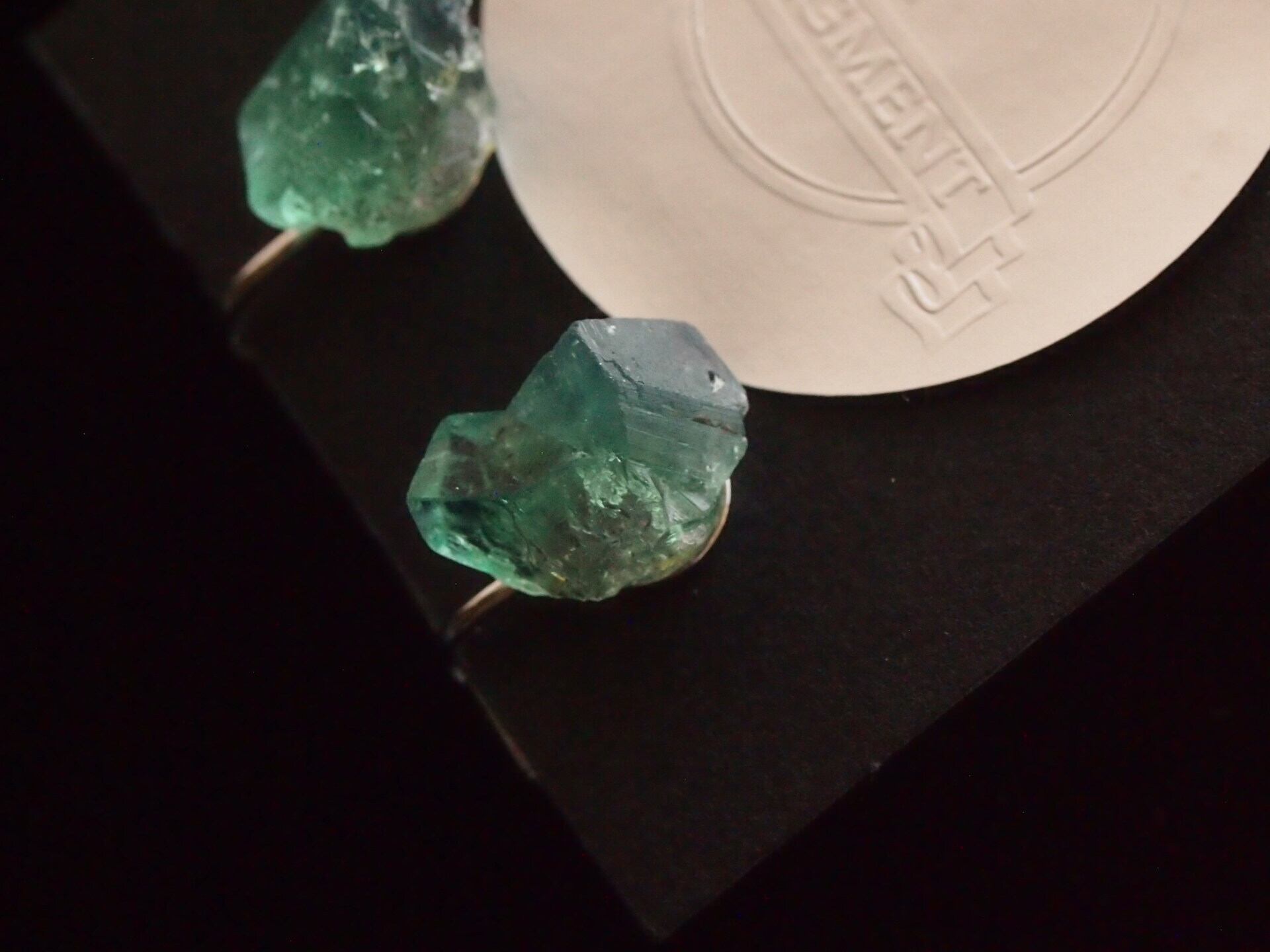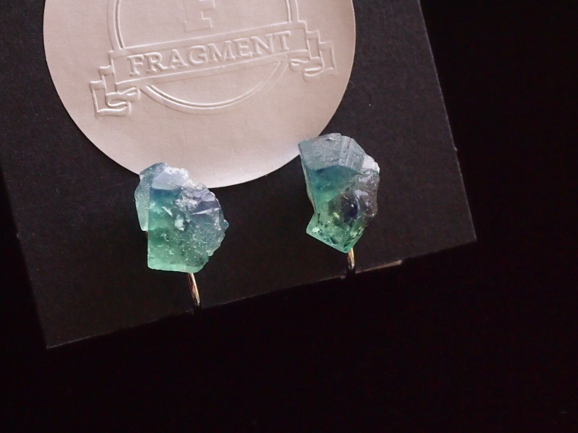 強蛍光でよく知られるイギリスのロジャリー鉱山のフローライトの結晶で、イヤリングを制作しました✧