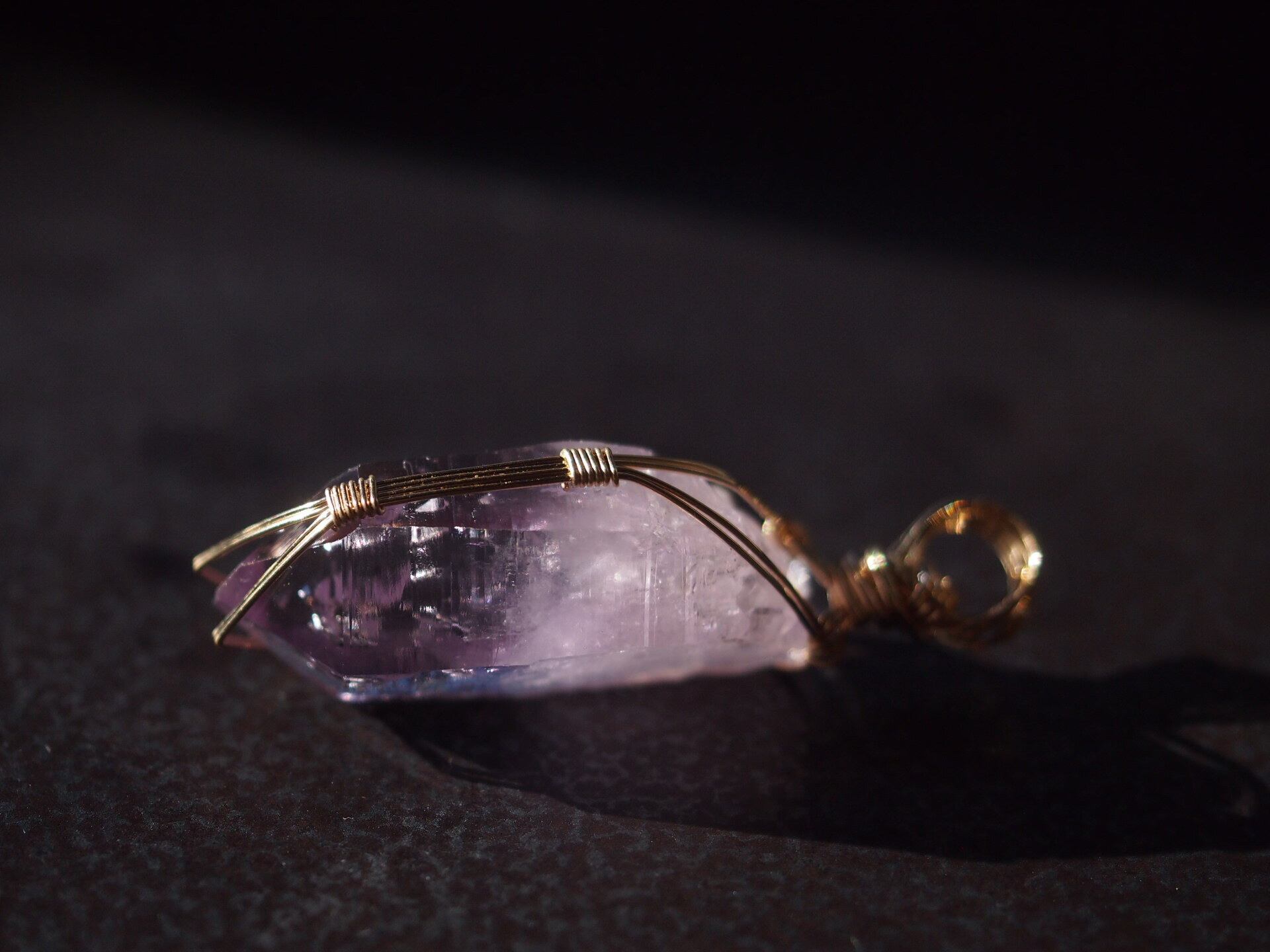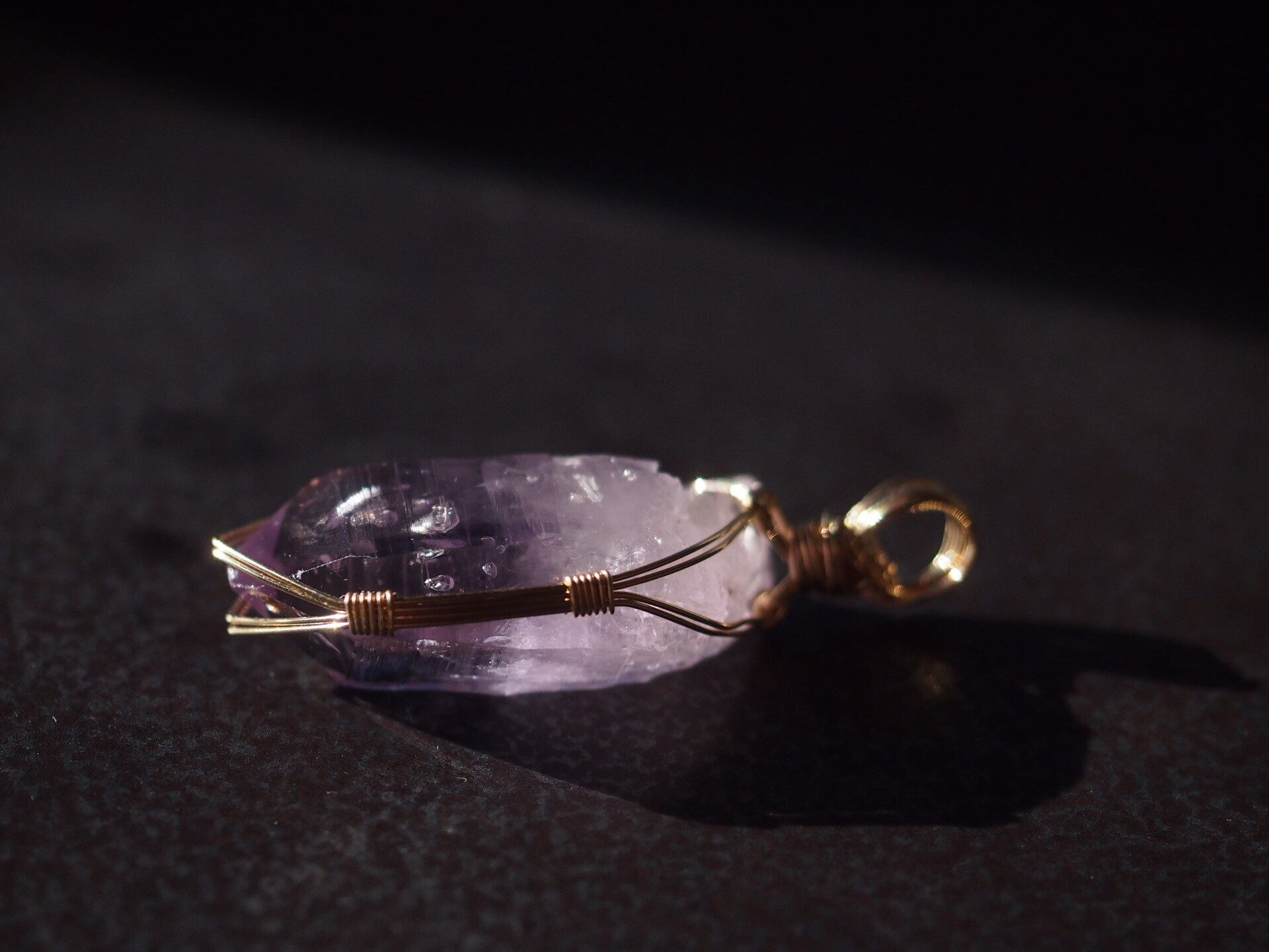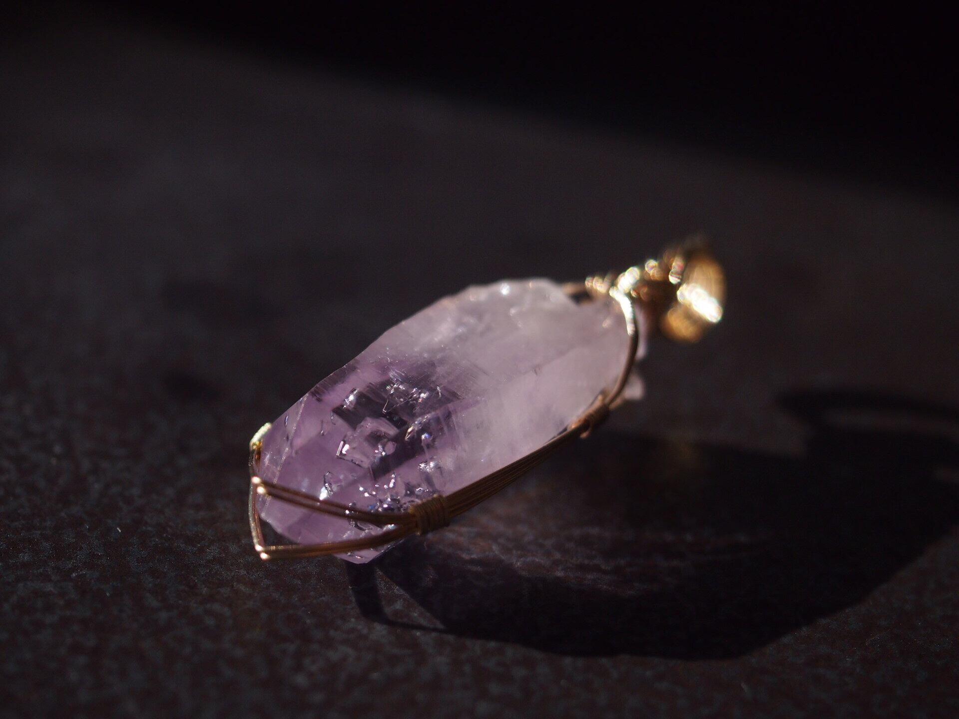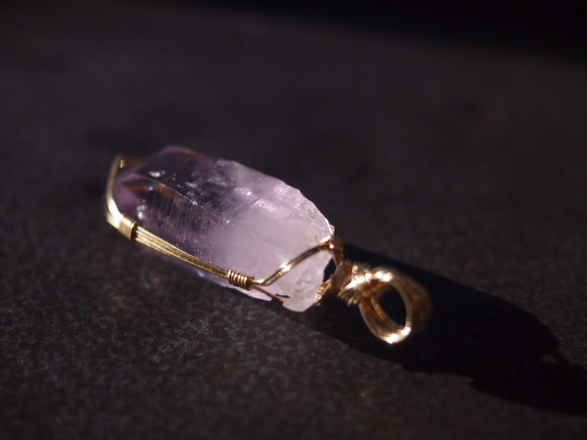 ベラクルスアメジストの原石を14kgfワイヤーで繊細に女神巻き®ペンダントトップに仕上げました♡