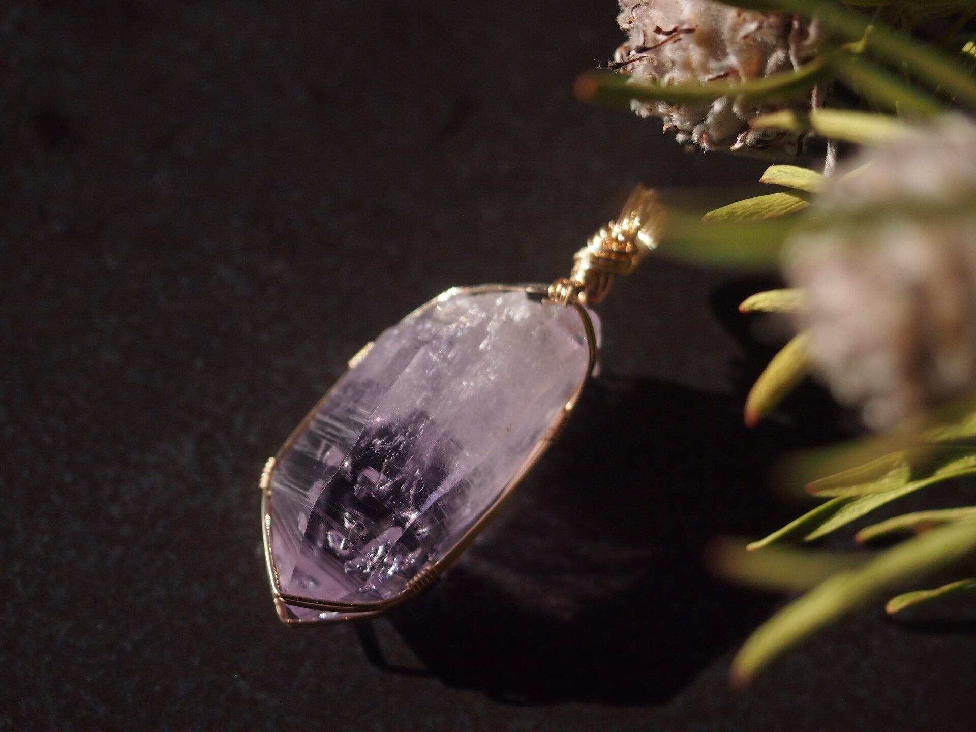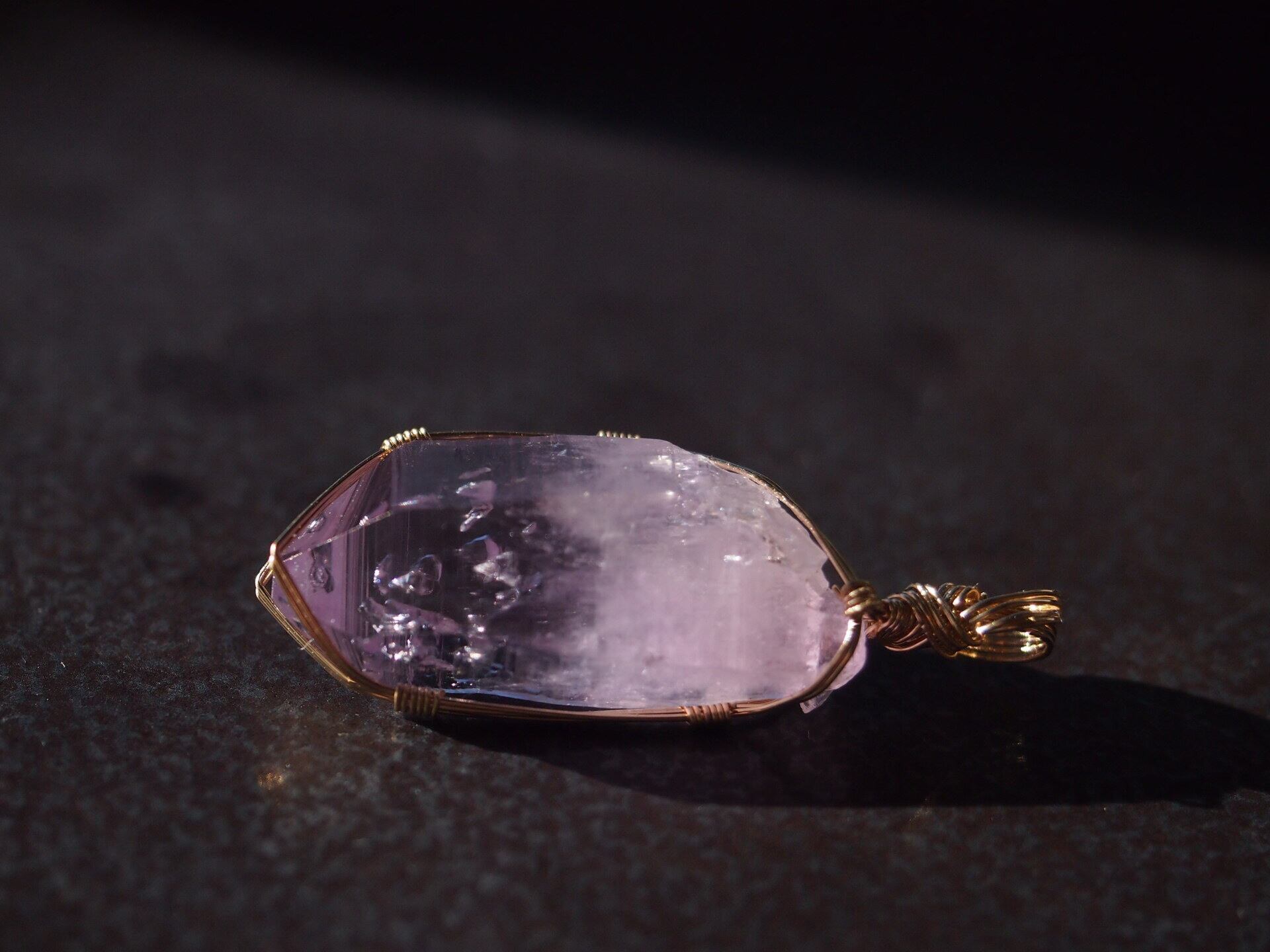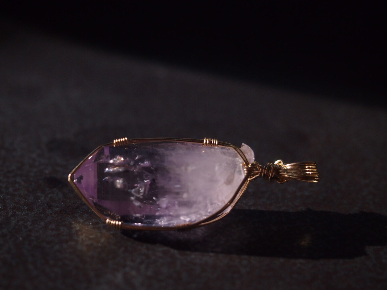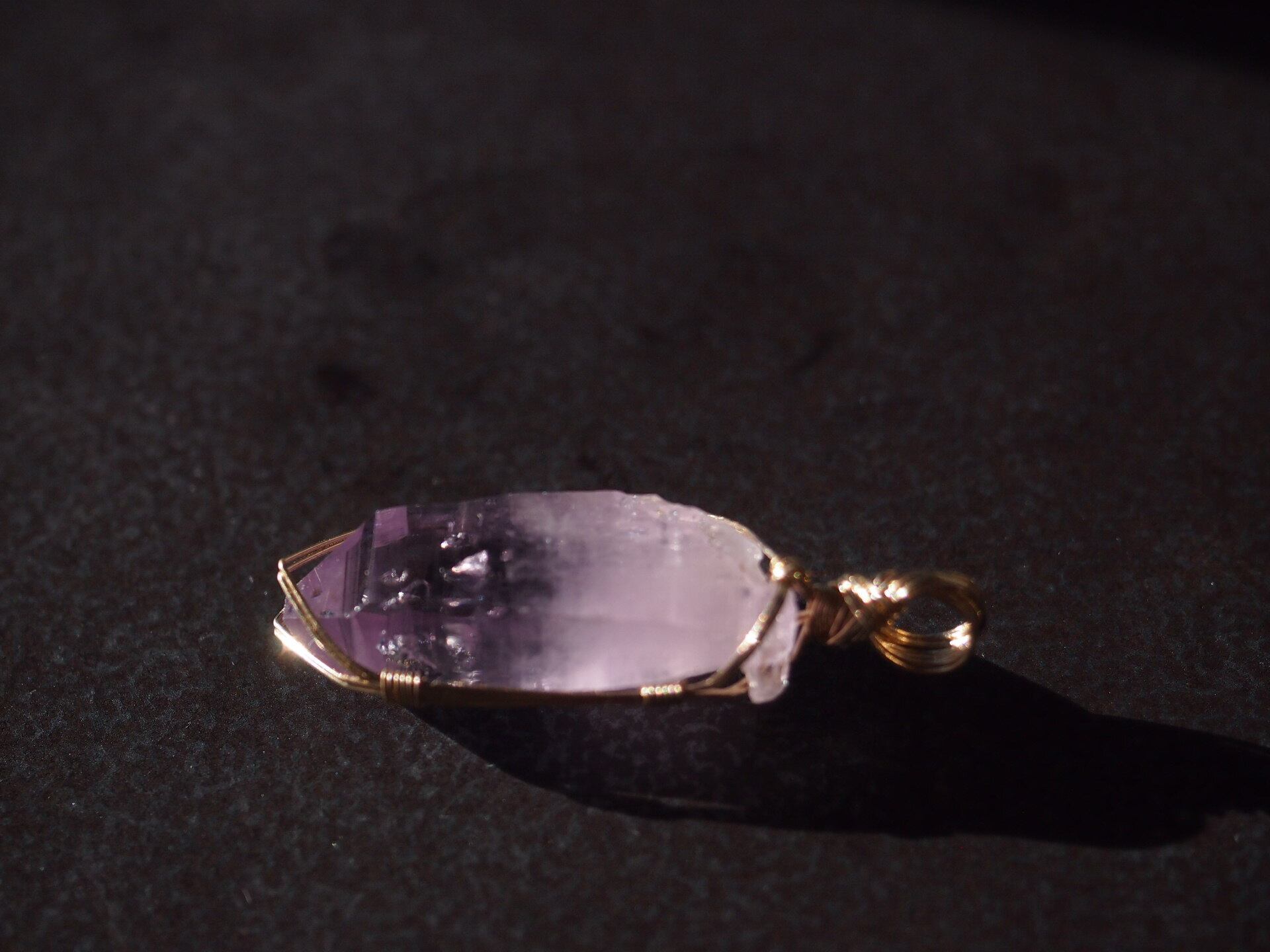 ベラクルスアメジストの原石を14kgfワイヤーで繊細に女神巻き®ペンダントトップに仕上げました♡