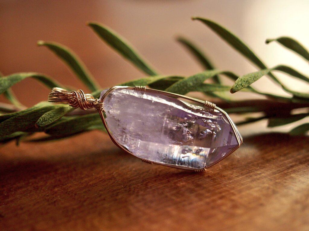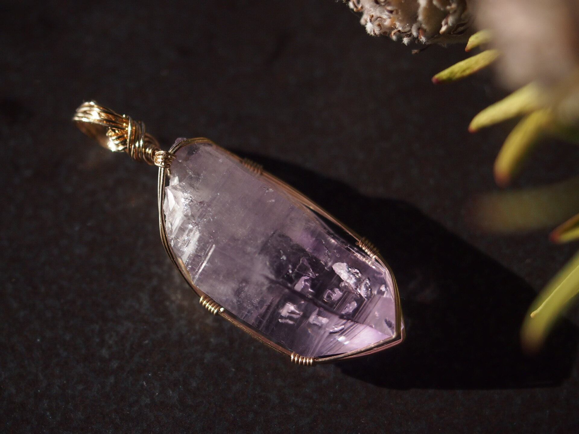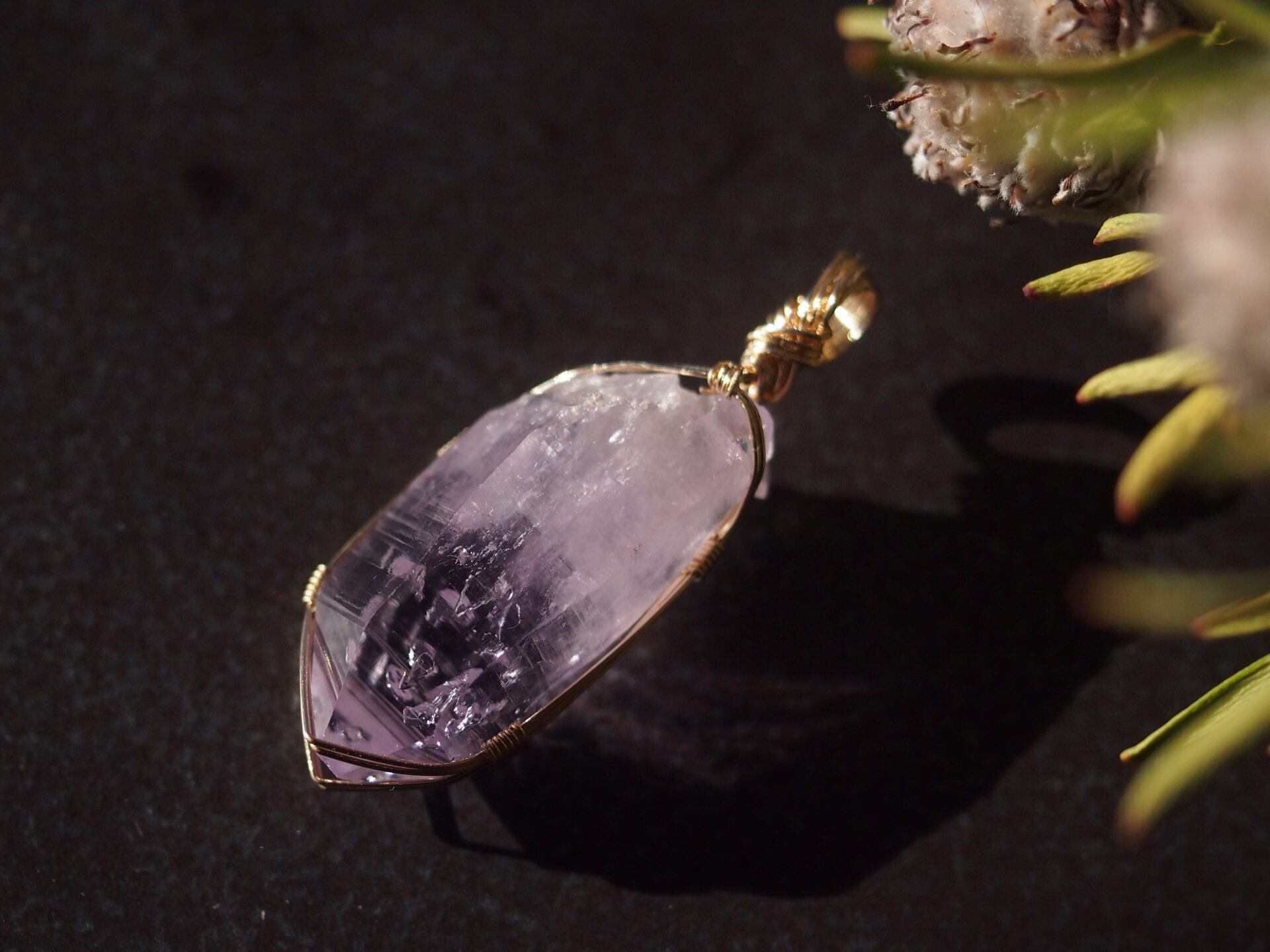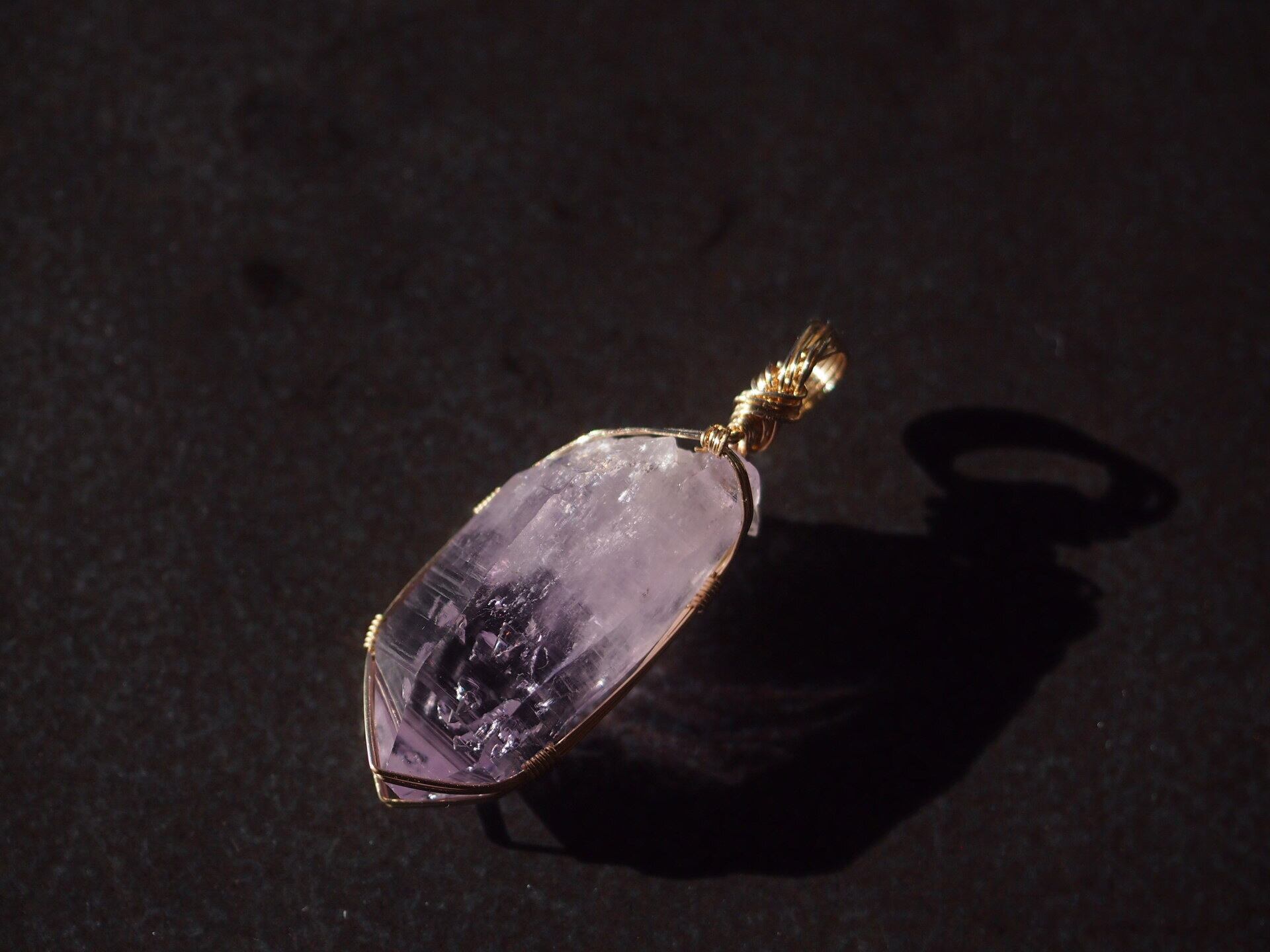 ベラクルスアメジストの原石を14kgfワイヤーで繊細に女神巻き®ペンダントトップに仕上げました♡