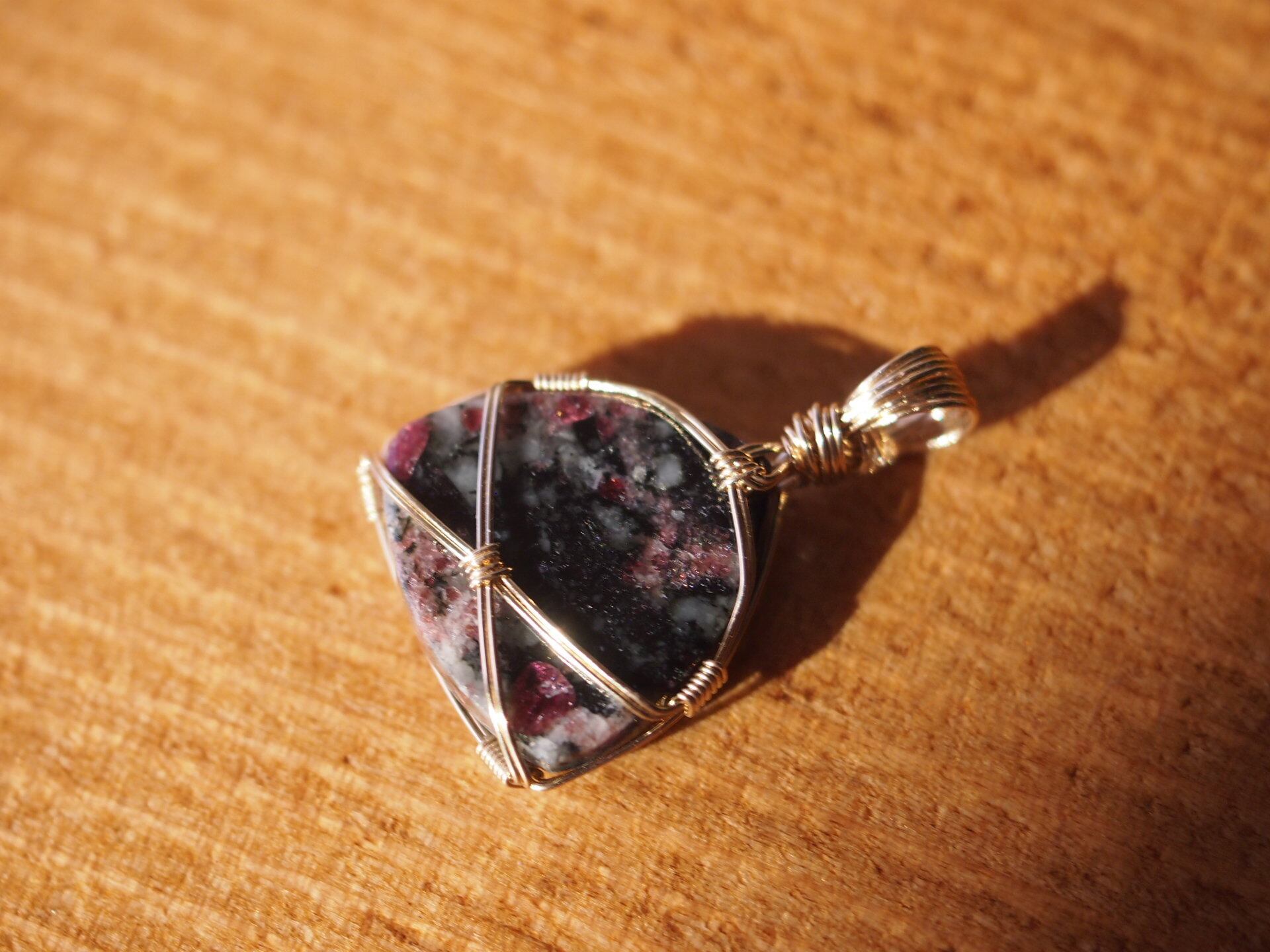 赤みの強いピンクの部分は、美しい透明感があり、この石が最初に発見されたグリーンランドでは、当初ガーネットだと考えられていたという逸話がしっくりくる、魅力的な石です。