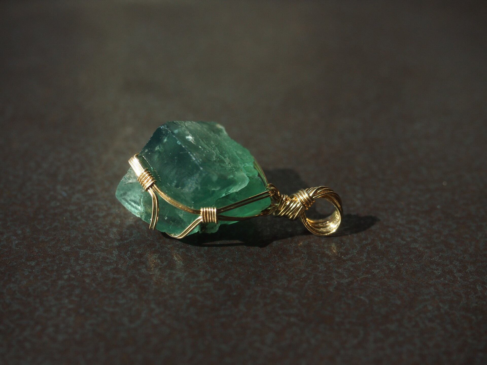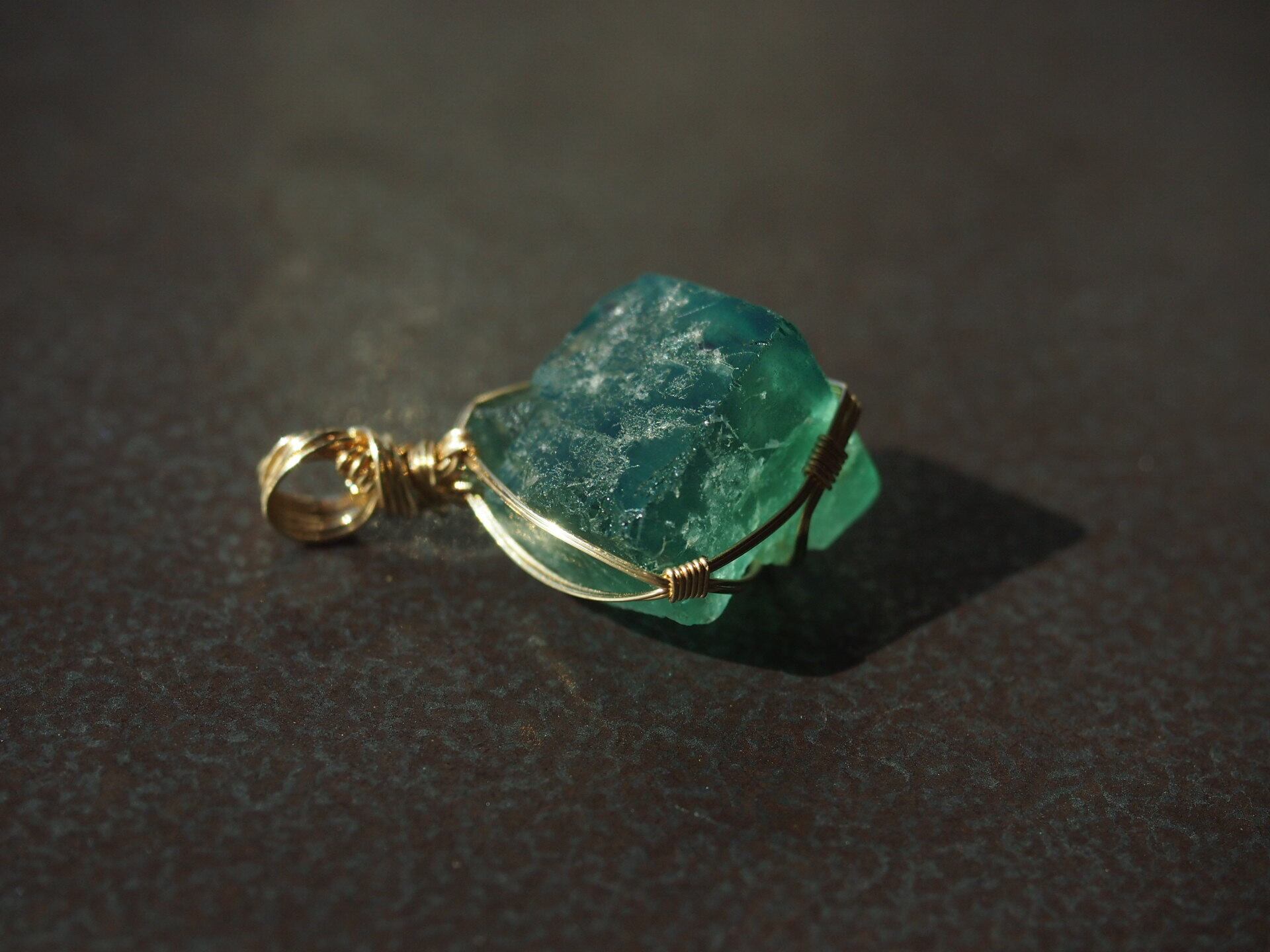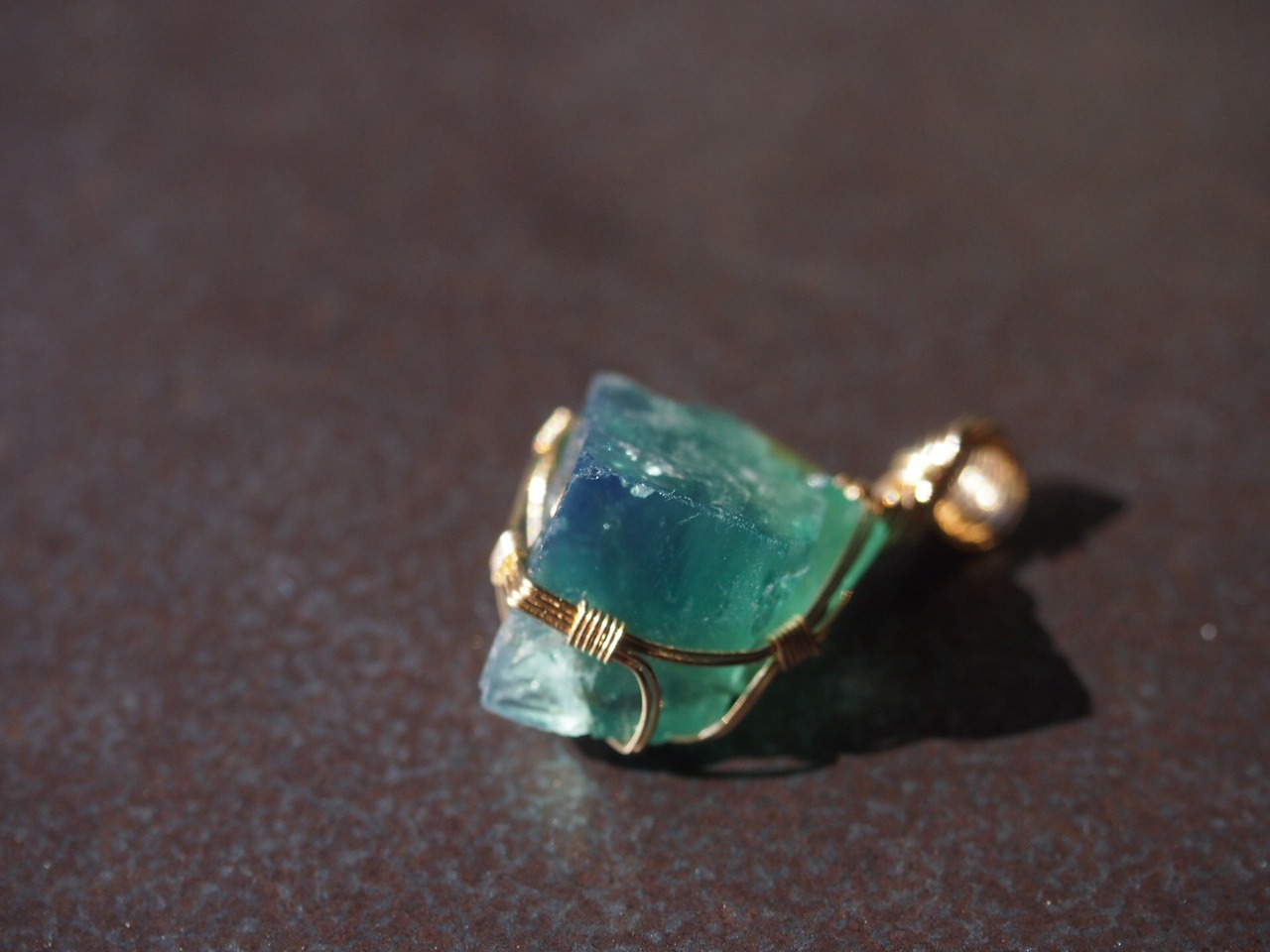 イギリスロジャリー産フローライト原石を14kgfワイヤーで繊細に女神巻き®ペンダントトップに仕上げました♡