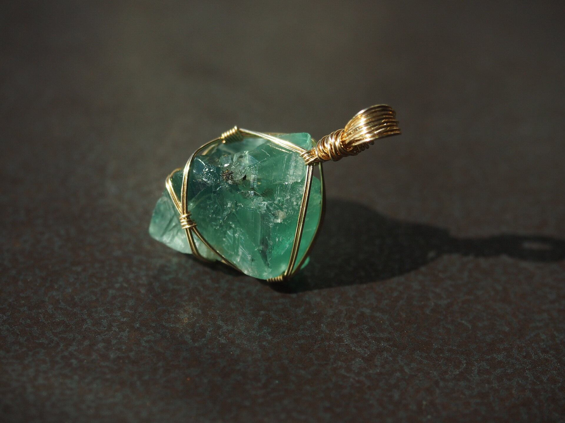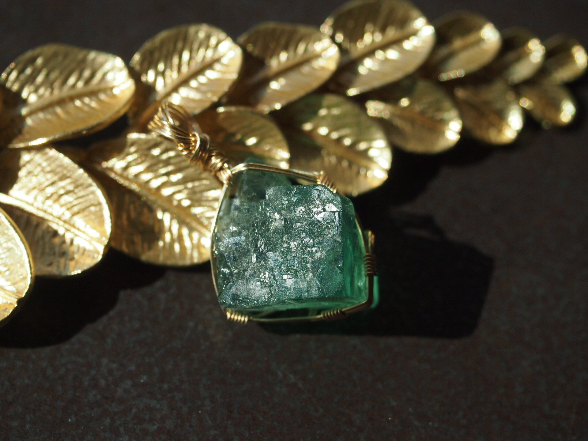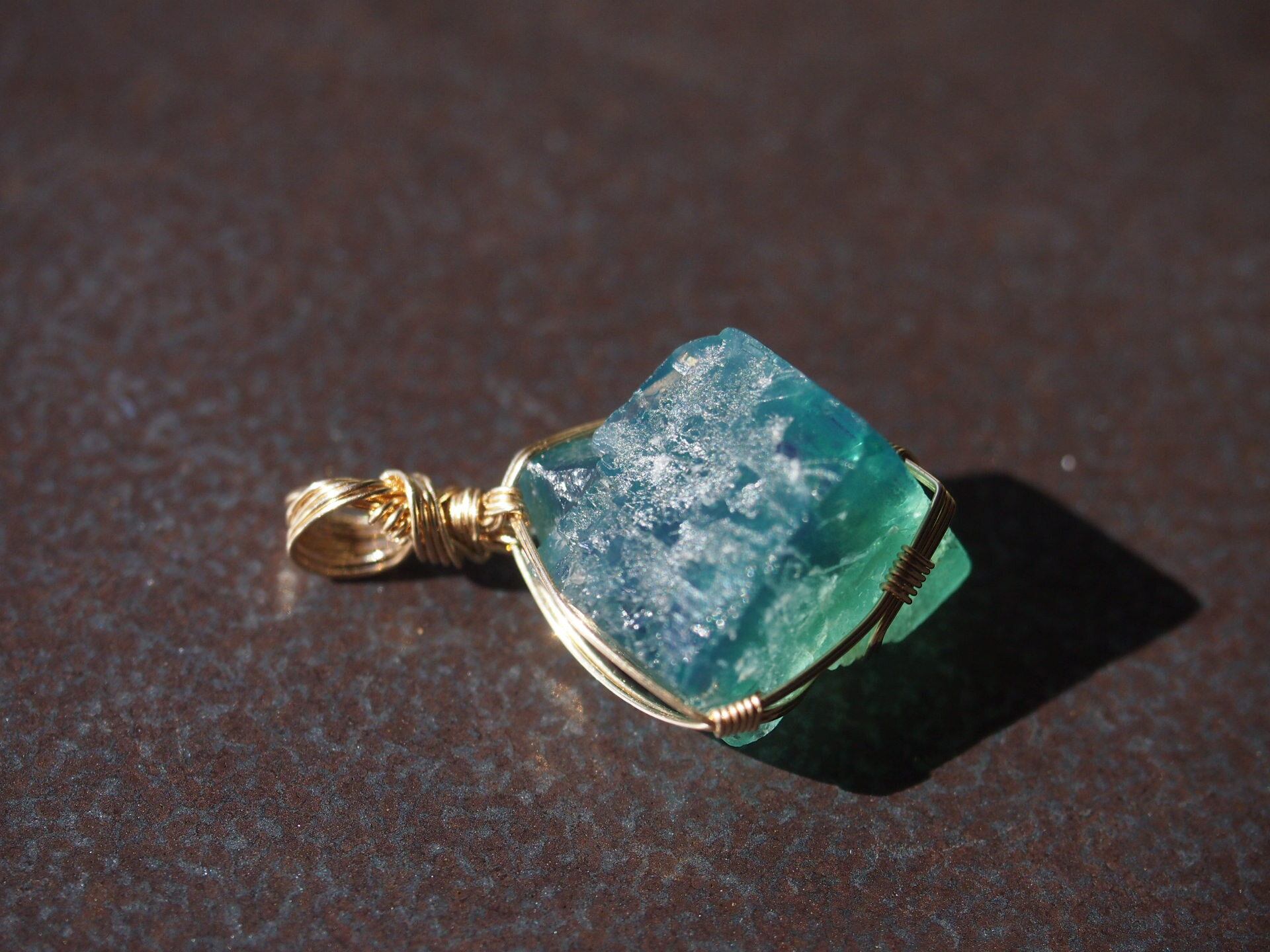 イギリスロジャリー産フローライト原石を14kgfワイヤーで繊細に女神巻き®ペンダントトップに仕上げました♡