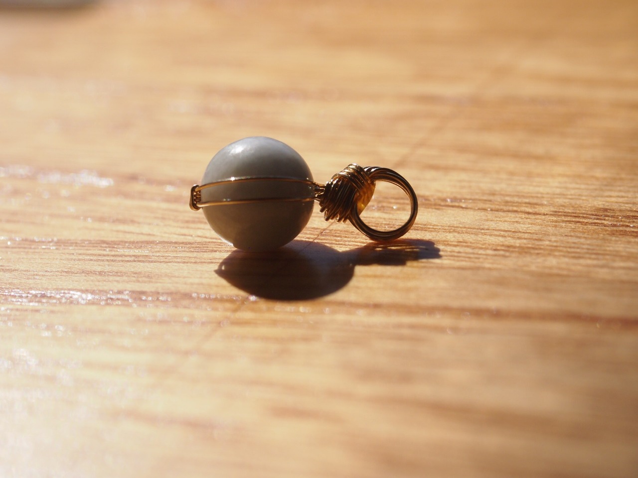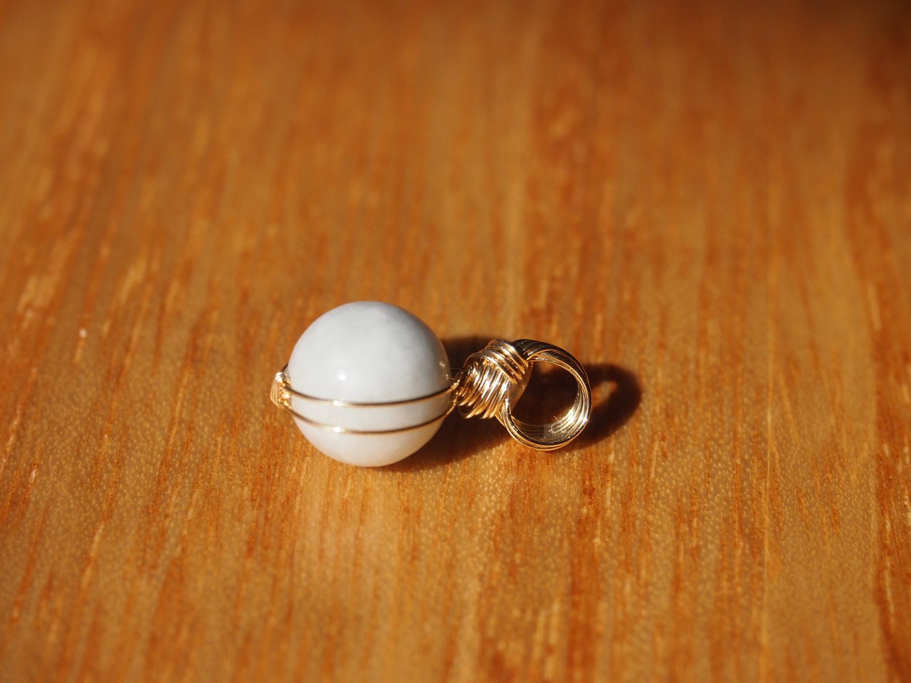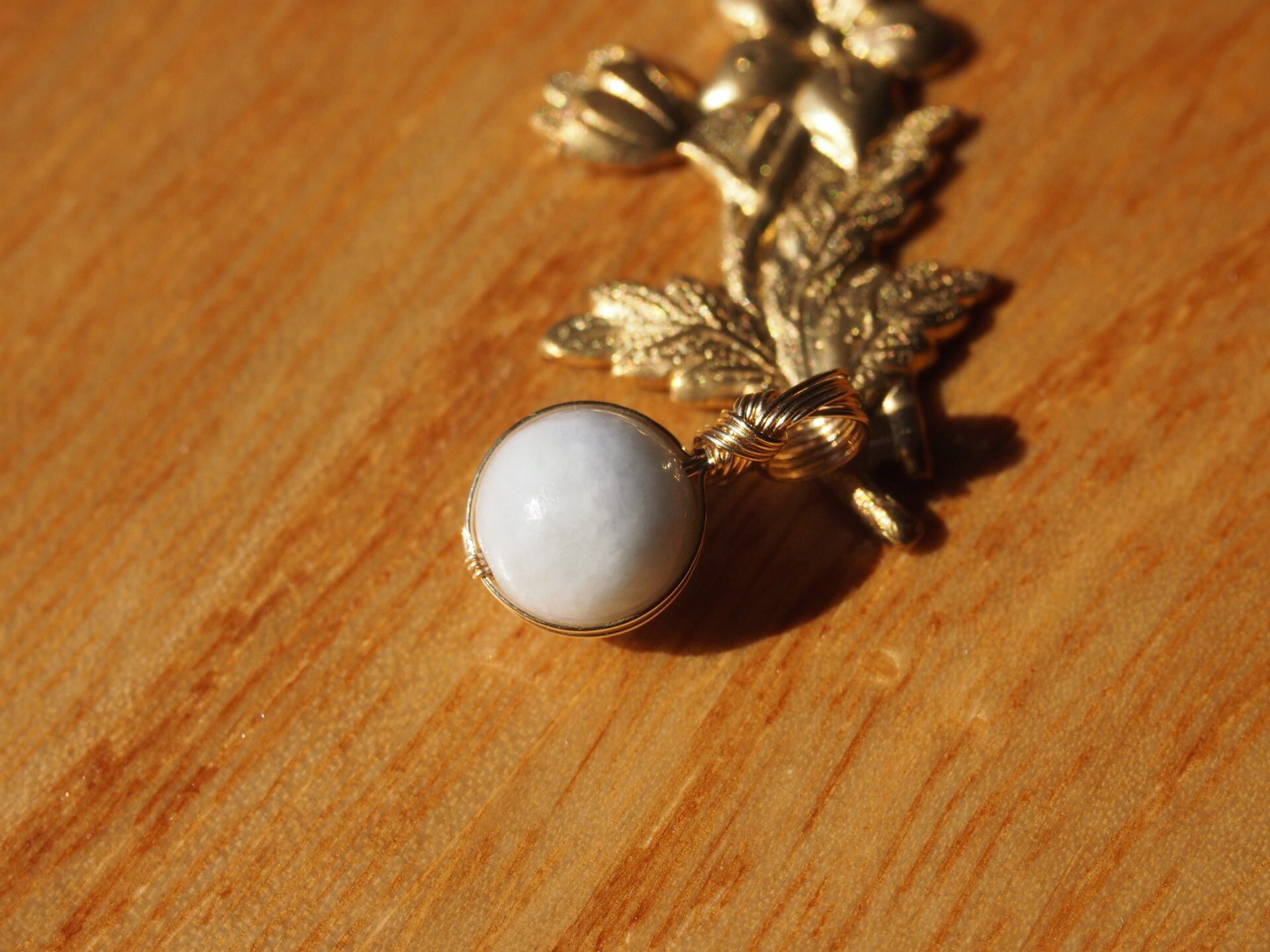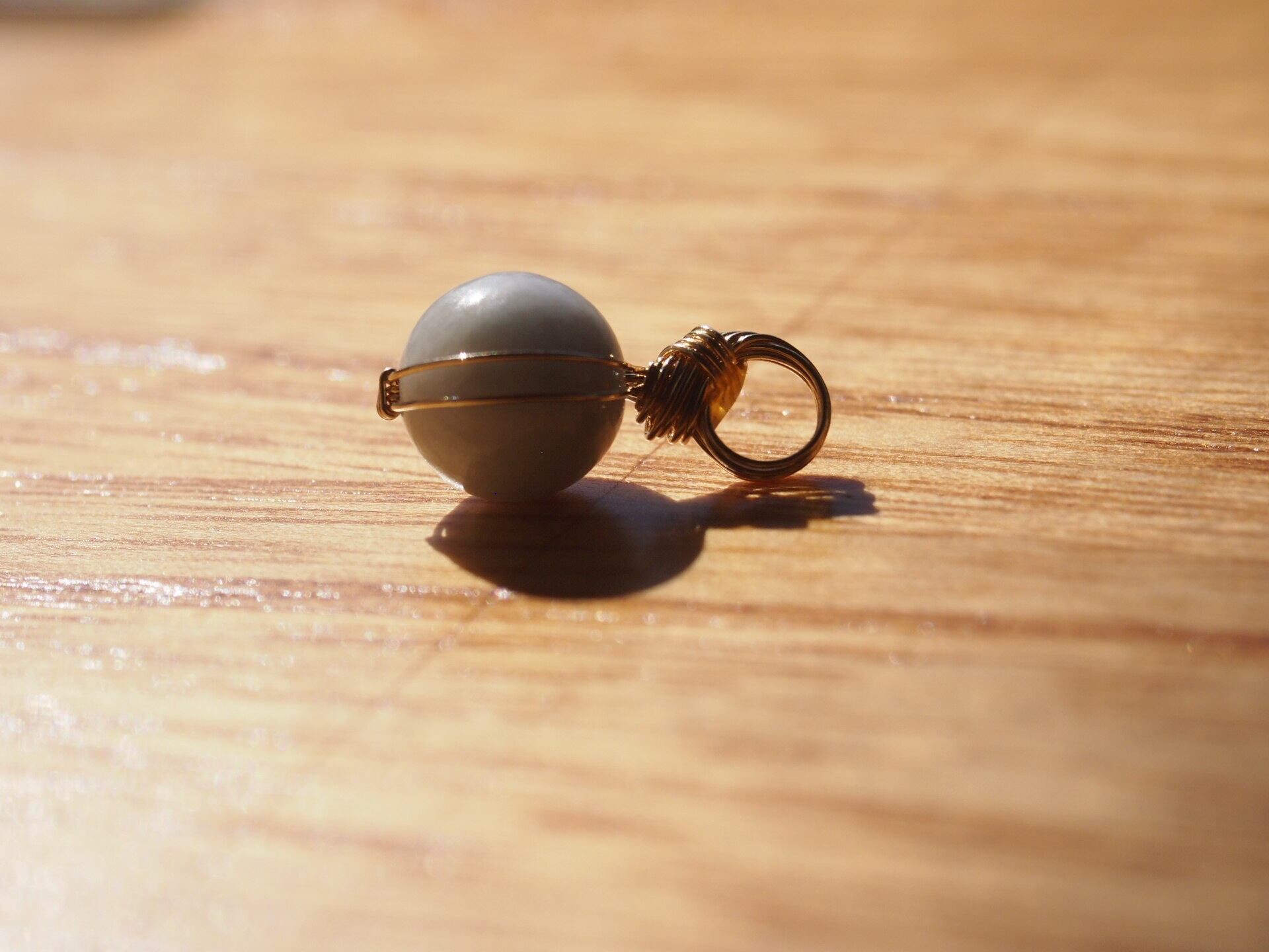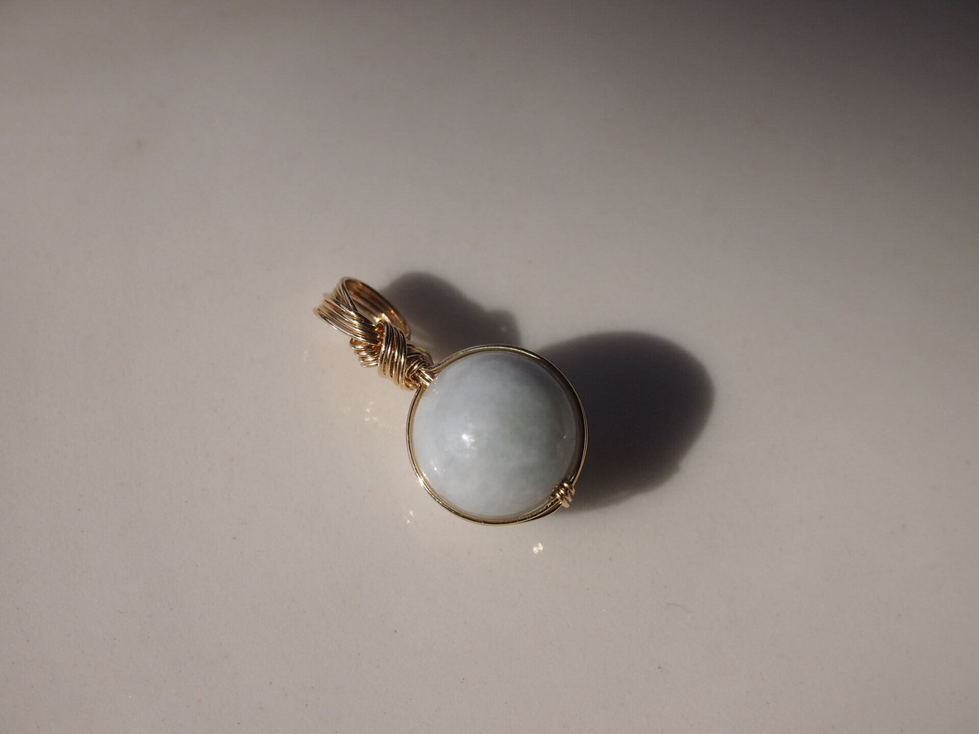 小さな糸魚川翡翠の8mmの丸玉を14kgfワイヤーで繊細に女神巻き®ペンダントトップに仕上げました♡
