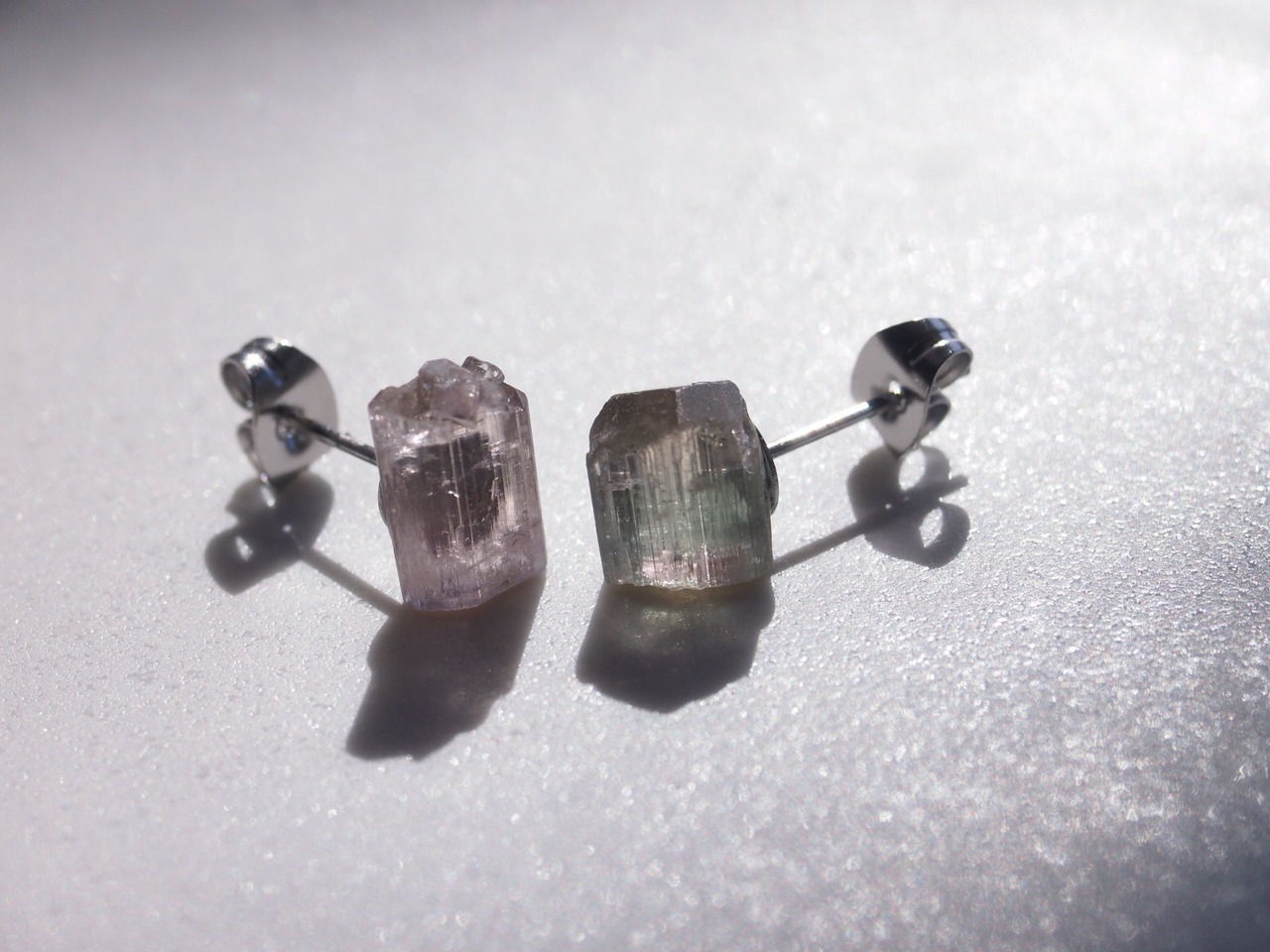 淡い色味が美しいリチア電気石の原石で、ピアスを制作しました✧