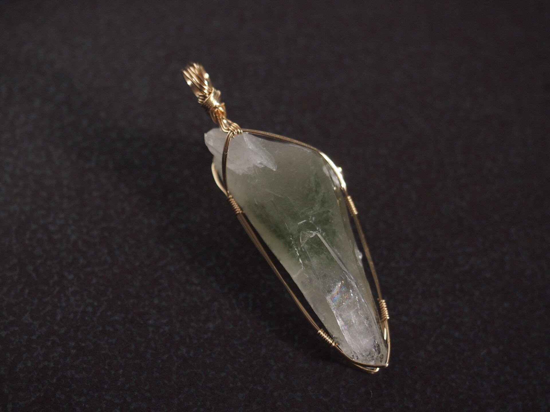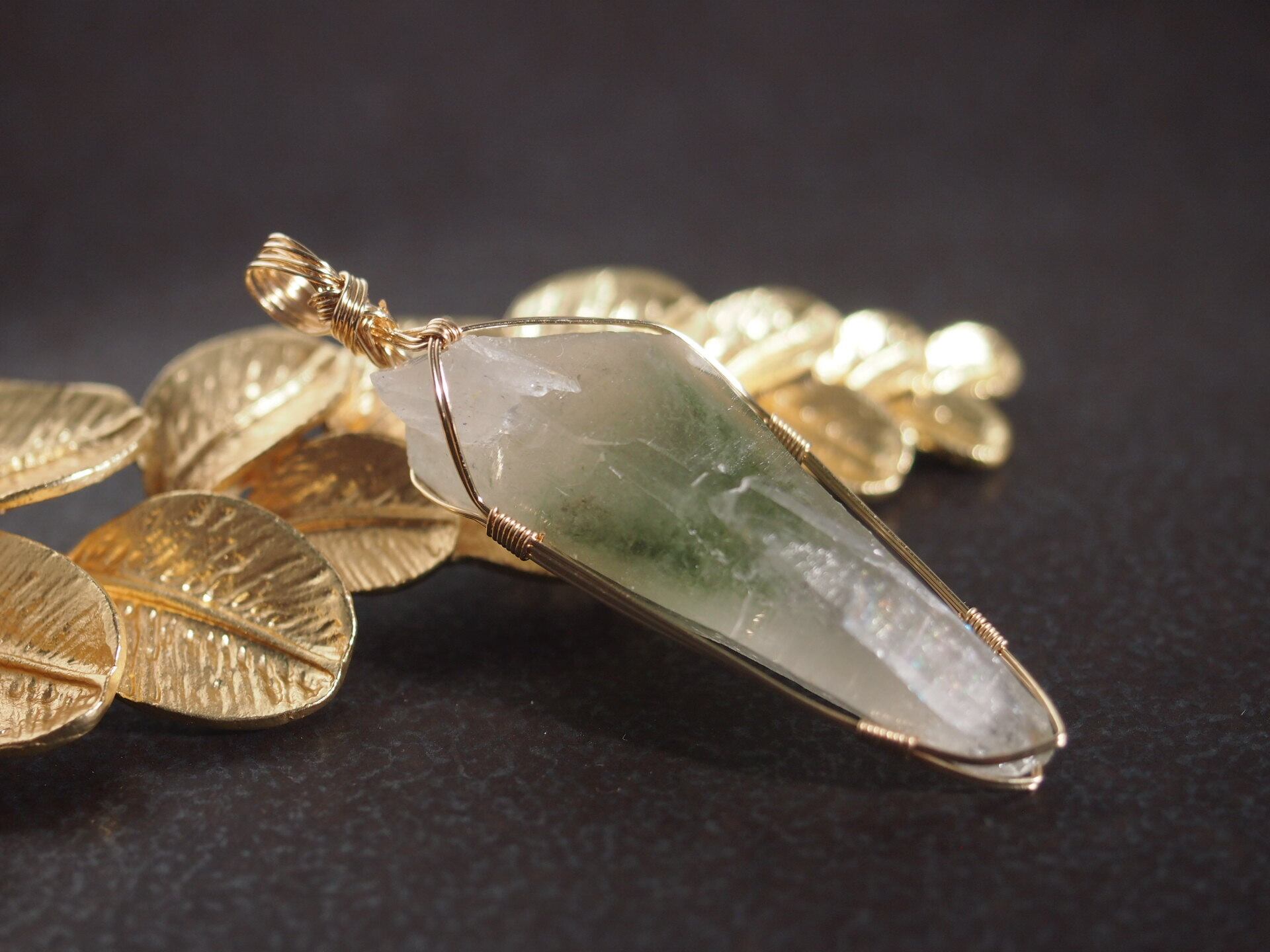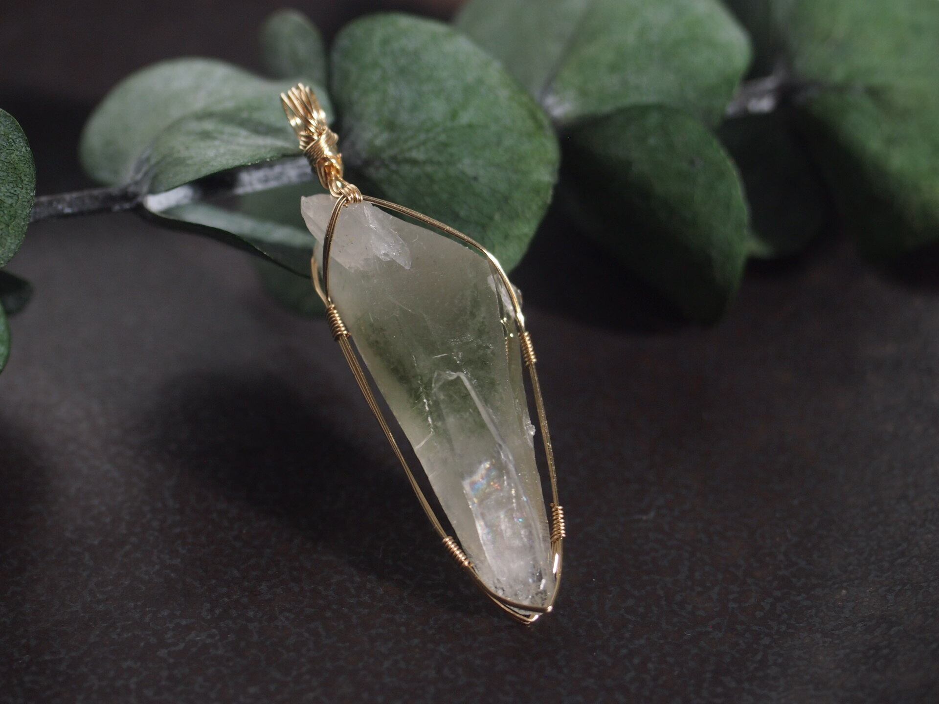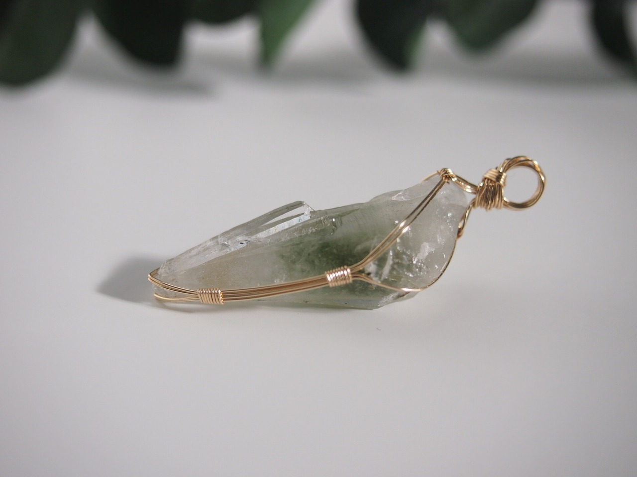 貴重な国産の草入り水晶を14kgfワイヤーで繊細にペンダントトップに仕上げました♡