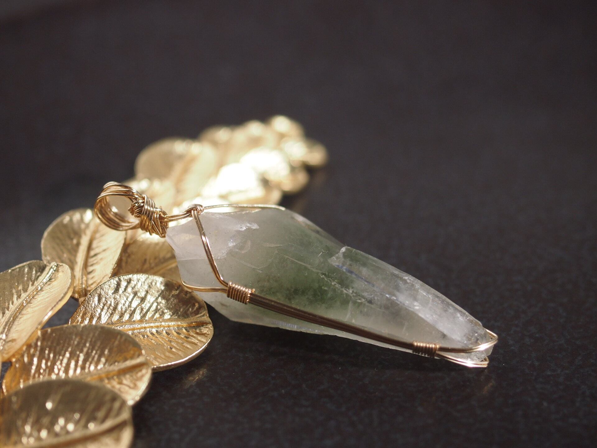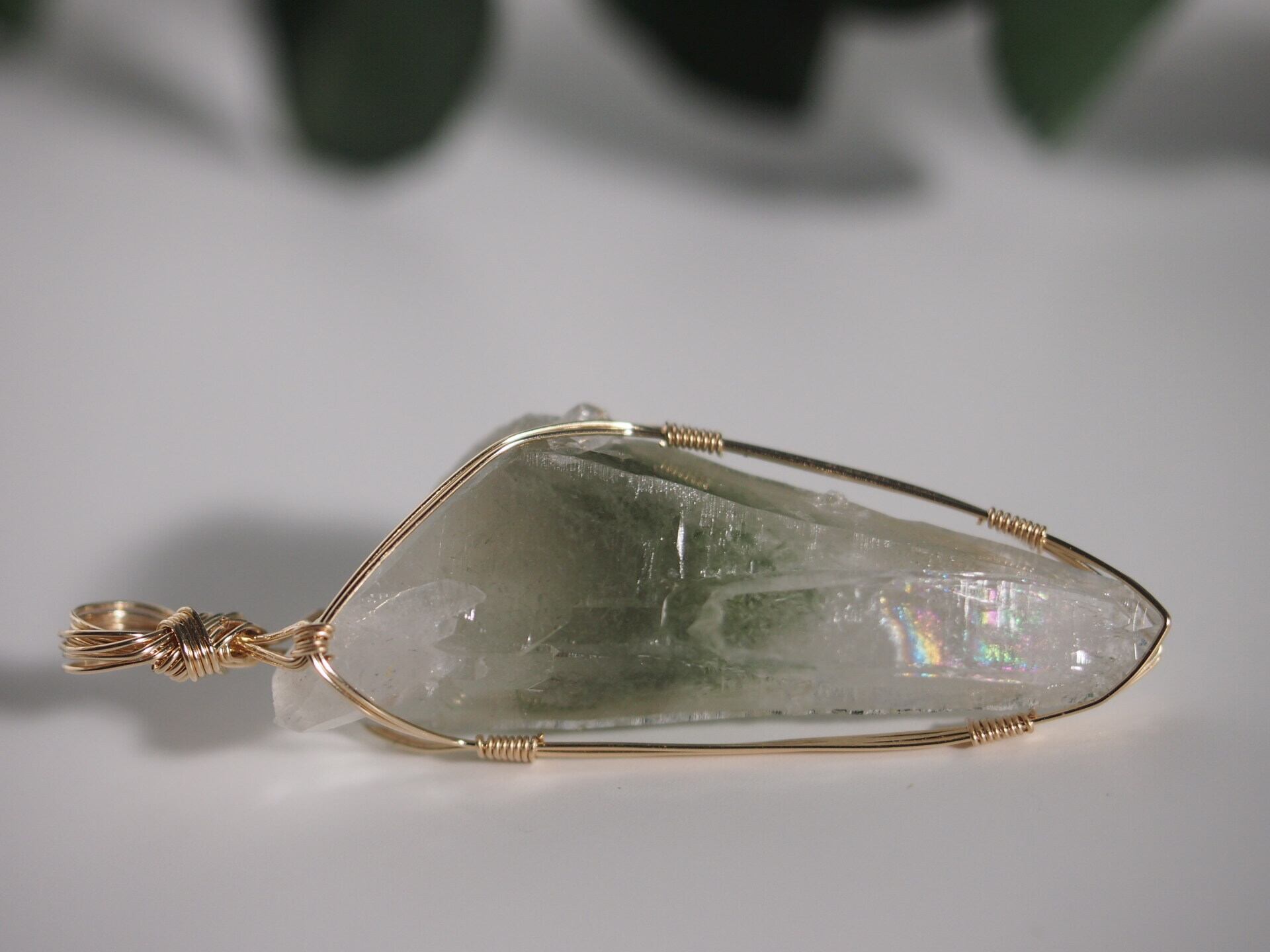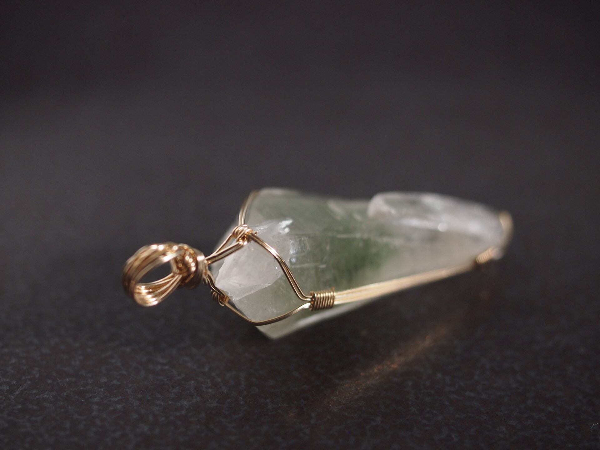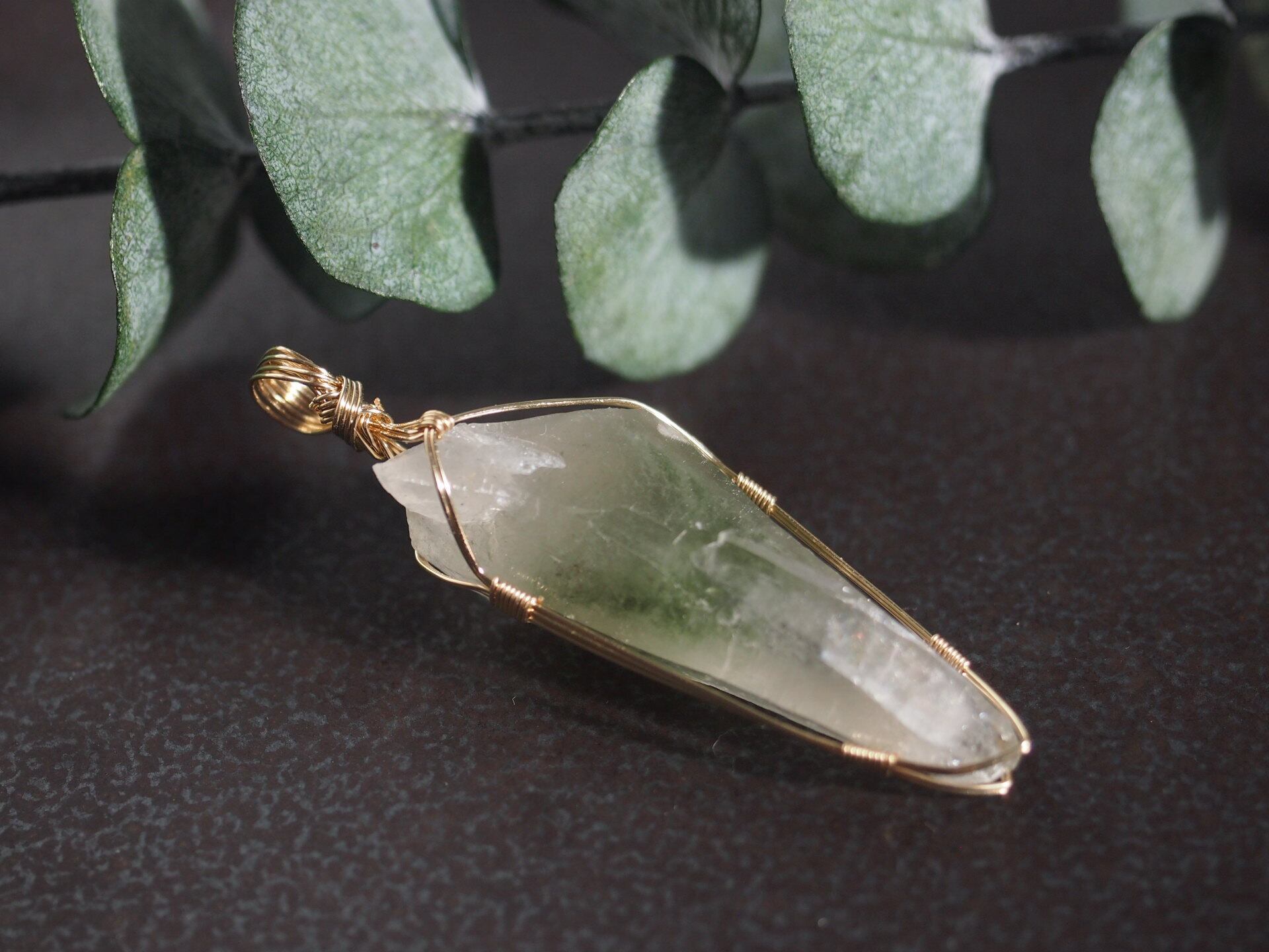 貴重な国産の草入り水晶を14kgfワイヤーで繊細にペンダントトップに仕上げました♡