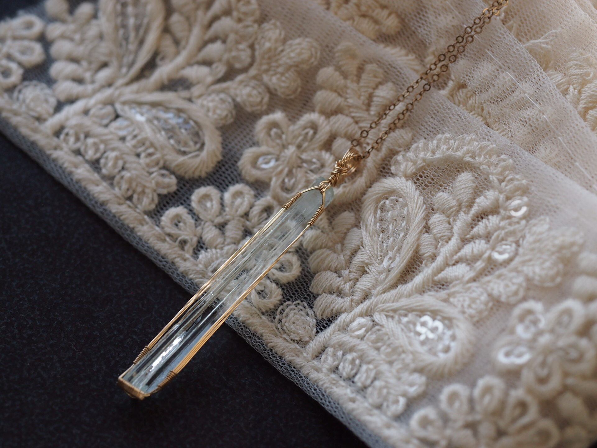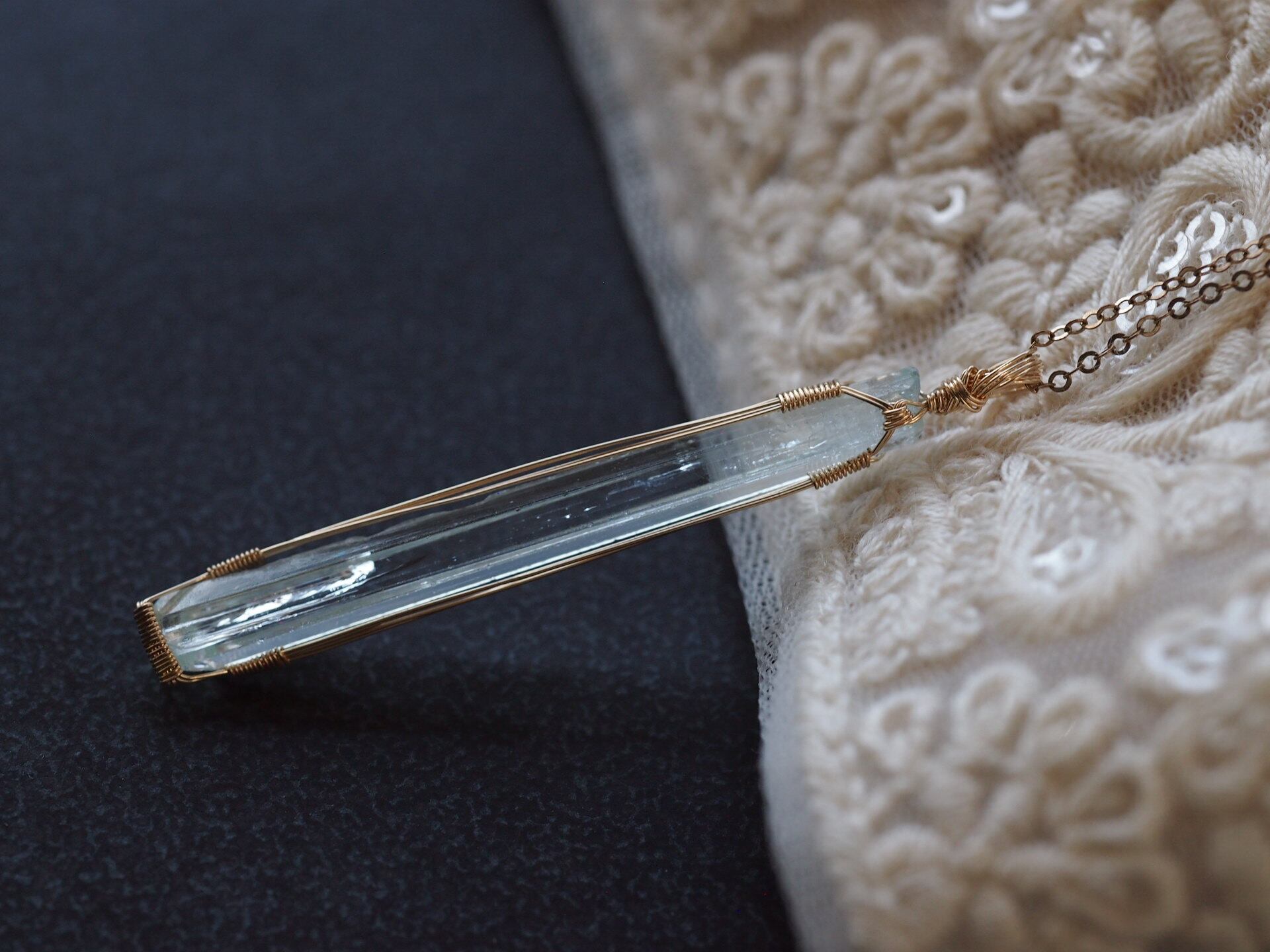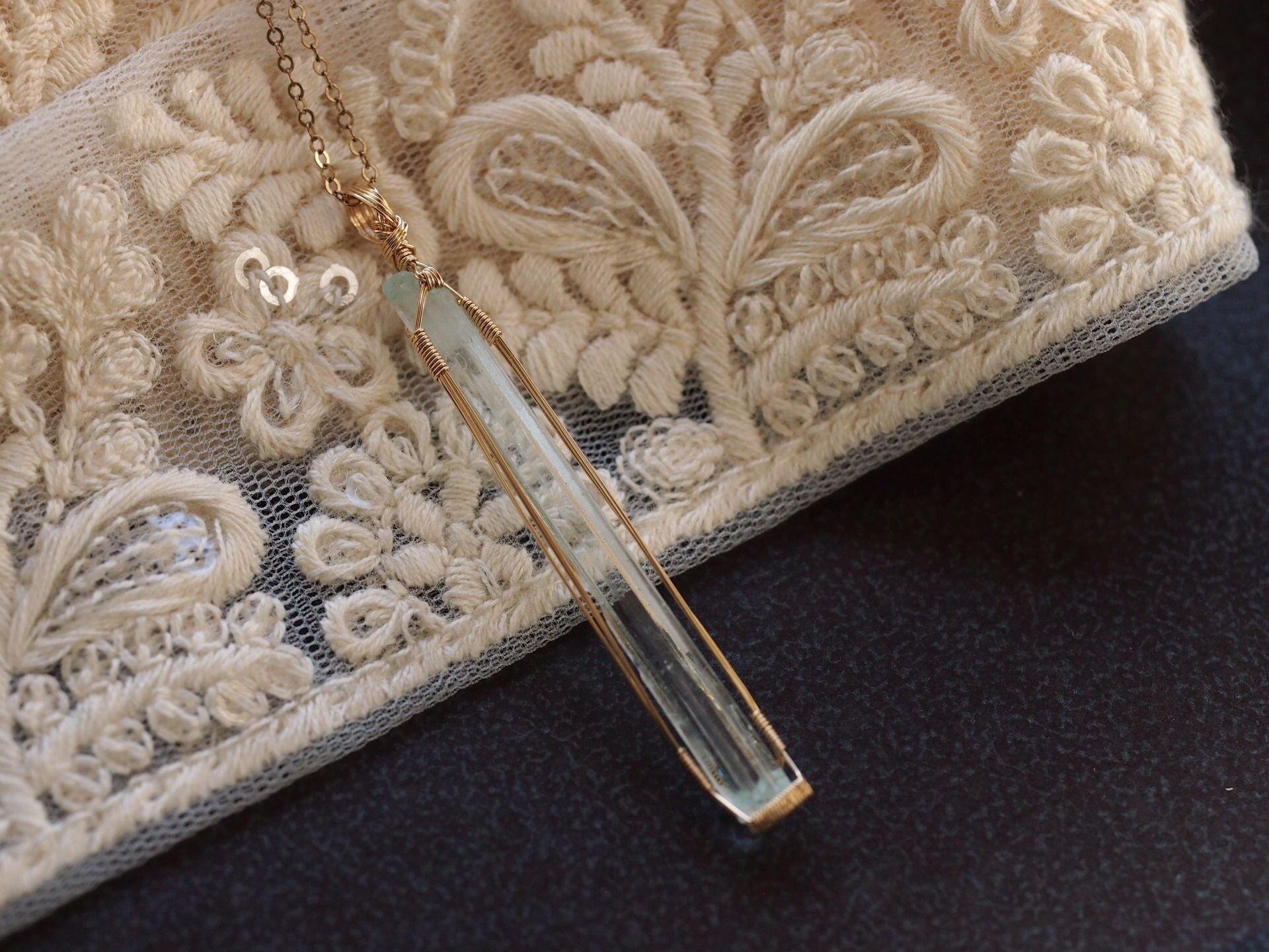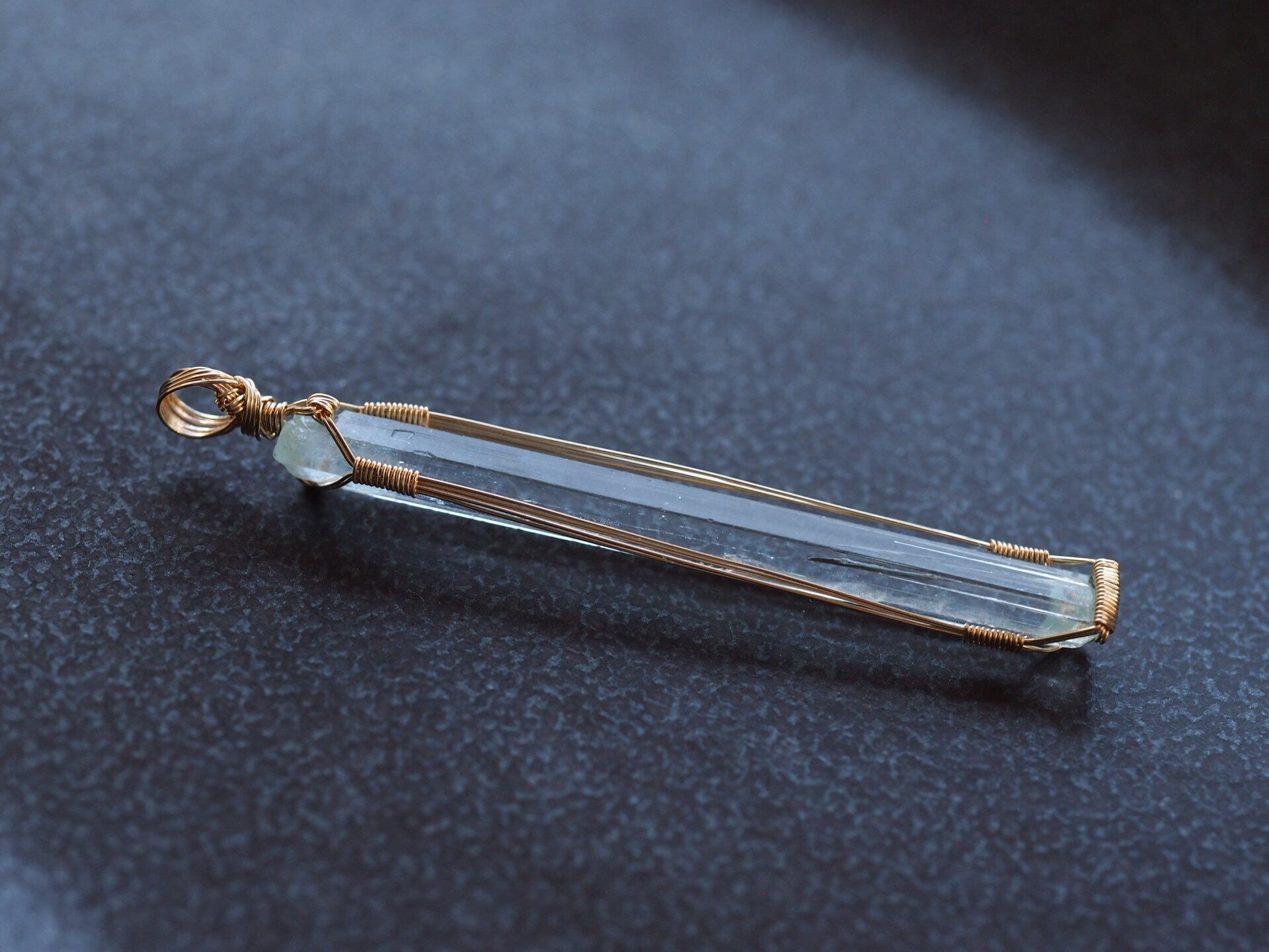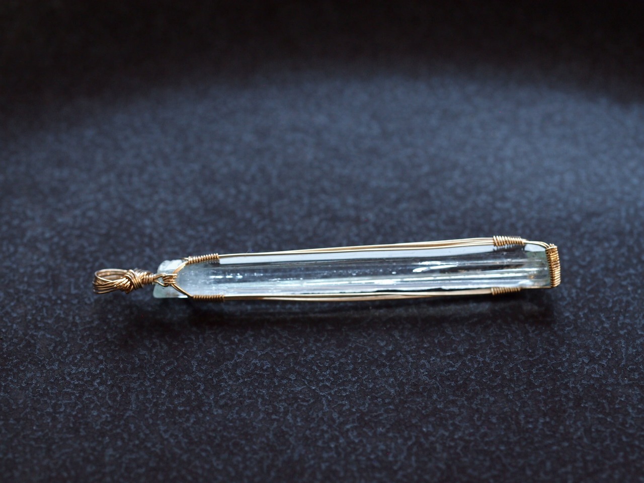 繊細な柱状結晶が美しいアクアマリンを14kgfワイヤーで繊細にペンダントトップに仕上げました♡