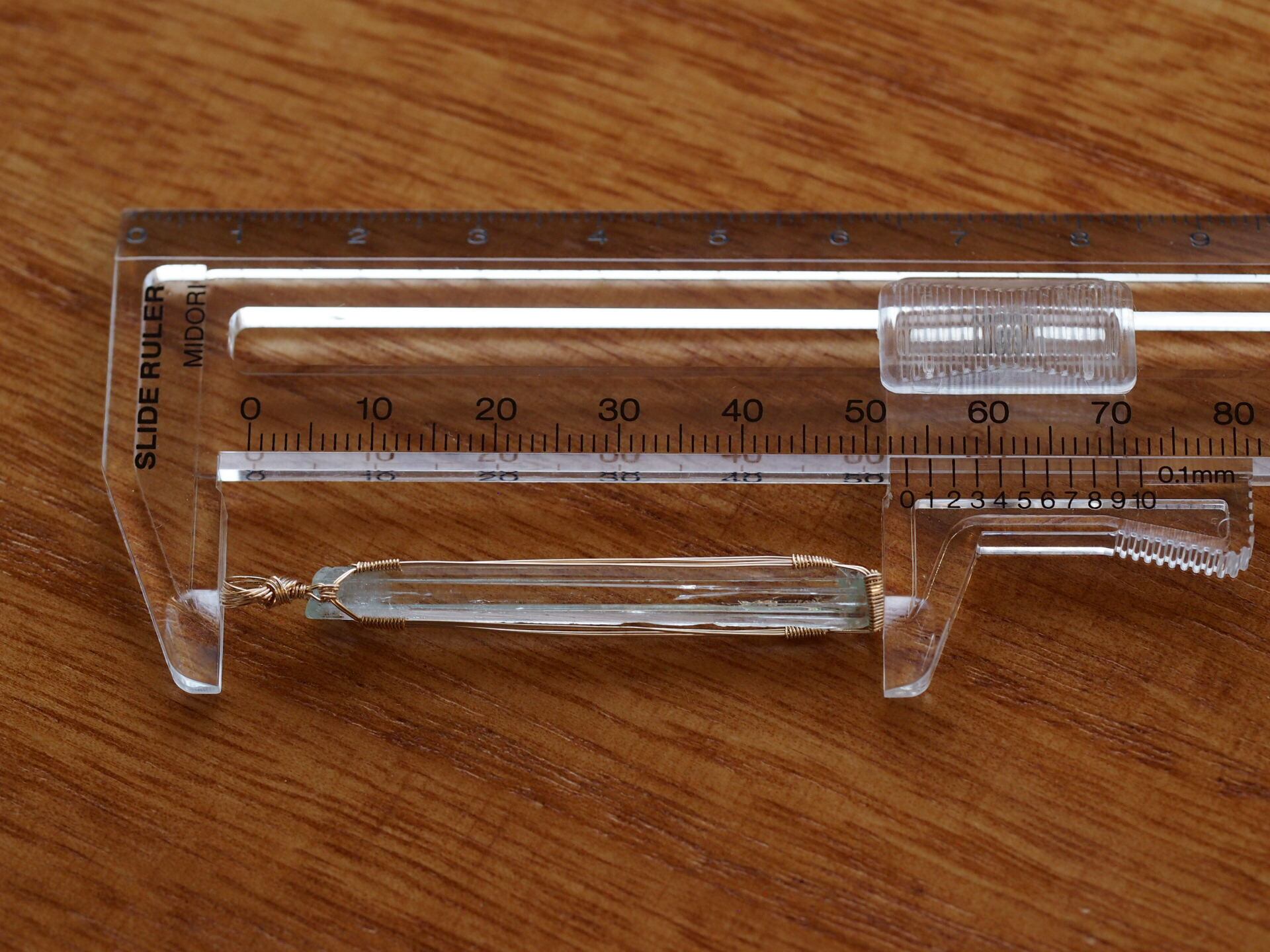 原石の長さは46mmあります。優美で美しい六角柱の形状そのままをナチュラルなペンダントトップに仕上げました。